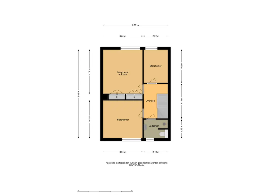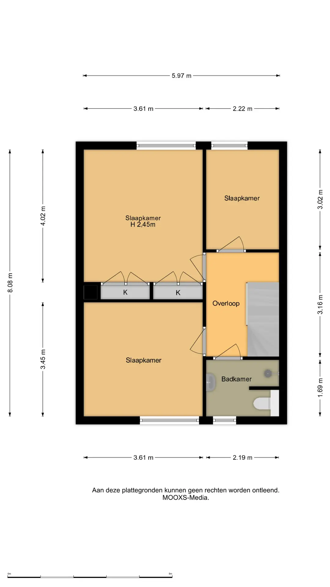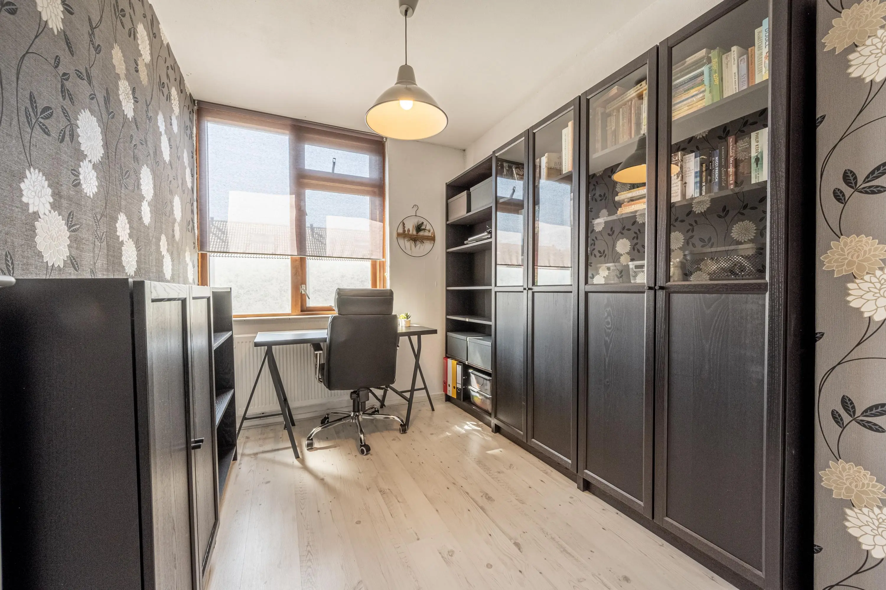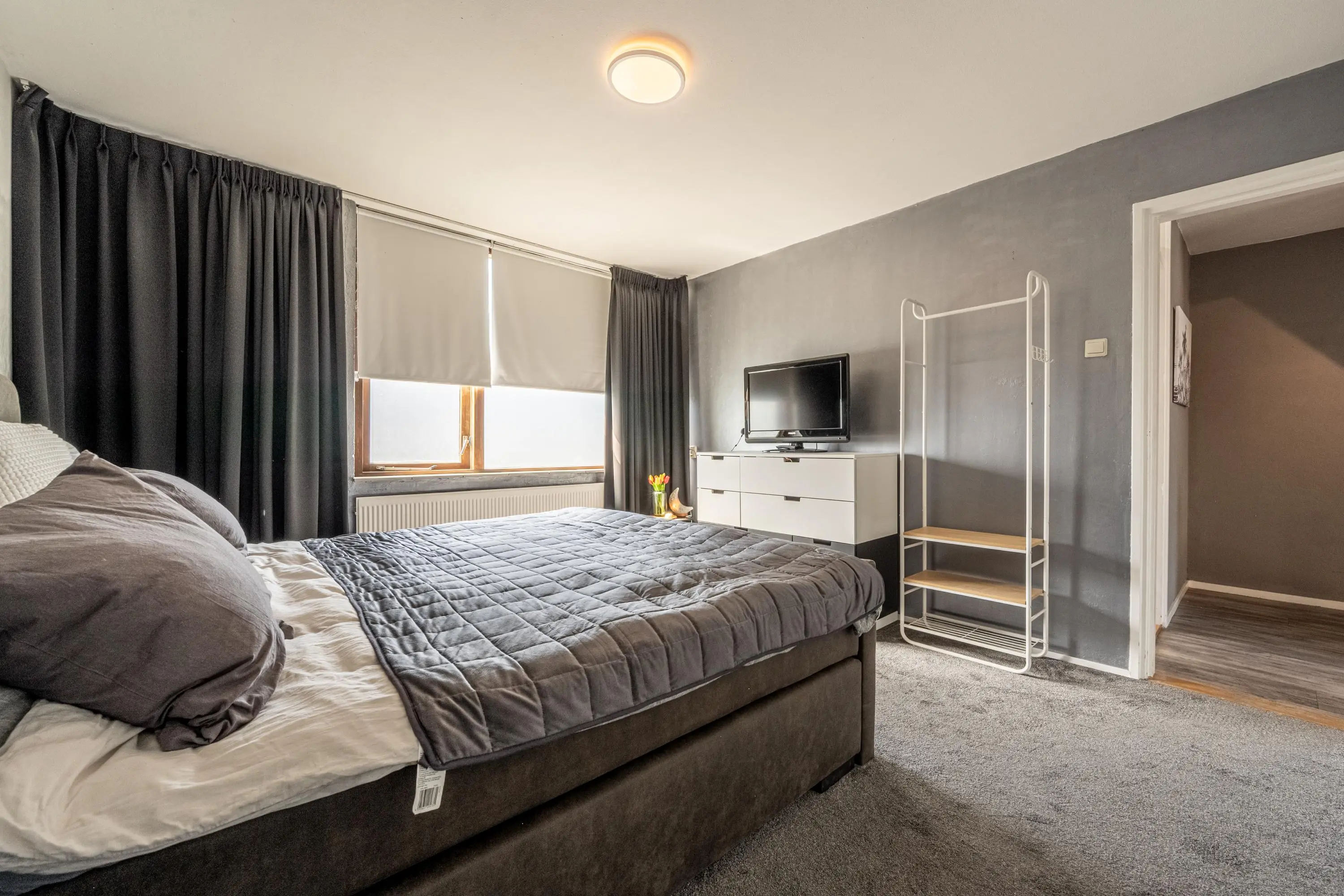 De overloop geeft toegang tot drie slaapkamers en de badkamer. De grootste slaapkamer is voorzien van handige inbouwkasten met volop bergruimte.
