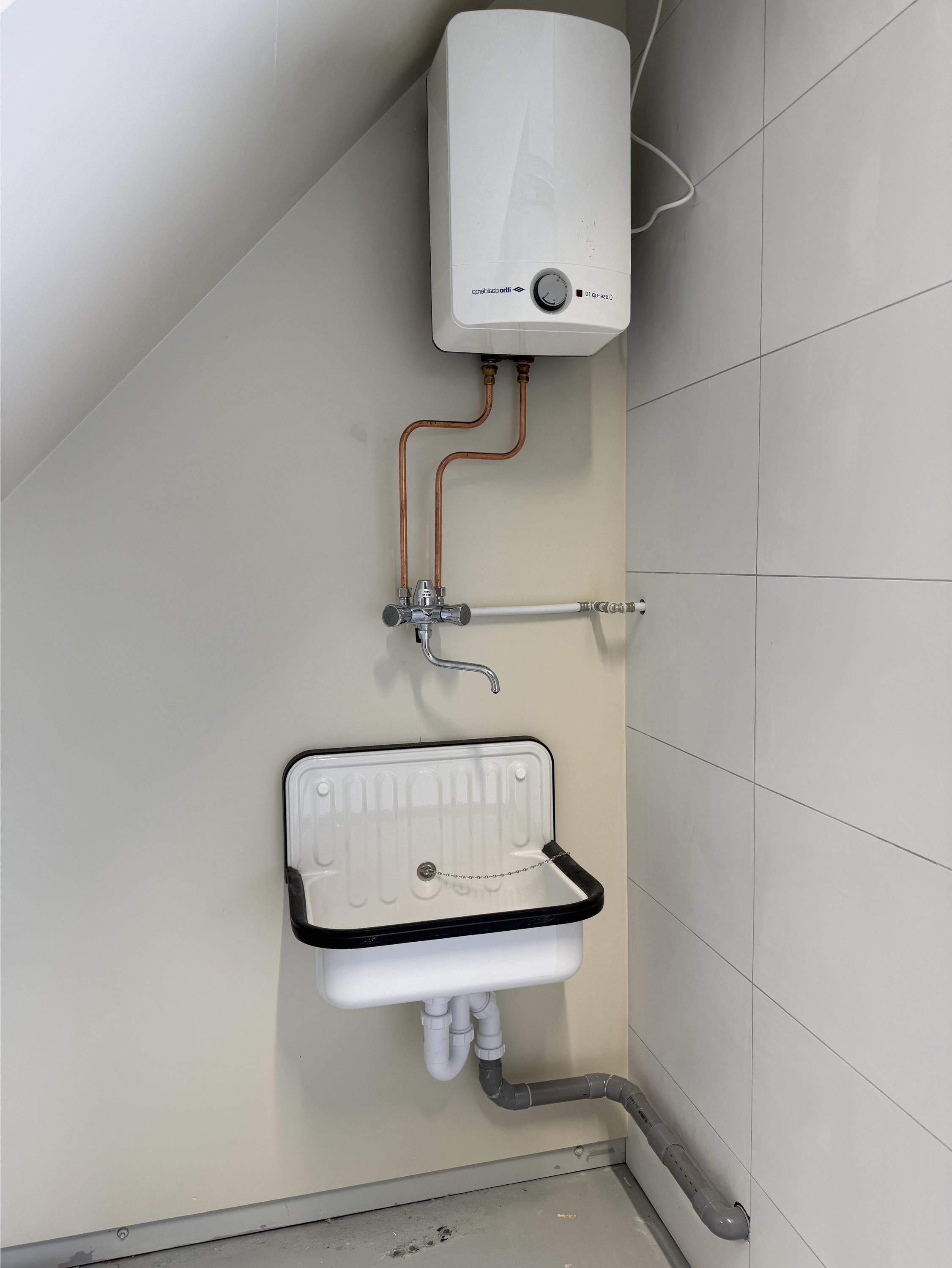 • meterkast met aansluitingen voor elektra, water en internet; brandblusmiddelen