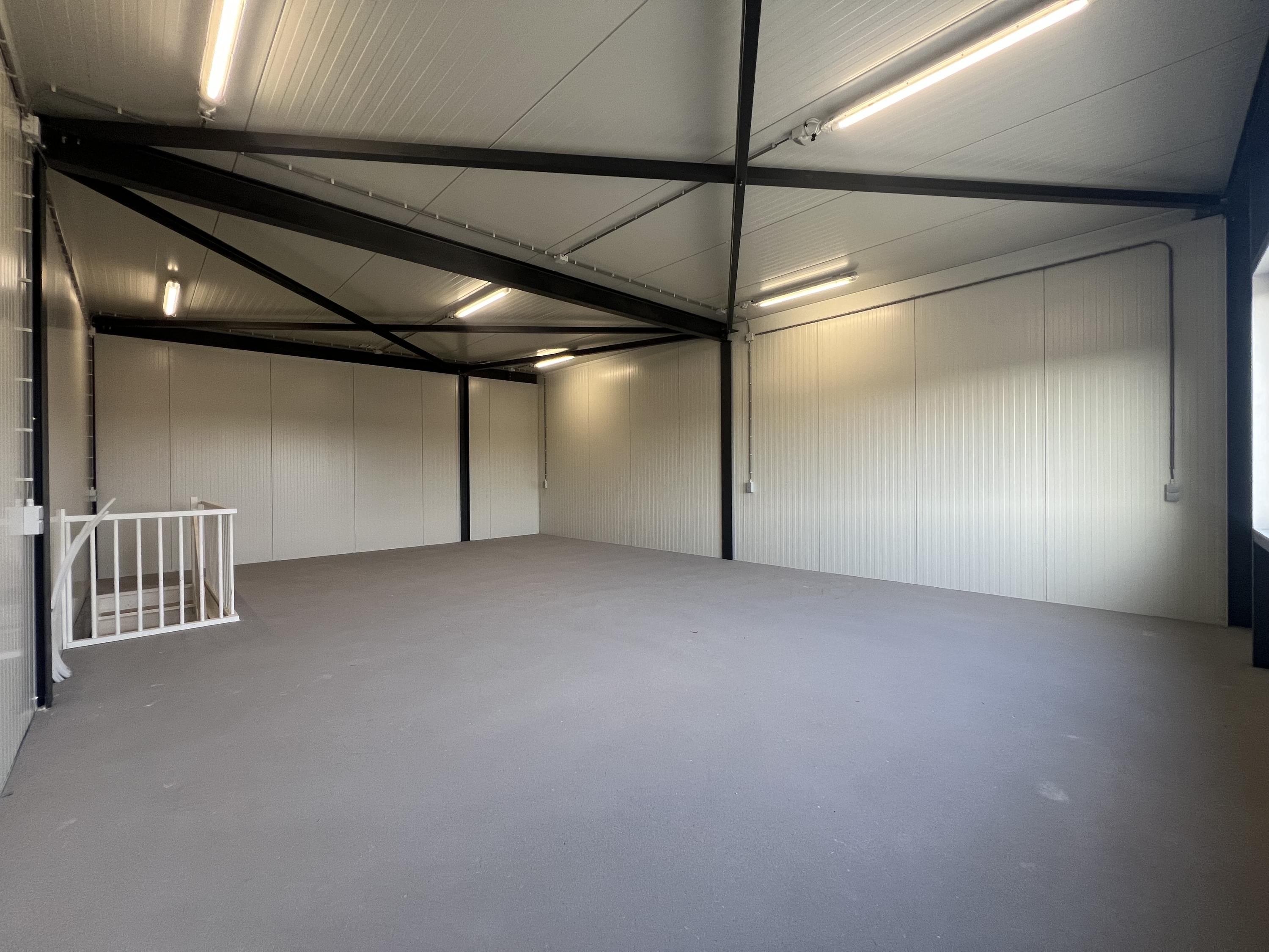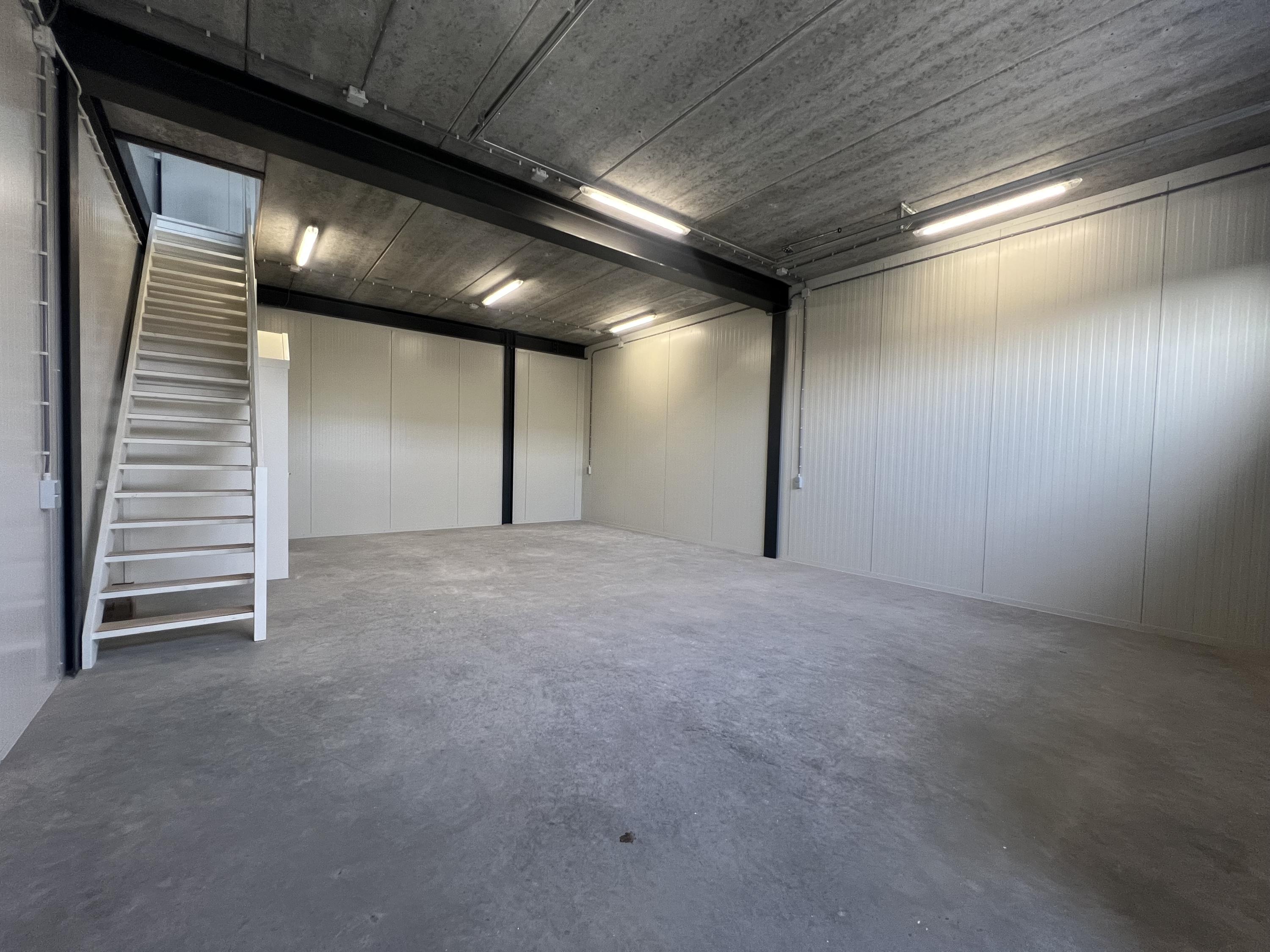 De bedrijfsruimte op de begane grond is o.a. voorzien van een monoliet afgewerkte betonvloer (maximale vloerbelasting 1.000 kg/m²), voorbereiding voor vloerverwarming, een elektrisch bedienbare overheaddeur, separate entree/loopdeur, krachtstroomaansluiting, een vrije hoogte van ca. 3,40 meter, pantry en toiletruimte en is uitermate geschikt voor gebruik als bedrijfs-/opslagruimte. De verdieping is bereikbaar via de houten trapopgang en beschikt over o.a. een volledige betonnen vloer (maximale vloerbelasting 350 kg/m²), welke is afgewerkt met een zandcement deklaag, voorbereiding voor vloerverwarming, verlichting, wandcontactdozen en (te openen) raampartijen in de voorgevel en is derhalve indien gewenst (in overleg met eigenaar/verhuurder) geschikt (te maken) voor gebruik als showroom of kantoorruimte.