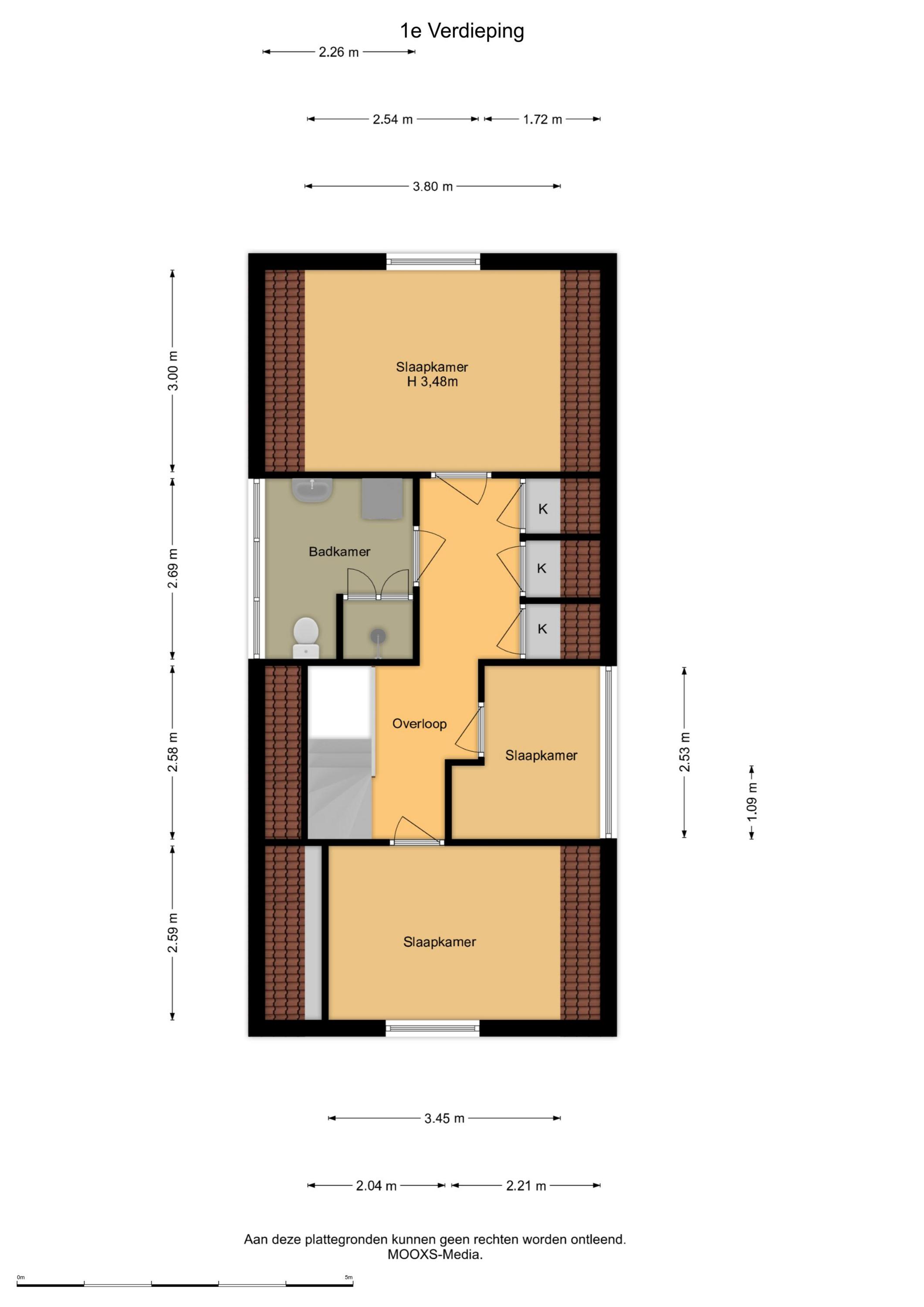 Middels de trapopgang komt men op de overloop met toegang tot 3 slaapkamers en de vernieuwde badkamer. Op de overloop zijn meerdere vaste kasten gesitueerd, waaronder een vaste kledingkast.