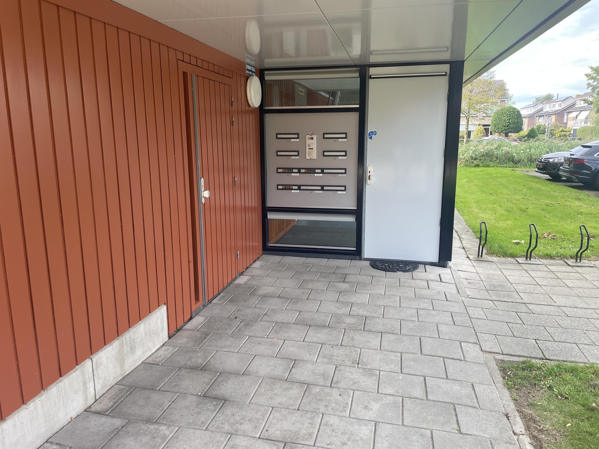 Afgesloten entree/hal met bellentableau, brievenbussen, lift en trappenhuis en net naast de voordeur (buiten) toegang tot de berging met elektra.