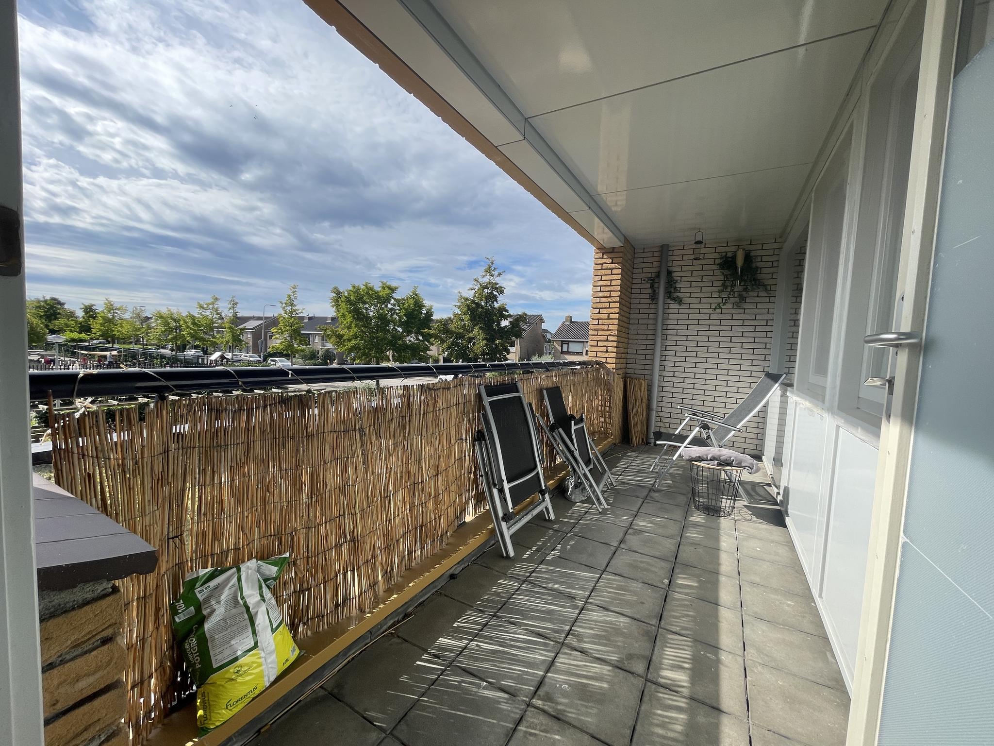 De woonkamer heeft veel lichtinval door de grote raampartijen en kijkt uit over de lagere school Sabina van Egmond en de Sportlaan. Het balkon is gelegen op het zonnige zuiden.