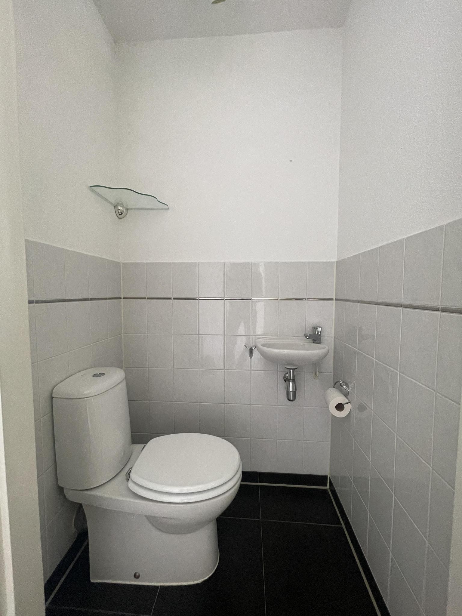 Entree/hal met toilet en toegang tot de woonkamer, keuken, wasruimte, twee slaapkamers en een badkamer.