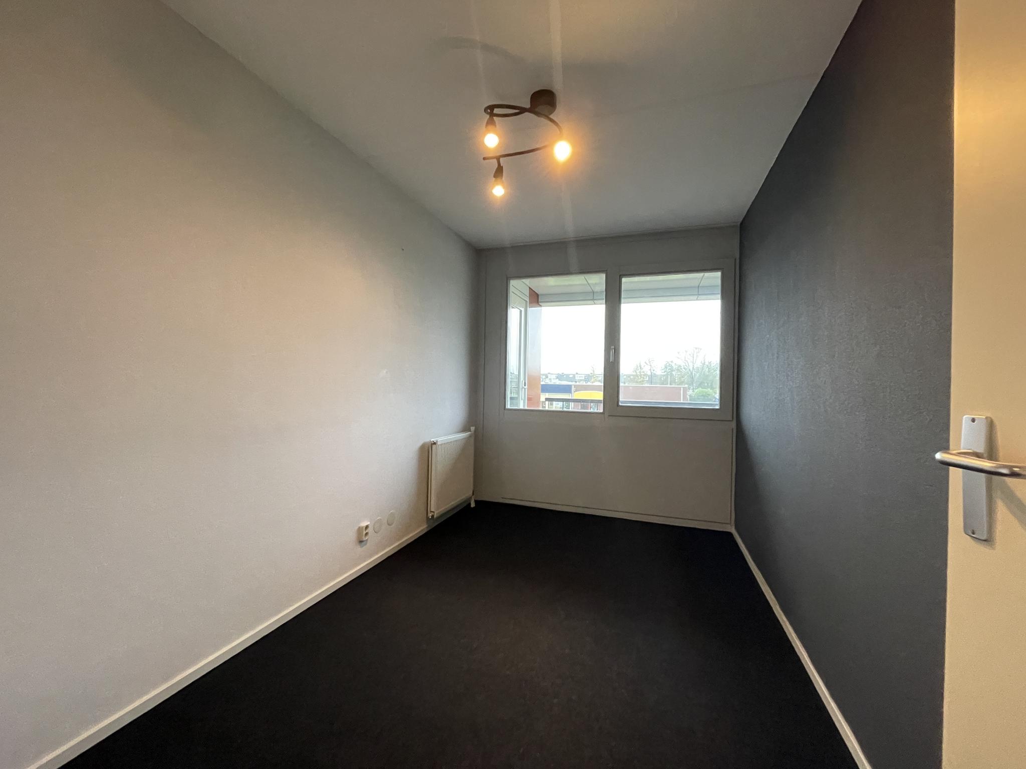 De twee slaapkamers zijn beide van goed formaat en kijken uit over het balkon, de Sportlaan en de lagere school.