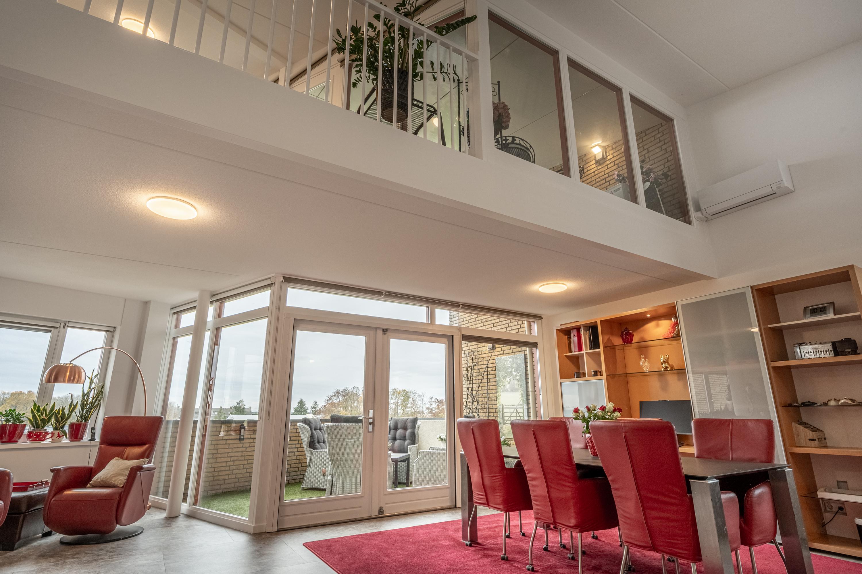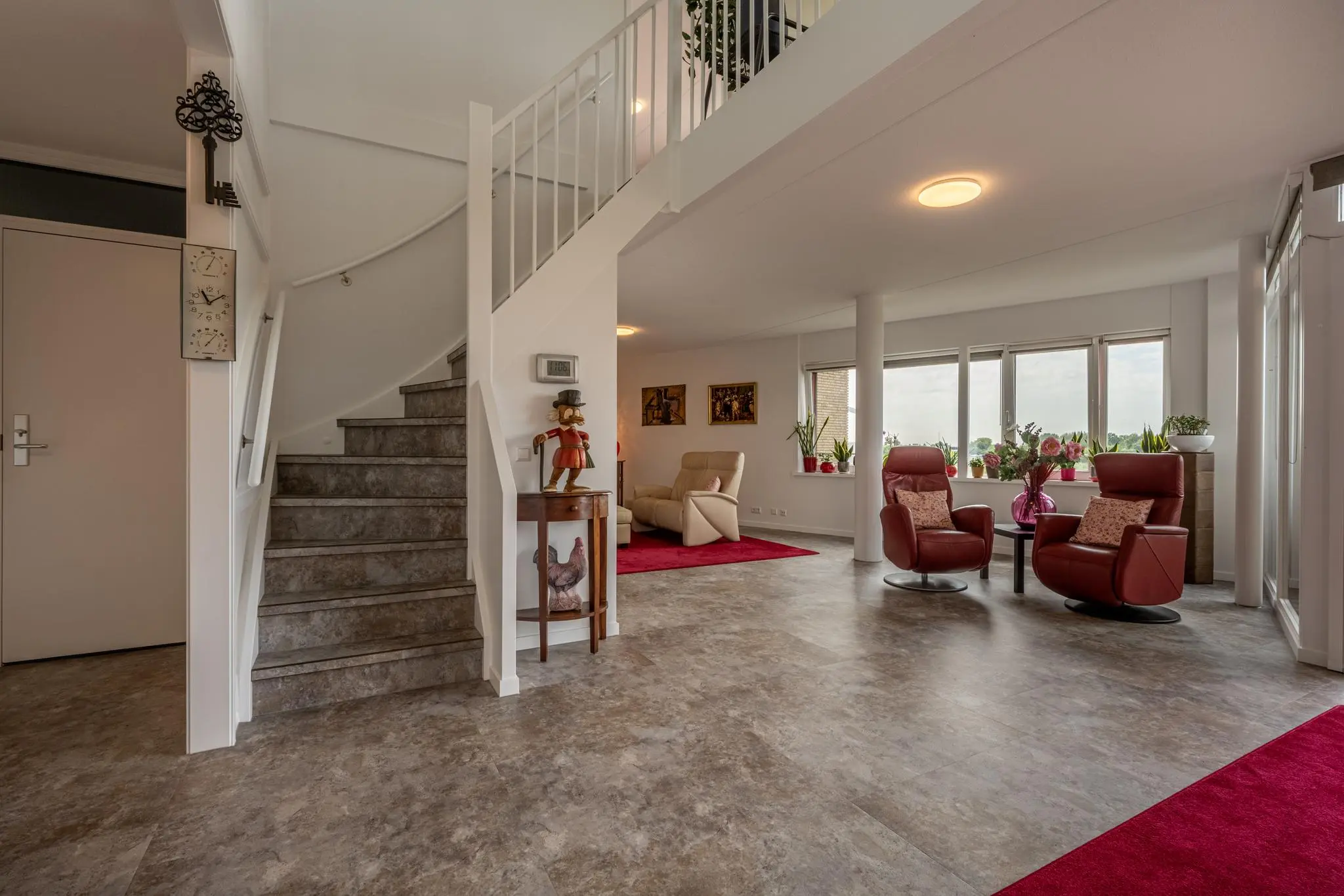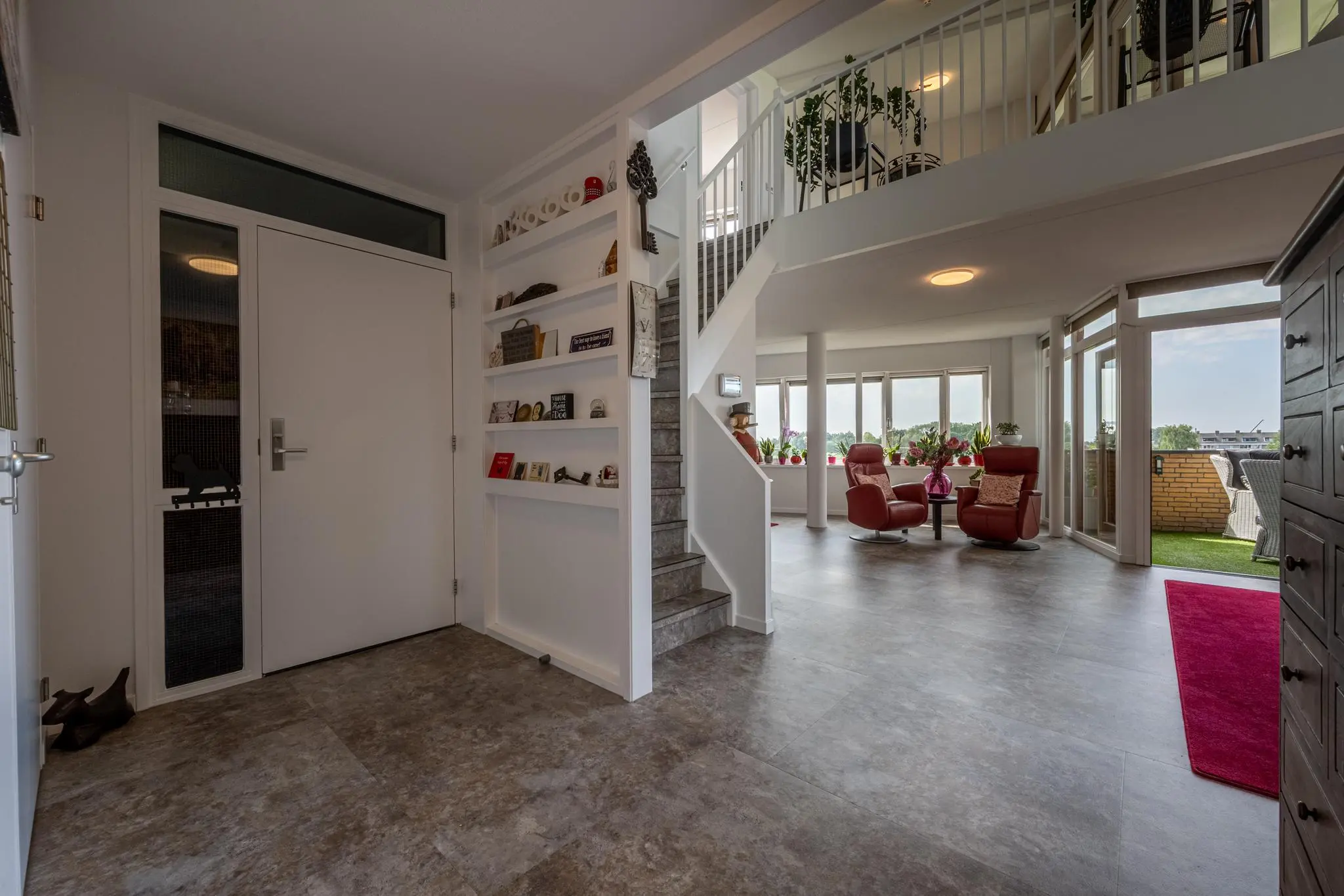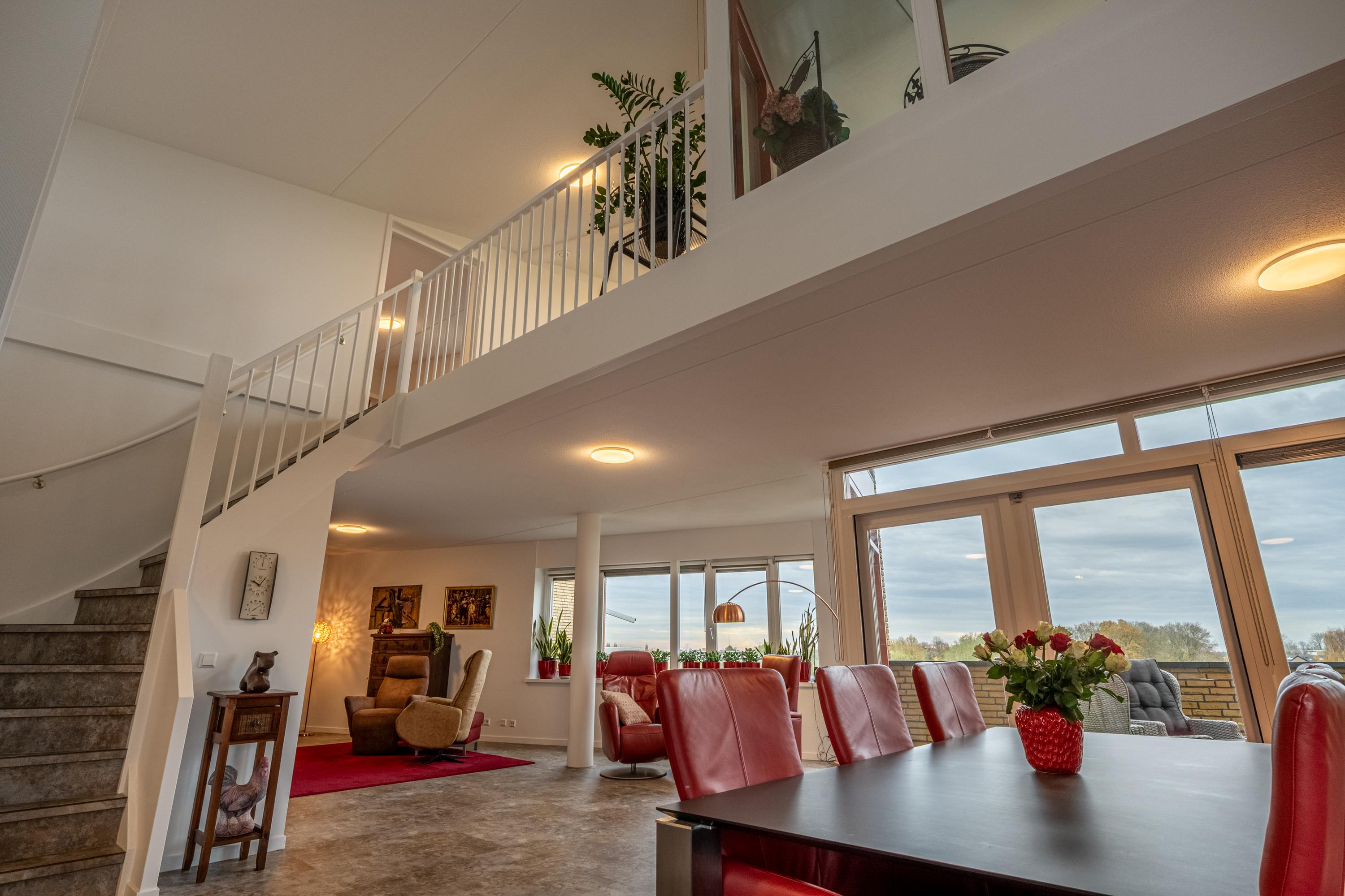 De vide met trap naar de etage geeft het penthouse een karakteristiek en bijzonder accent, waardoor wonen hier nét even anders voelt.