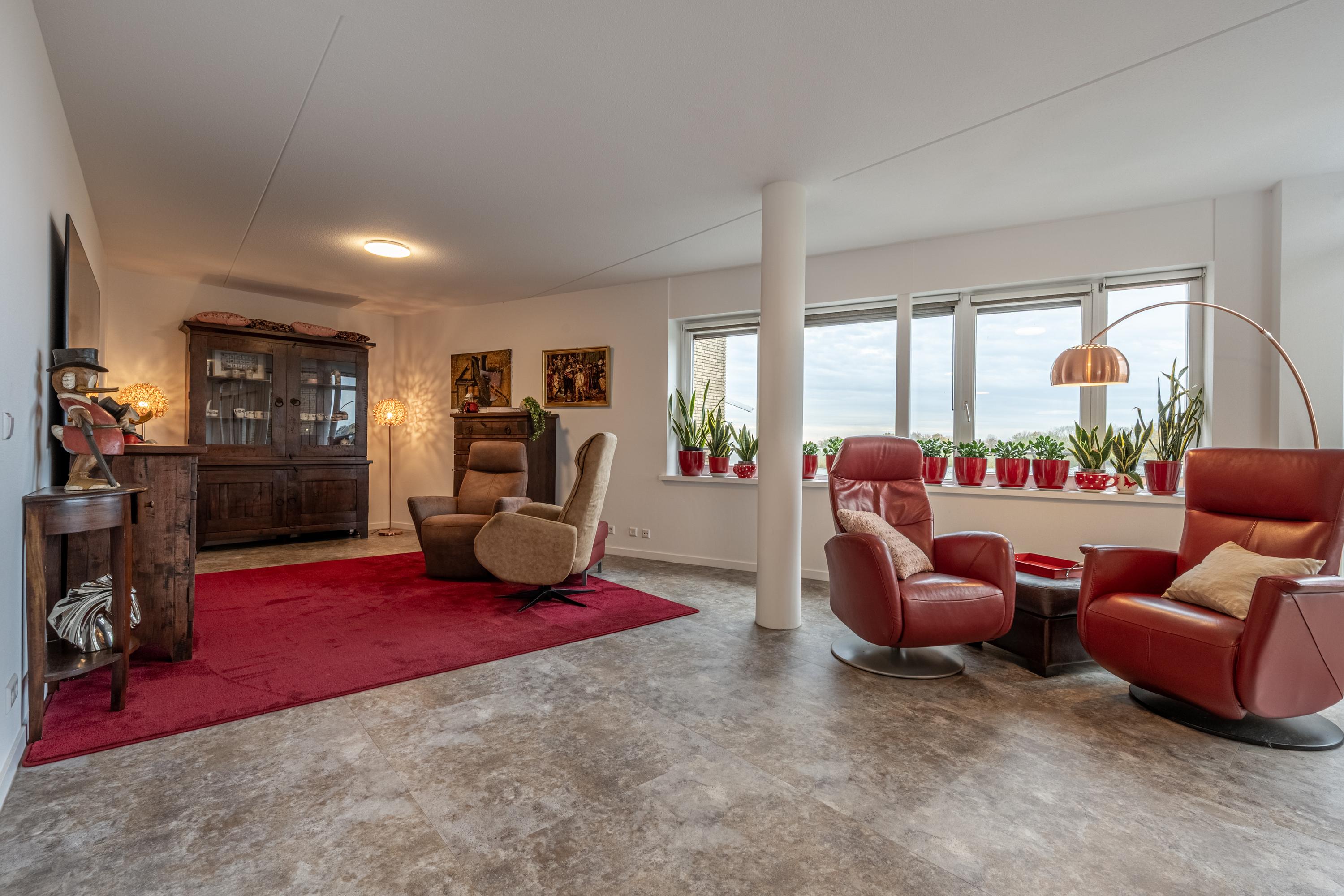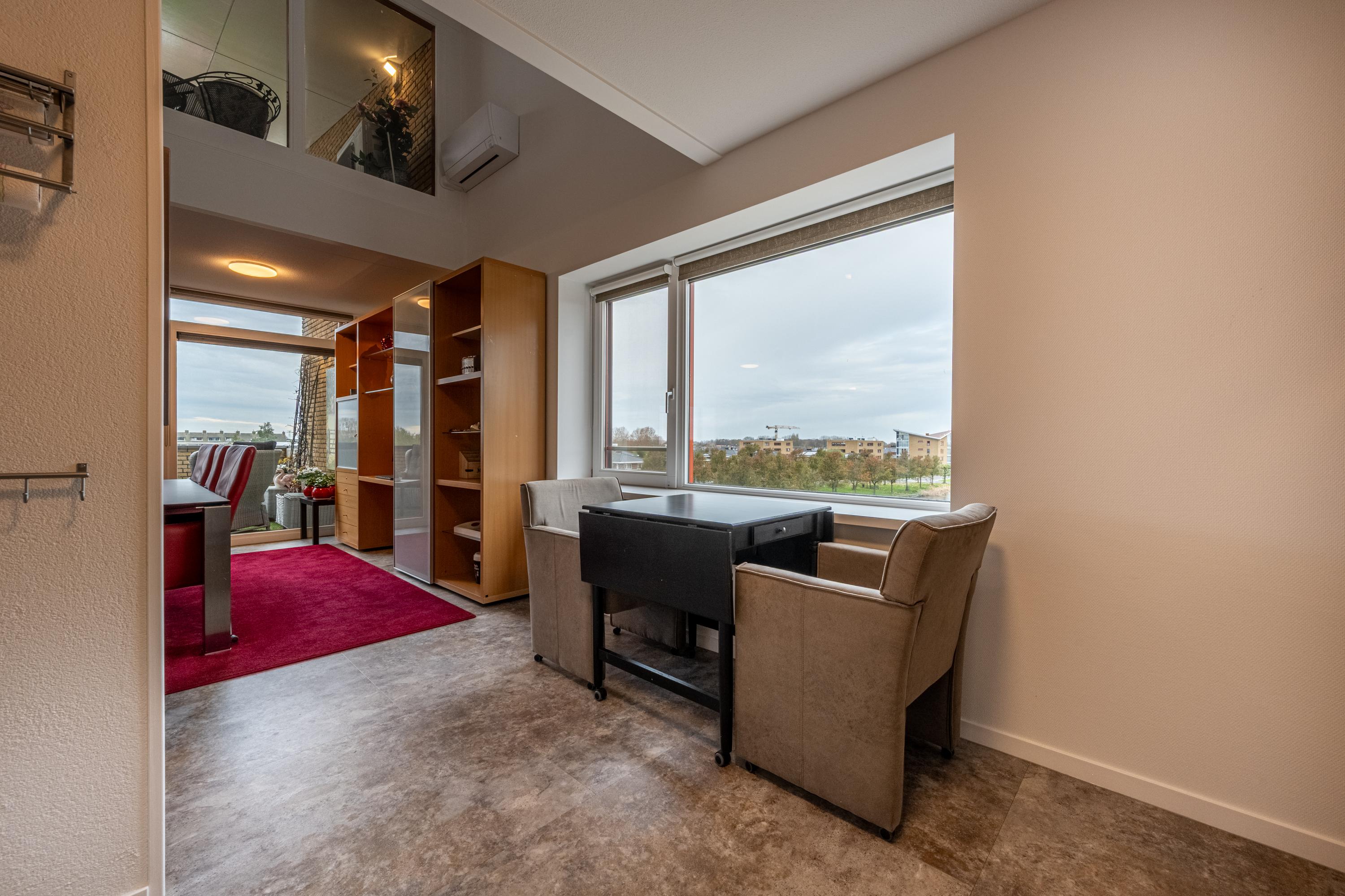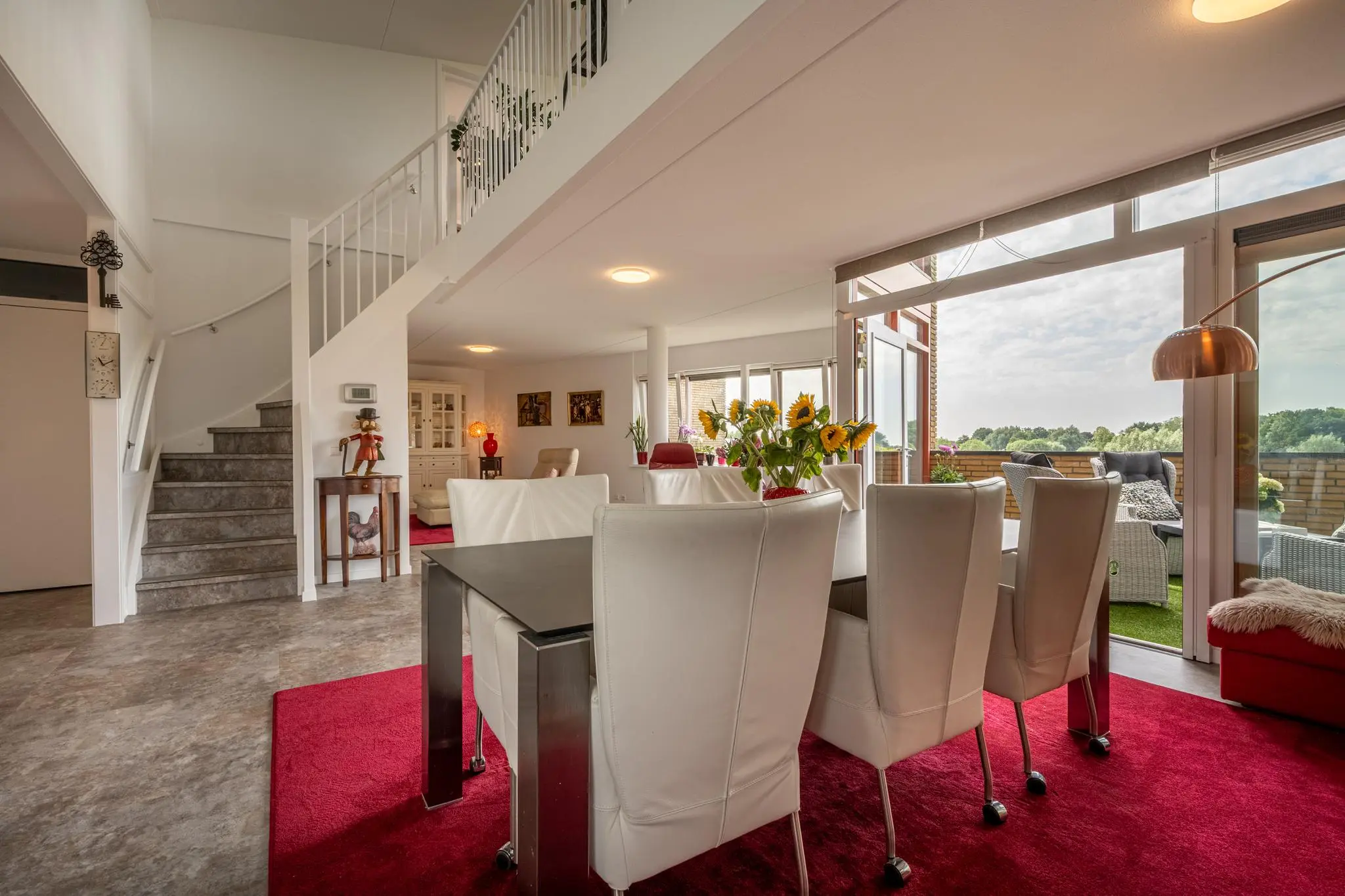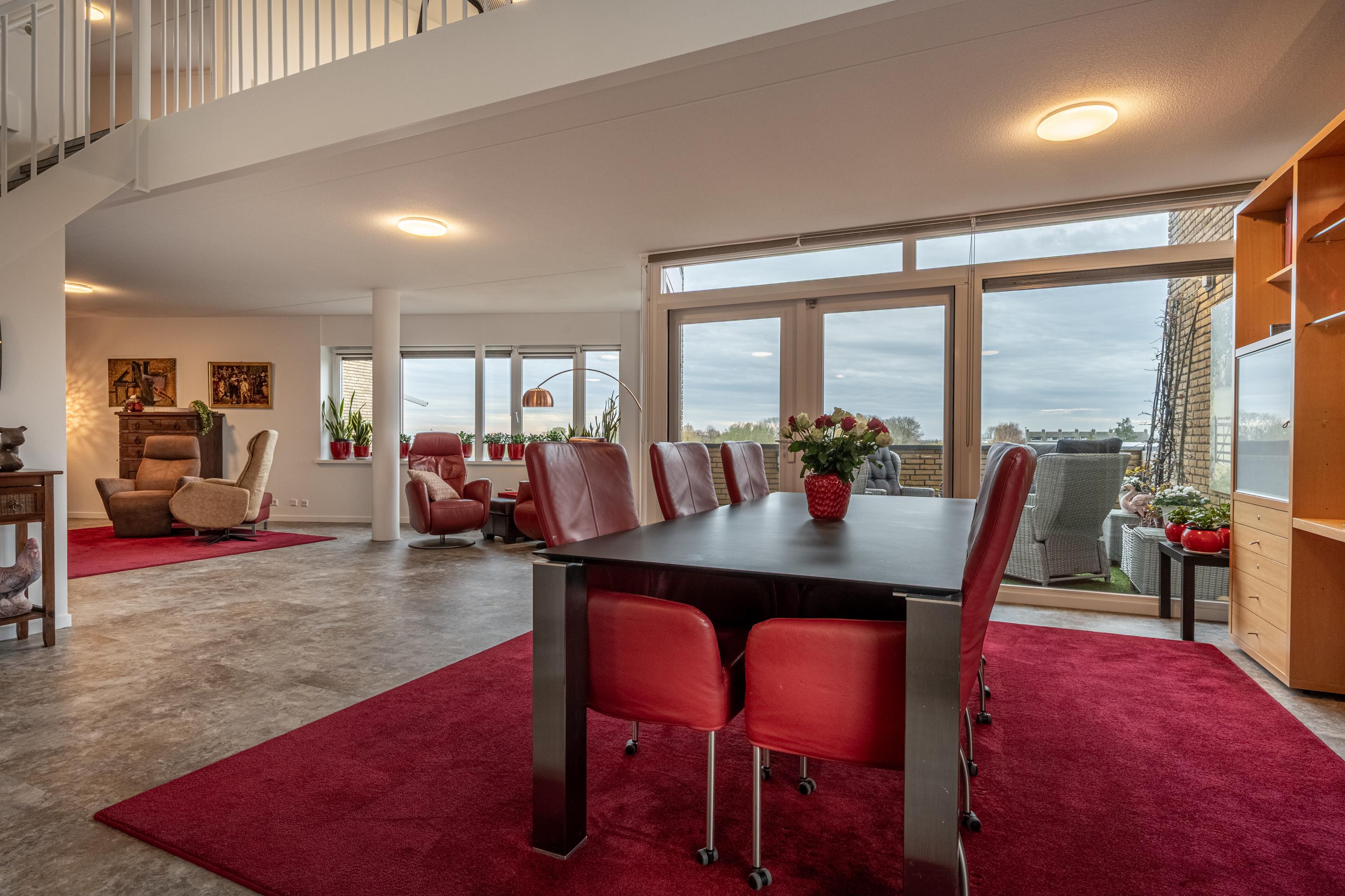 De vide met trap naar de etage geeft het penthouse een karakteristiek en bijzonder accent, waardoor wonen hier nét even anders voelt.