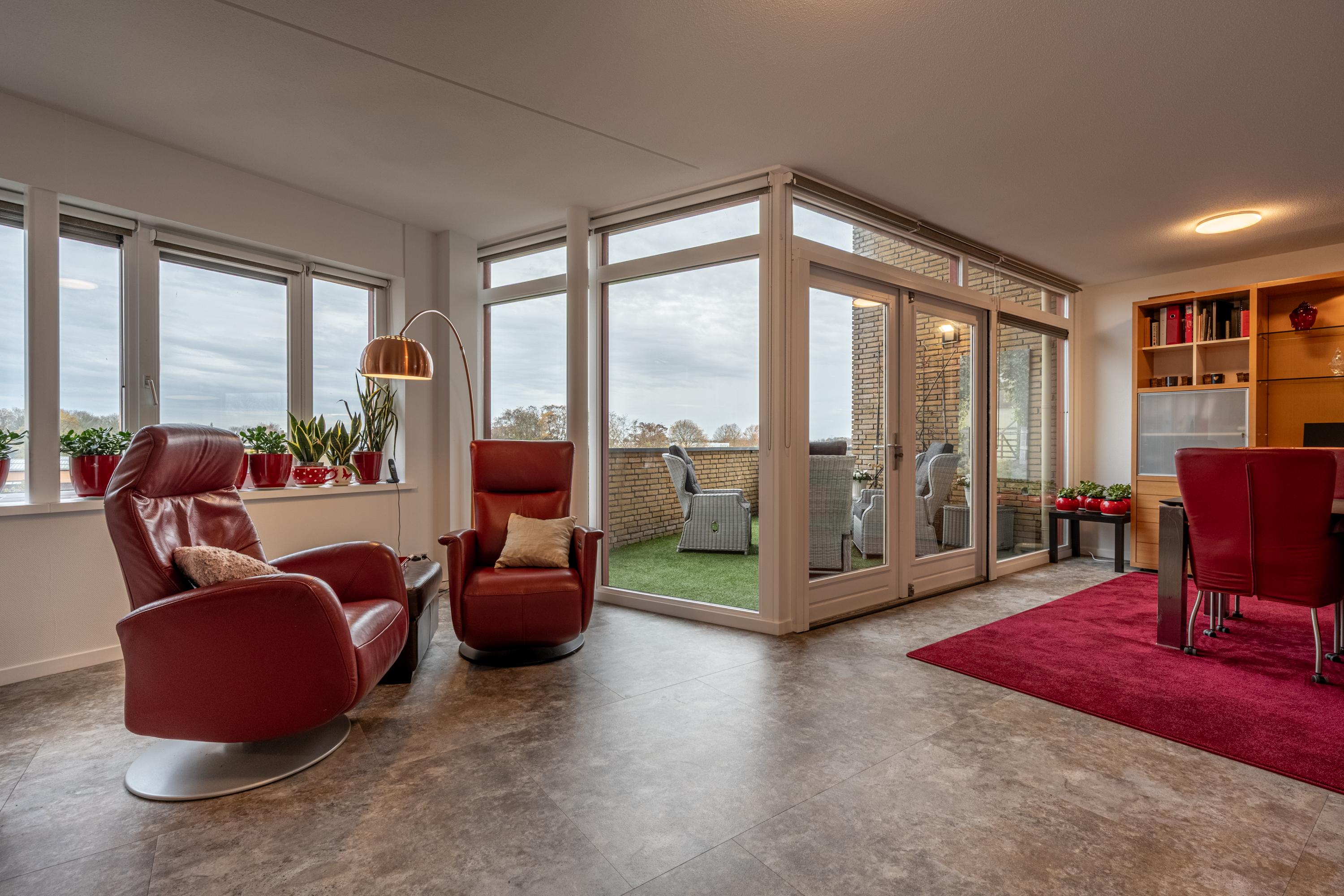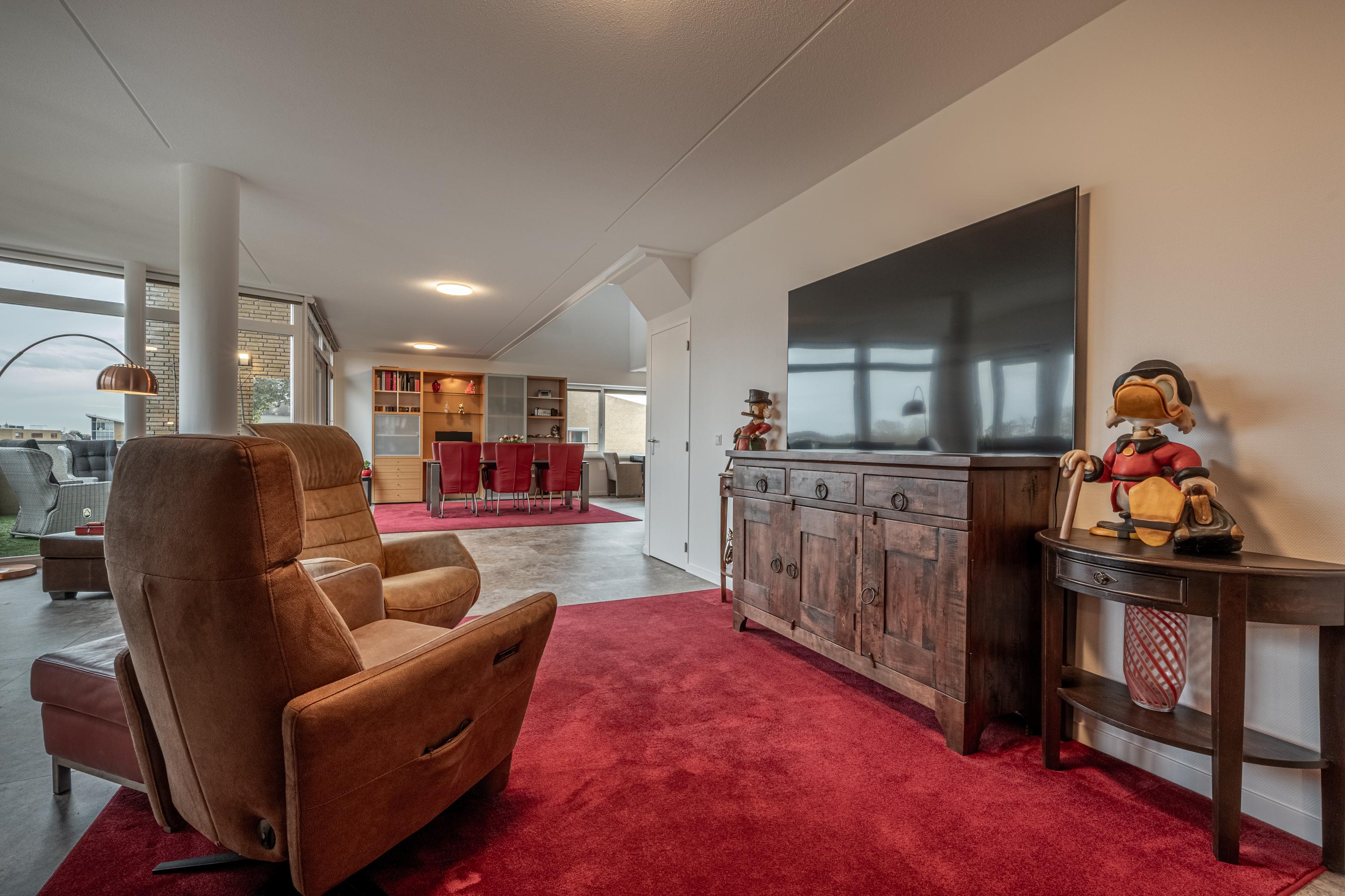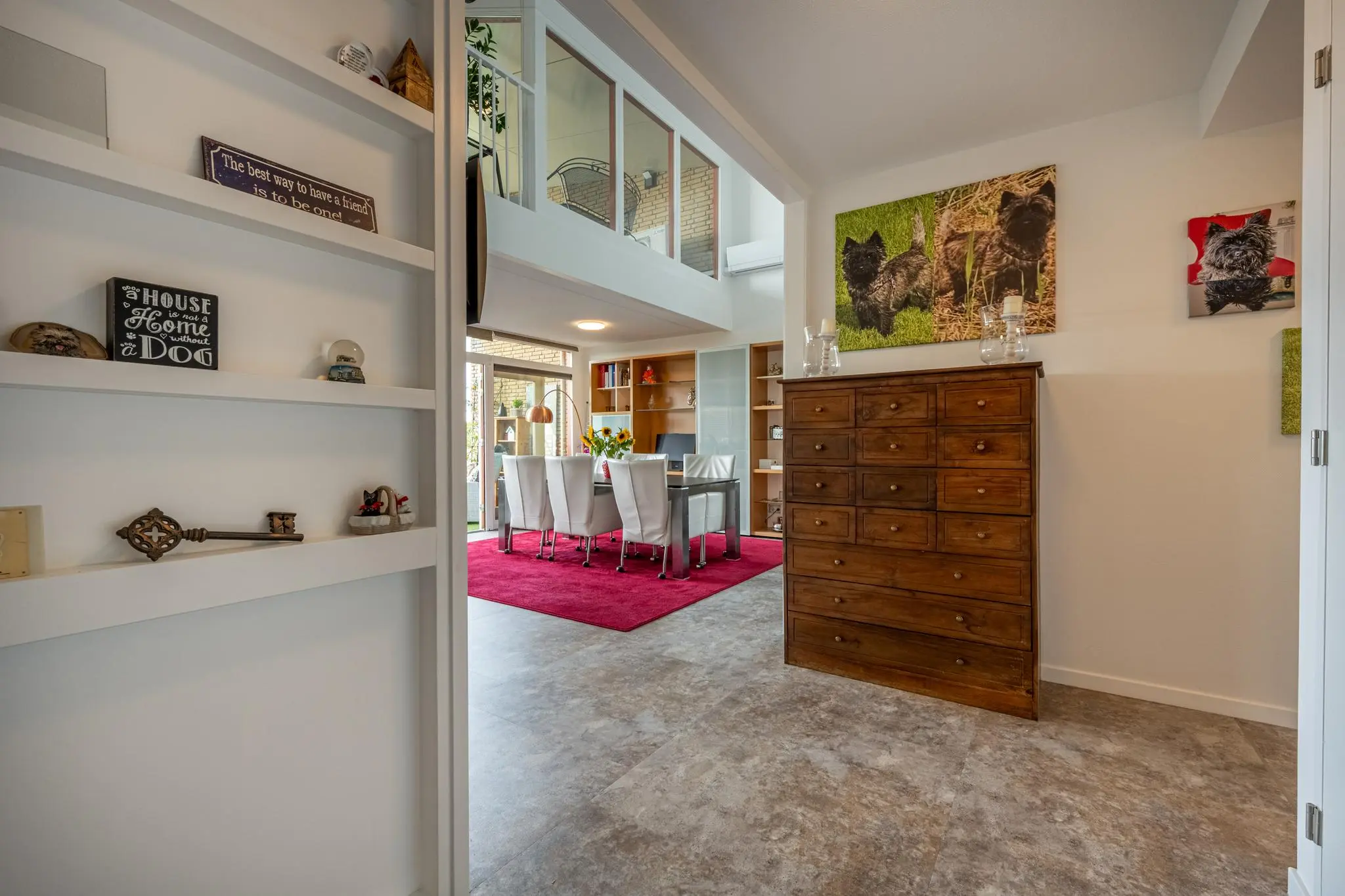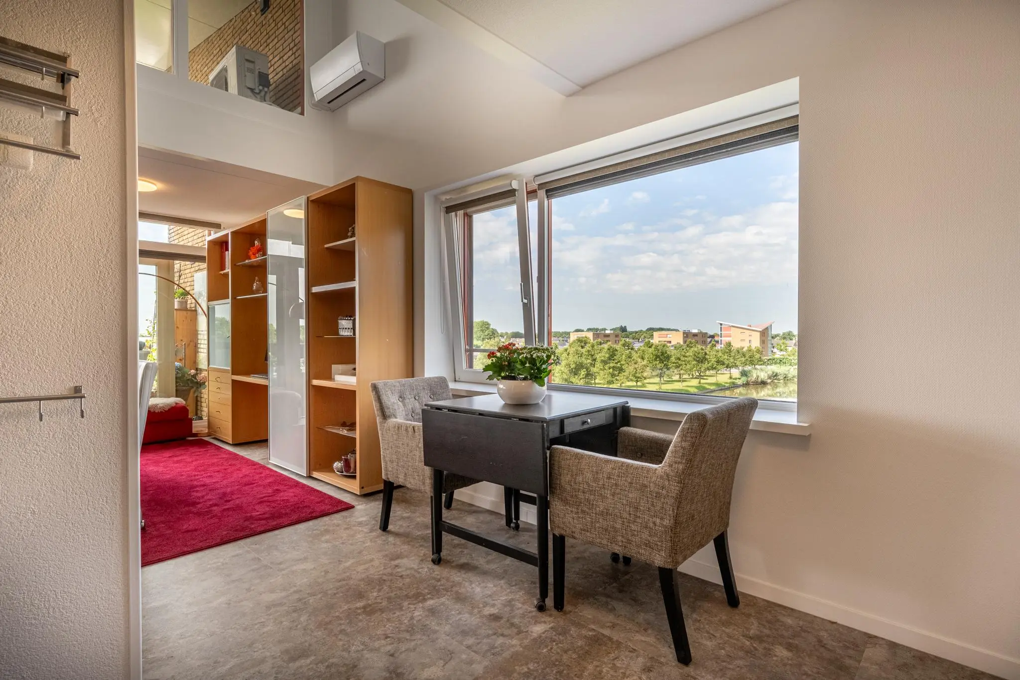 De vide met trap naar de etage geeft het penthouse een karakteristiek en bijzonder accent, waardoor wonen hier nét even anders voelt.