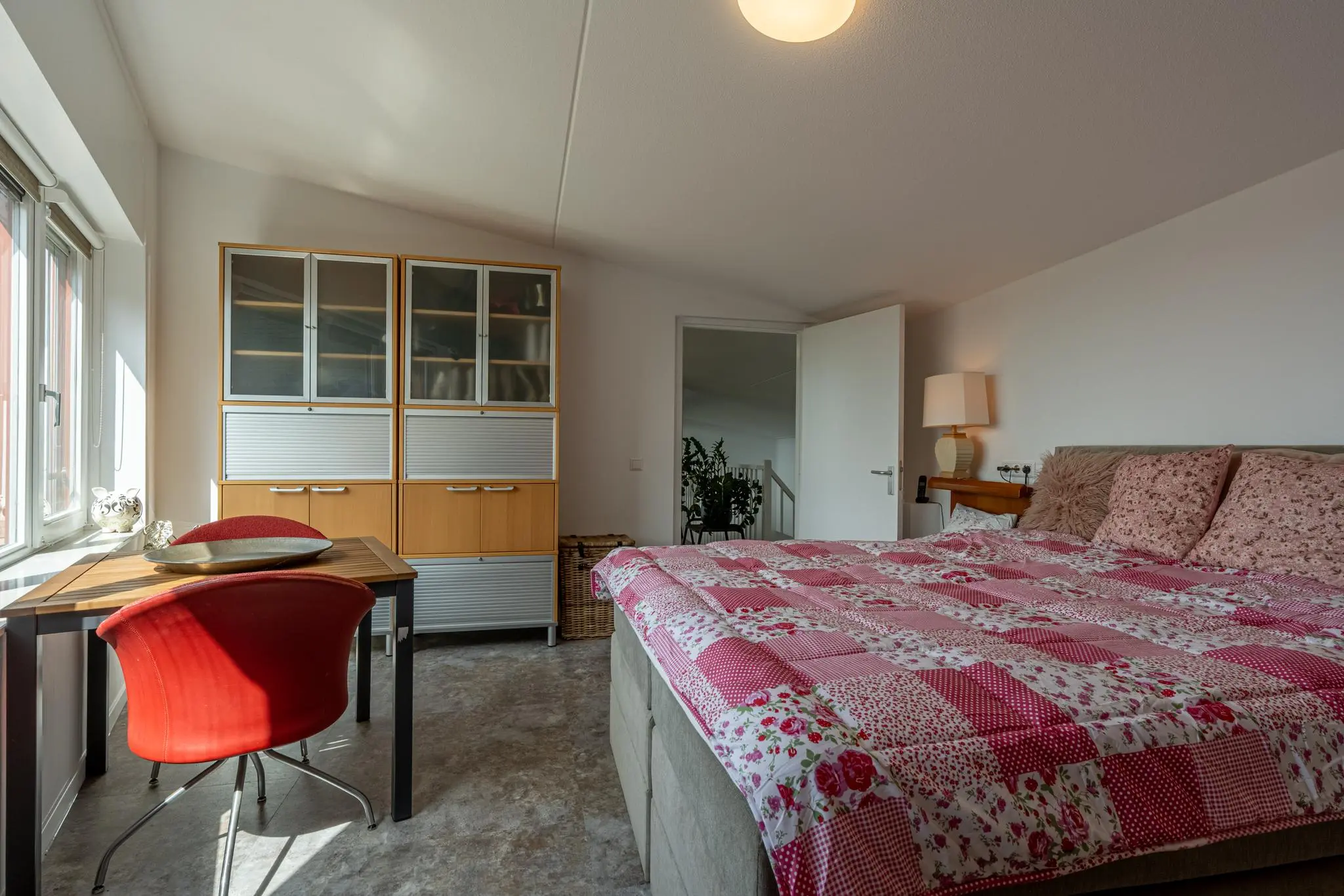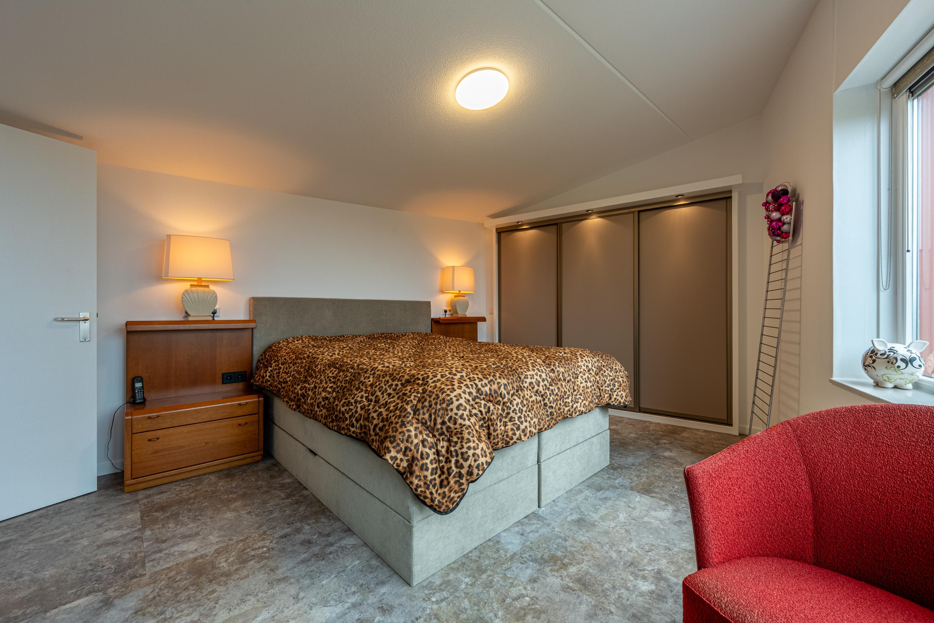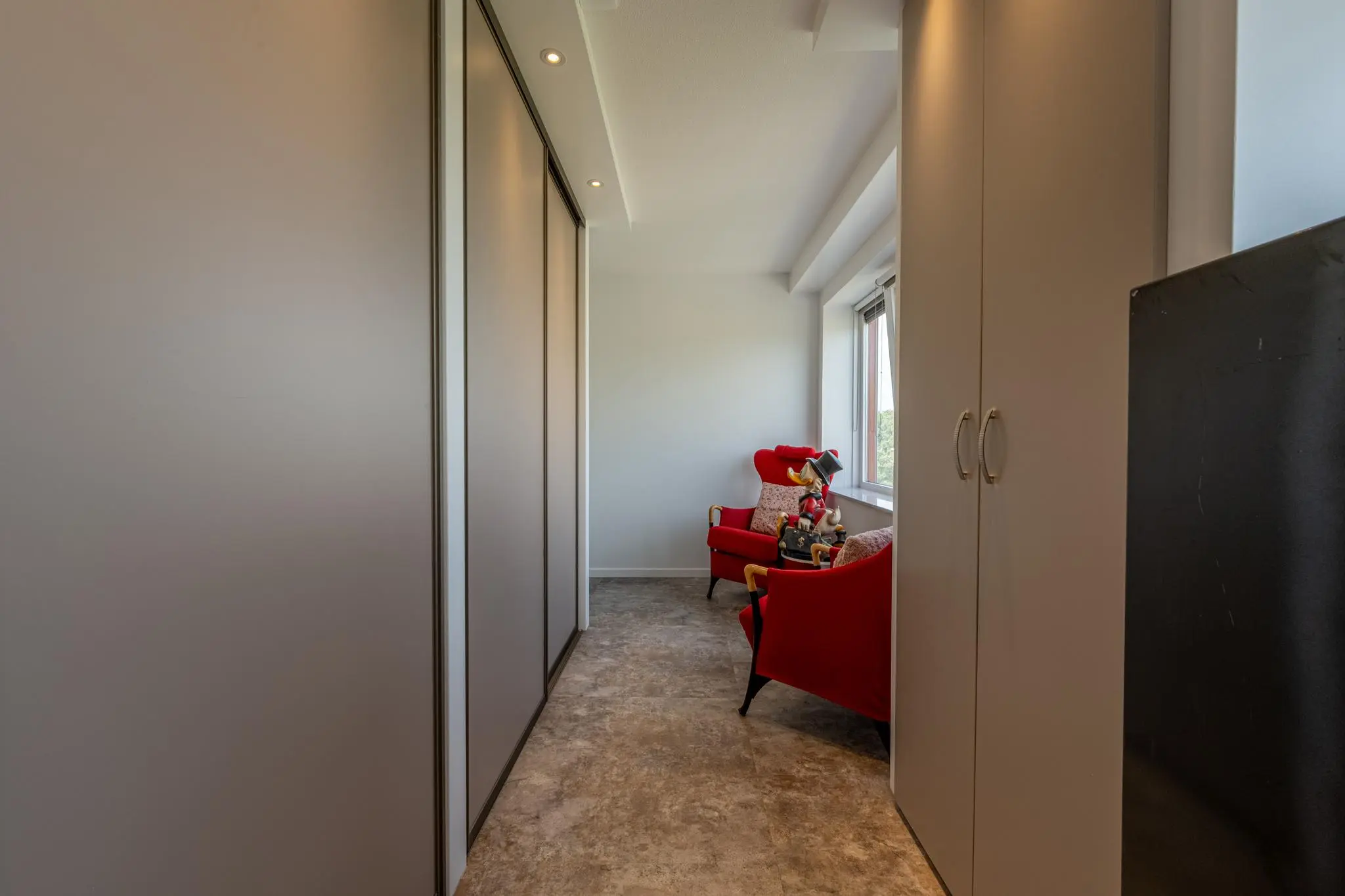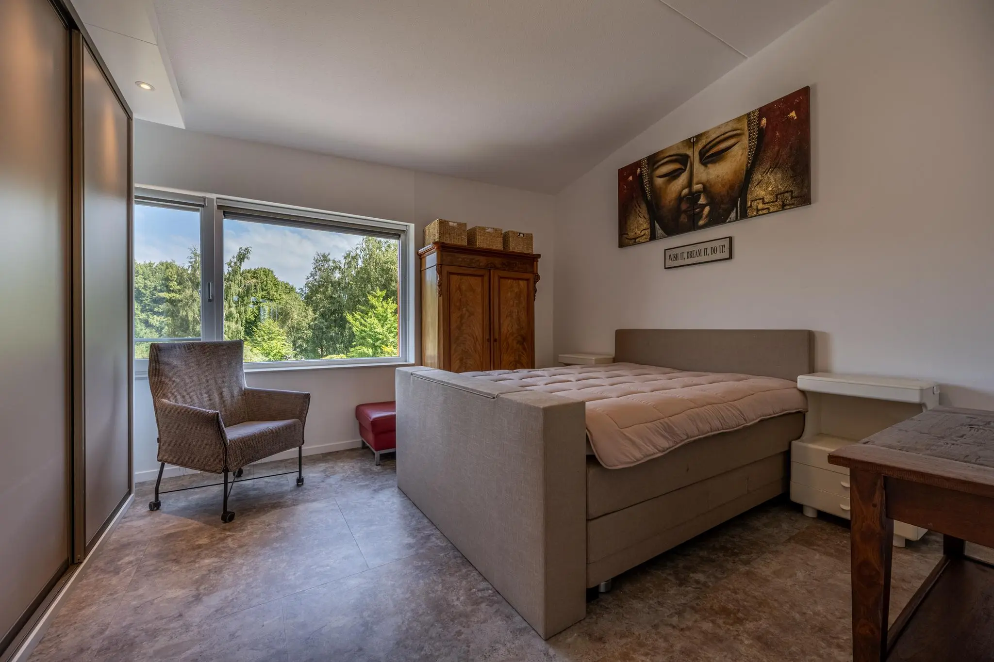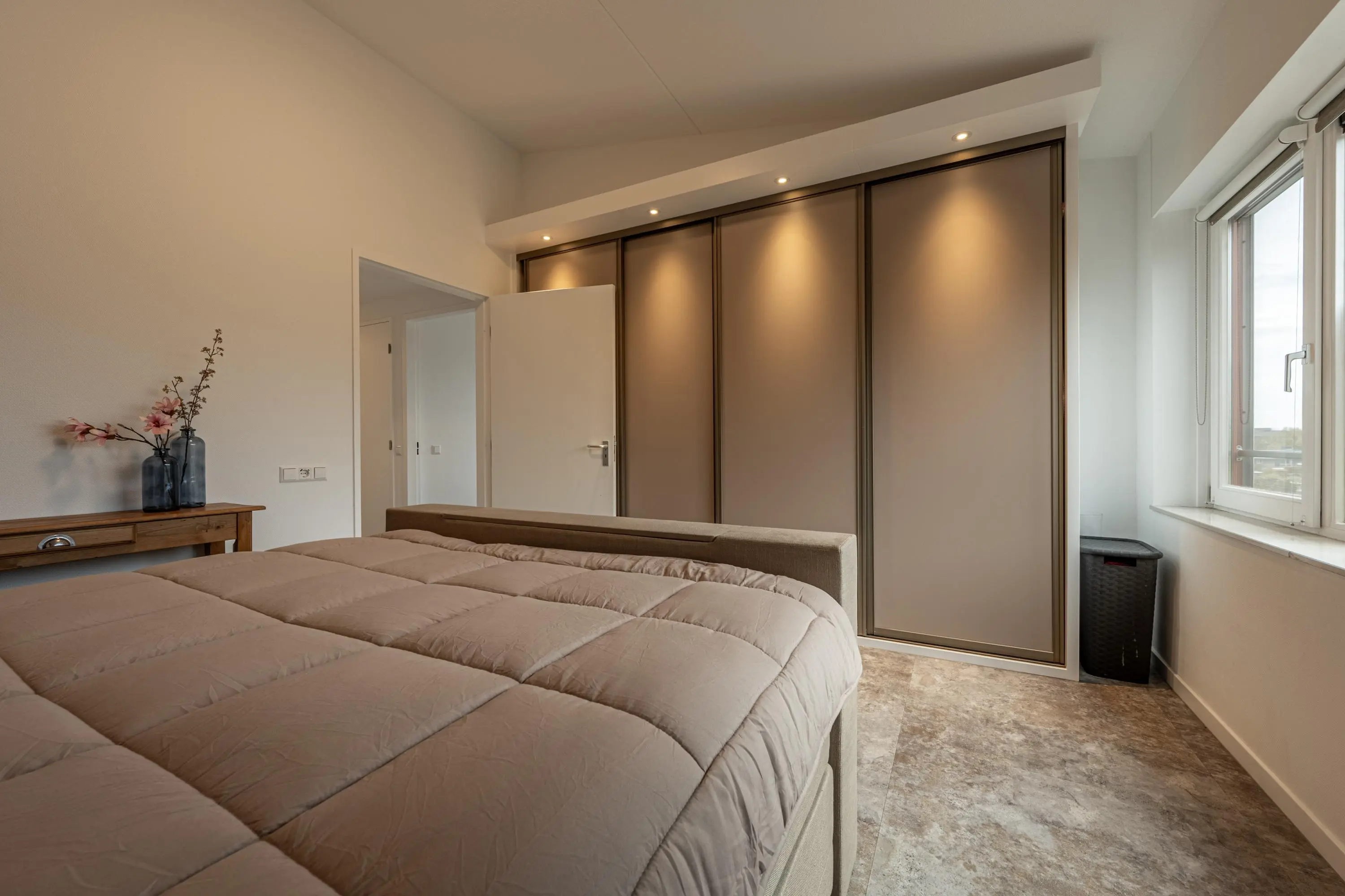 De 2 ruime slaapkamers zijn beide voorzien van nieuwe vaste kastenwanden. Een van de twee slaapkamers is zelfs omgebouwd tot volwaardige kleedkamer met het karakter en de uitstraling van een walk-in closet. Hier is ook een hoekraam gesitueerd, waardoor het uitzicht over de groene omgeving aanzienlijk wordt verruimd.