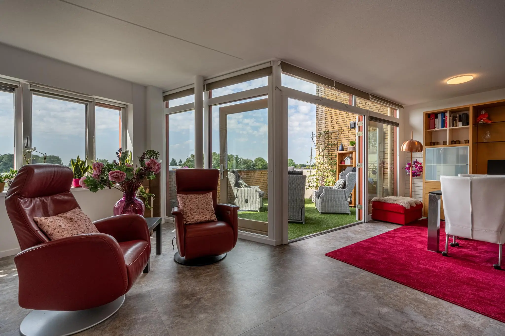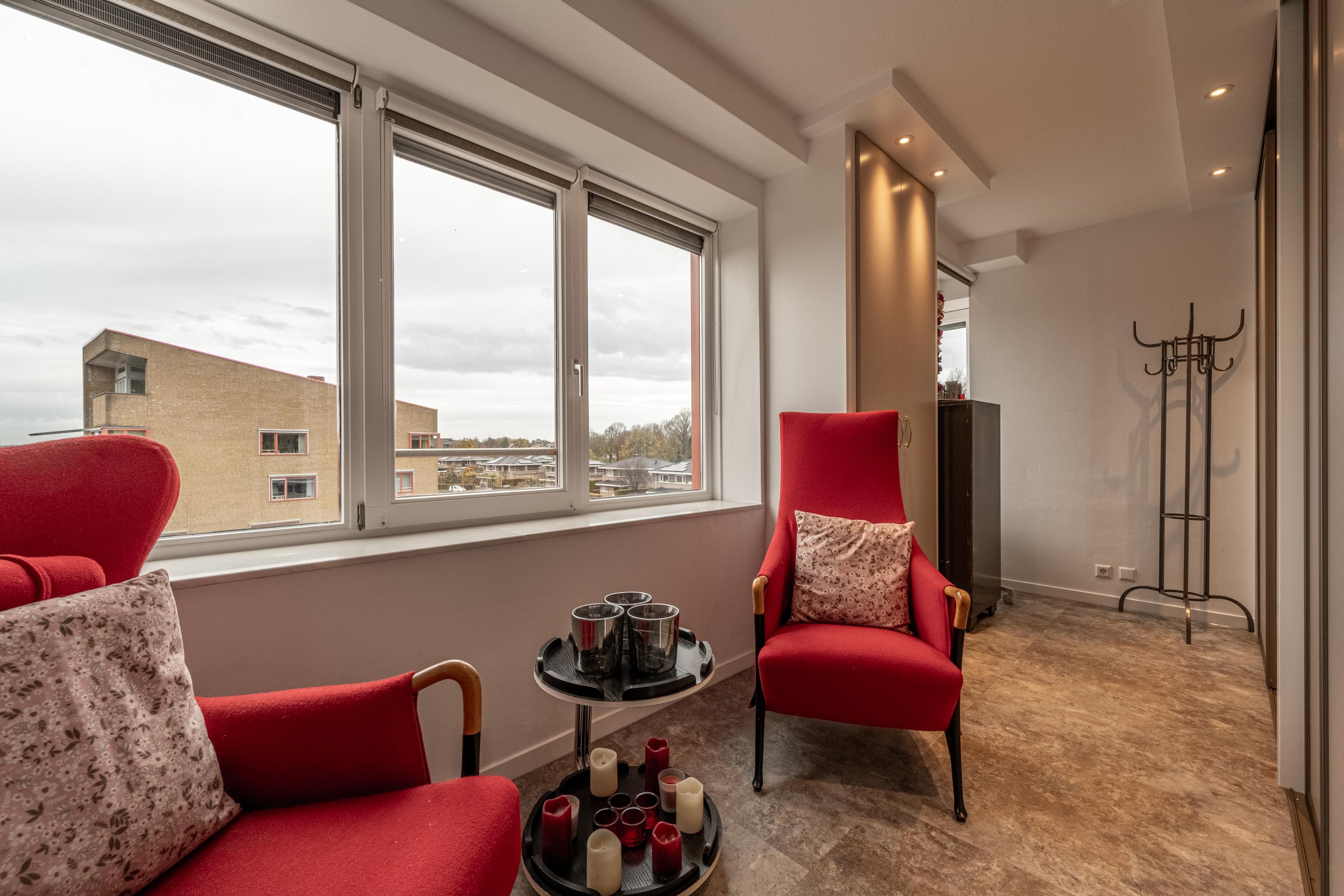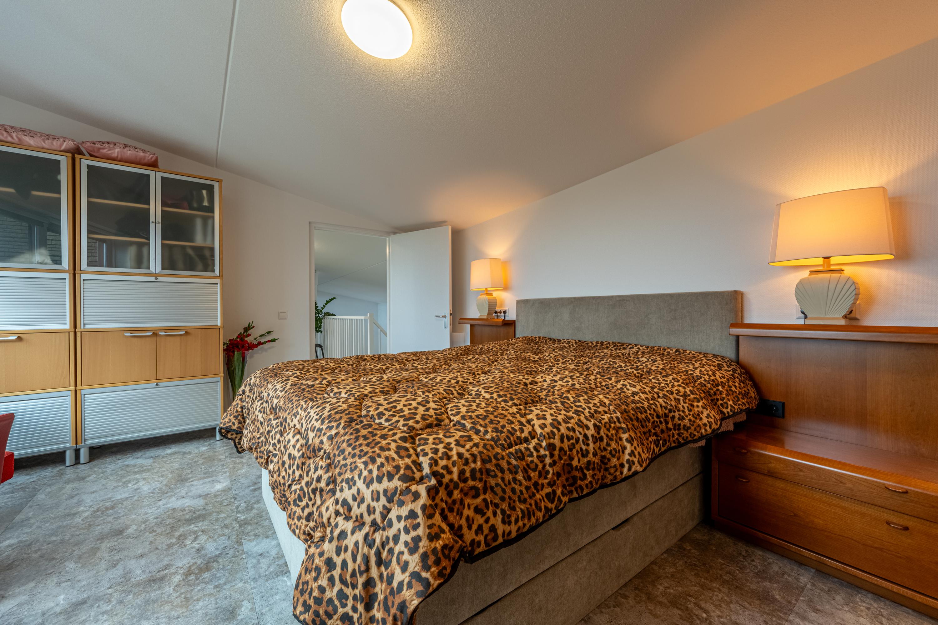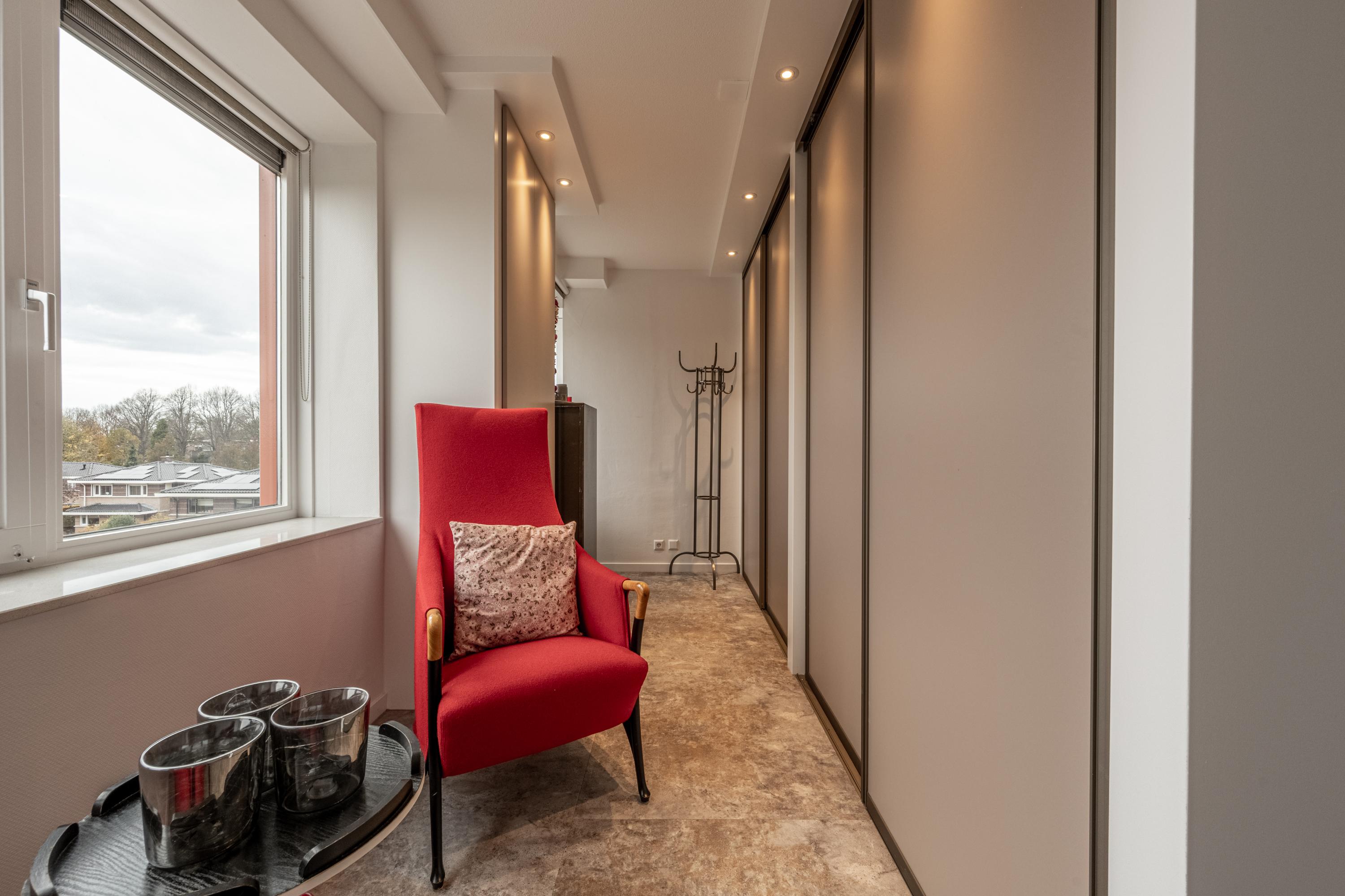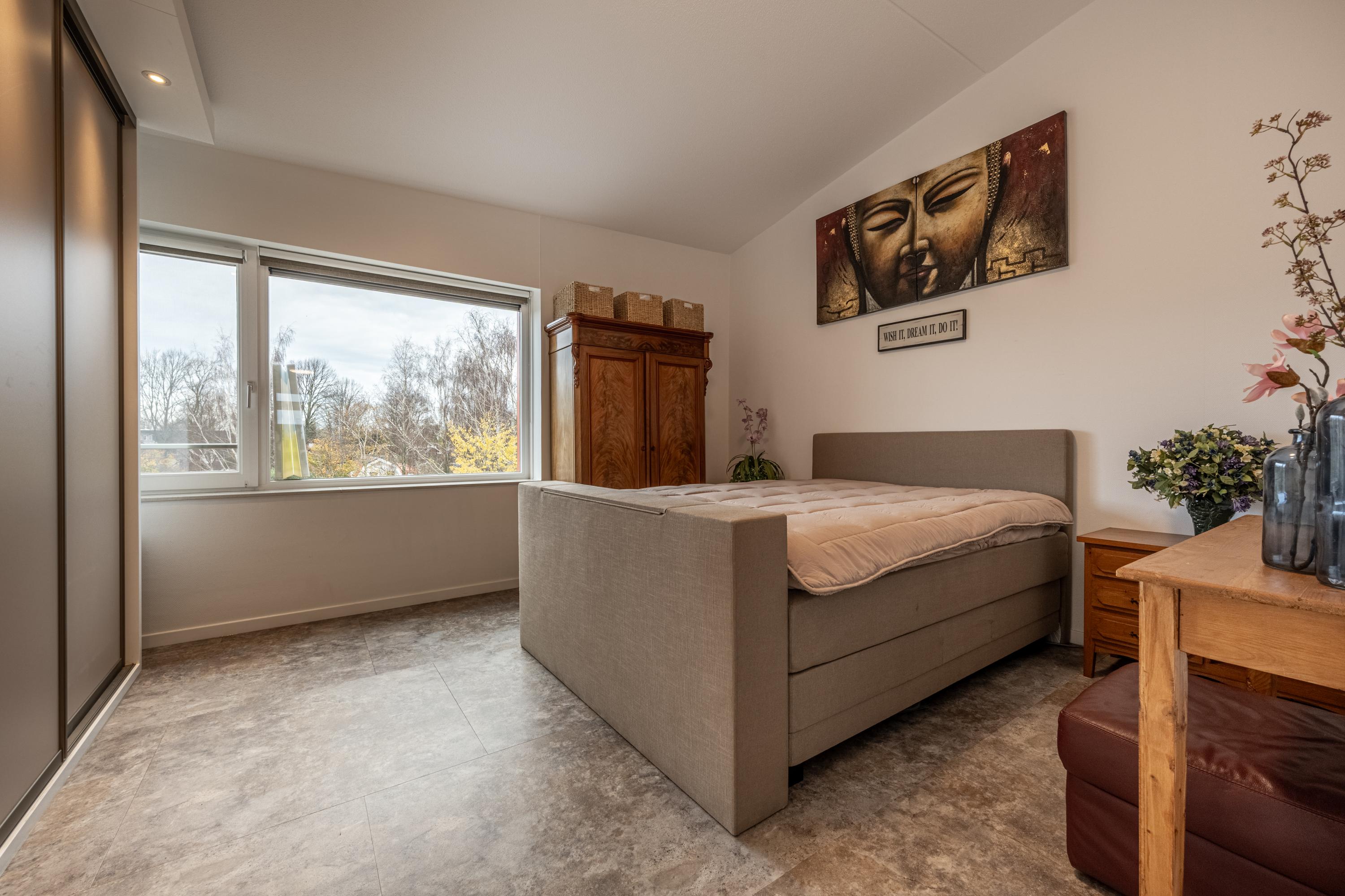 De 2 ruime slaapkamers zijn beide voorzien van nieuwe vaste kastenwanden. Een van de twee slaapkamers is zelfs omgebouwd tot volwaardige kleedkamer met het karakter en de uitstraling van een walk-in closet. Hier is ook een hoekraam gesitueerd, waardoor het uitzicht over de groene omgeving aanzienlijk wordt verruimd.