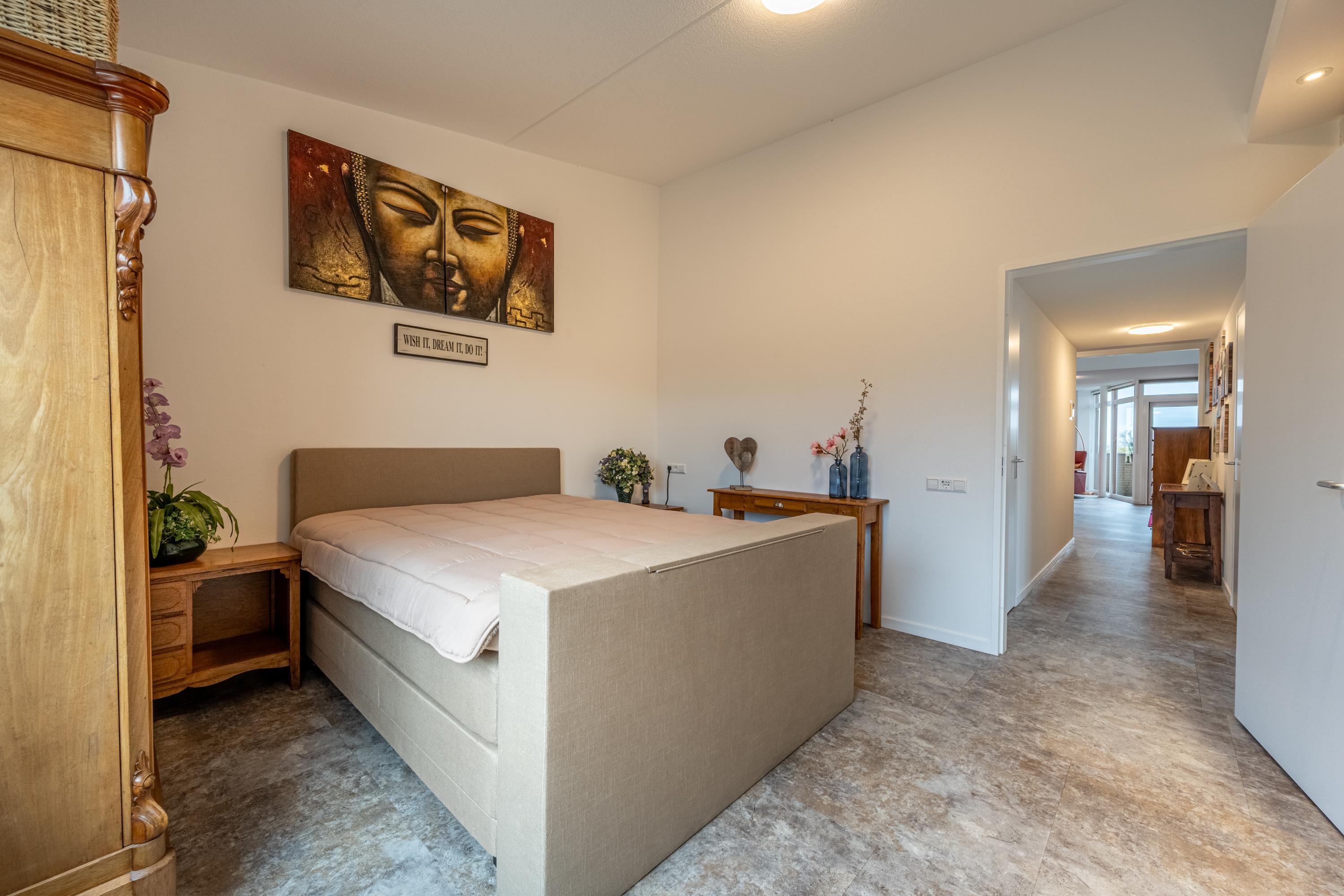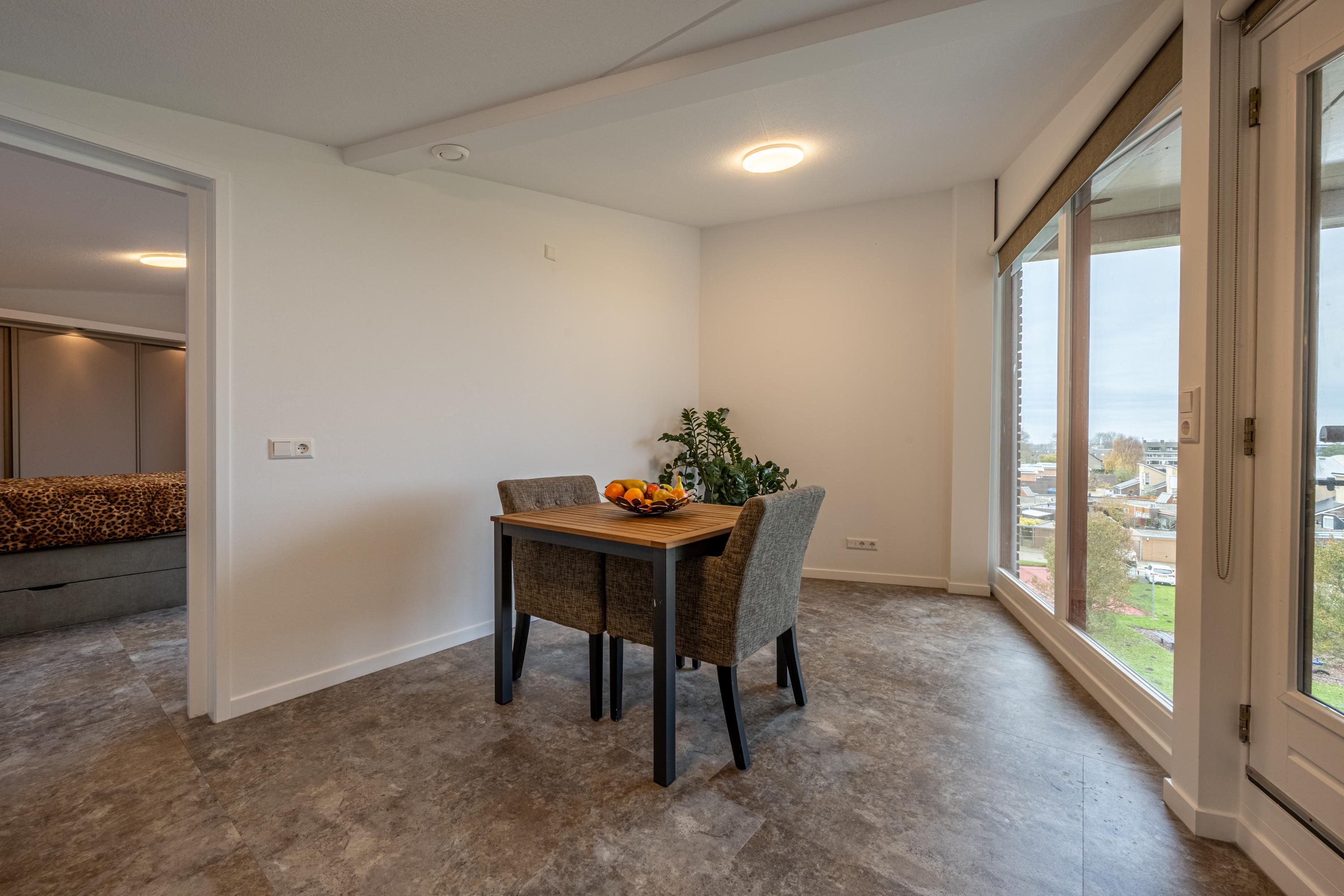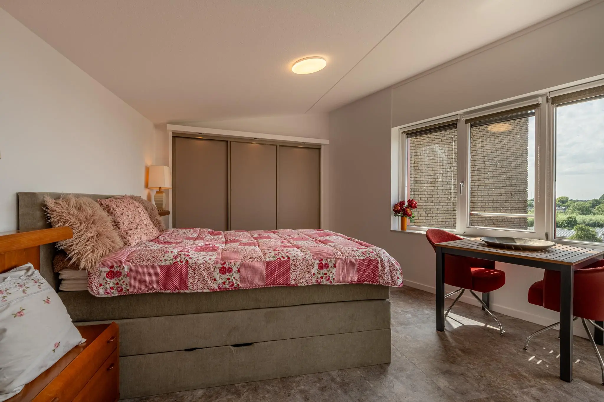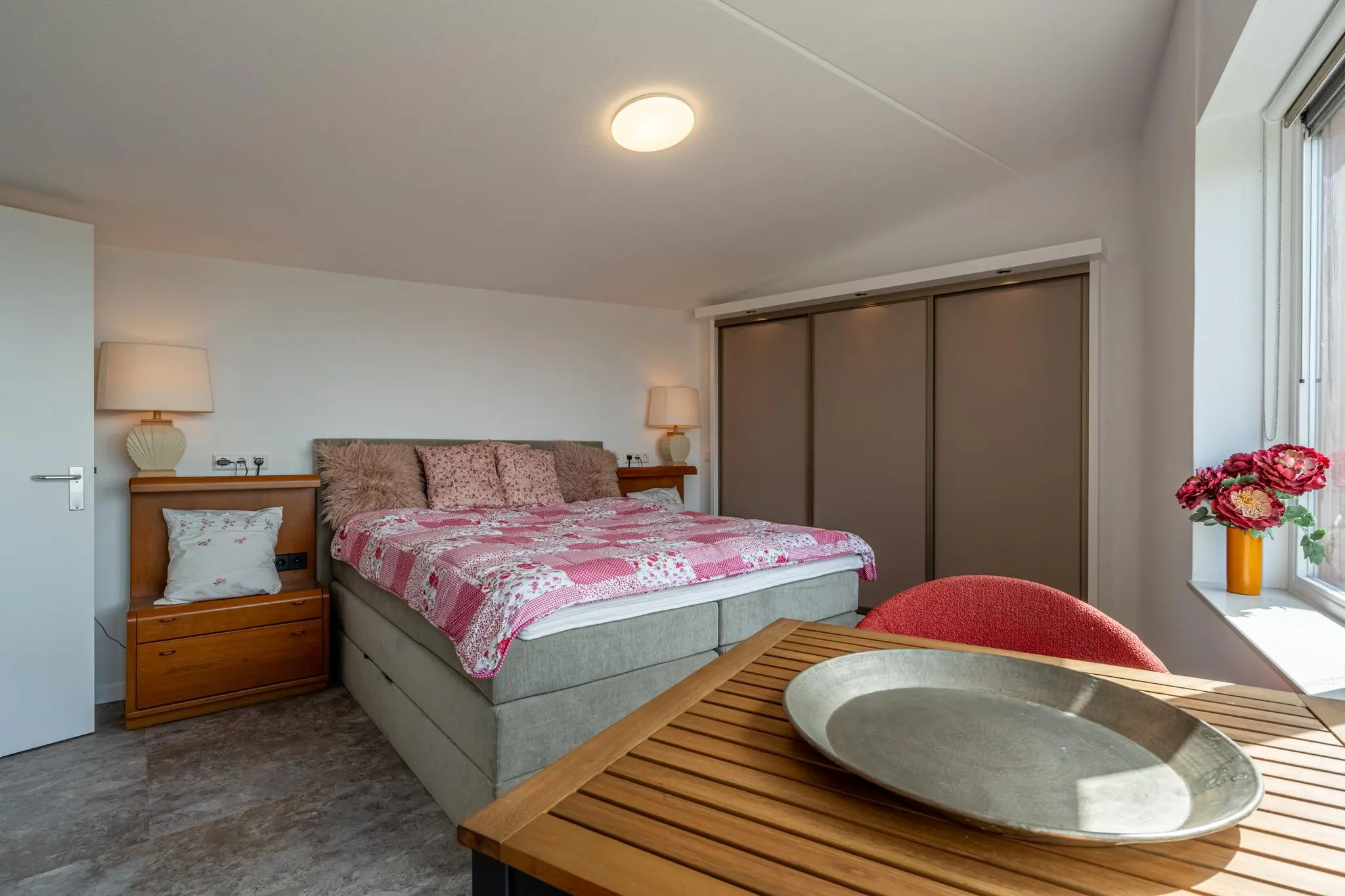 Via de lichte en gezellige vide-kamer is er bovendien toegang tot een ruime, comfortabele slaapkamer. Ook deze kamer is voorzien van een nieuwe vaste kastenwand.
