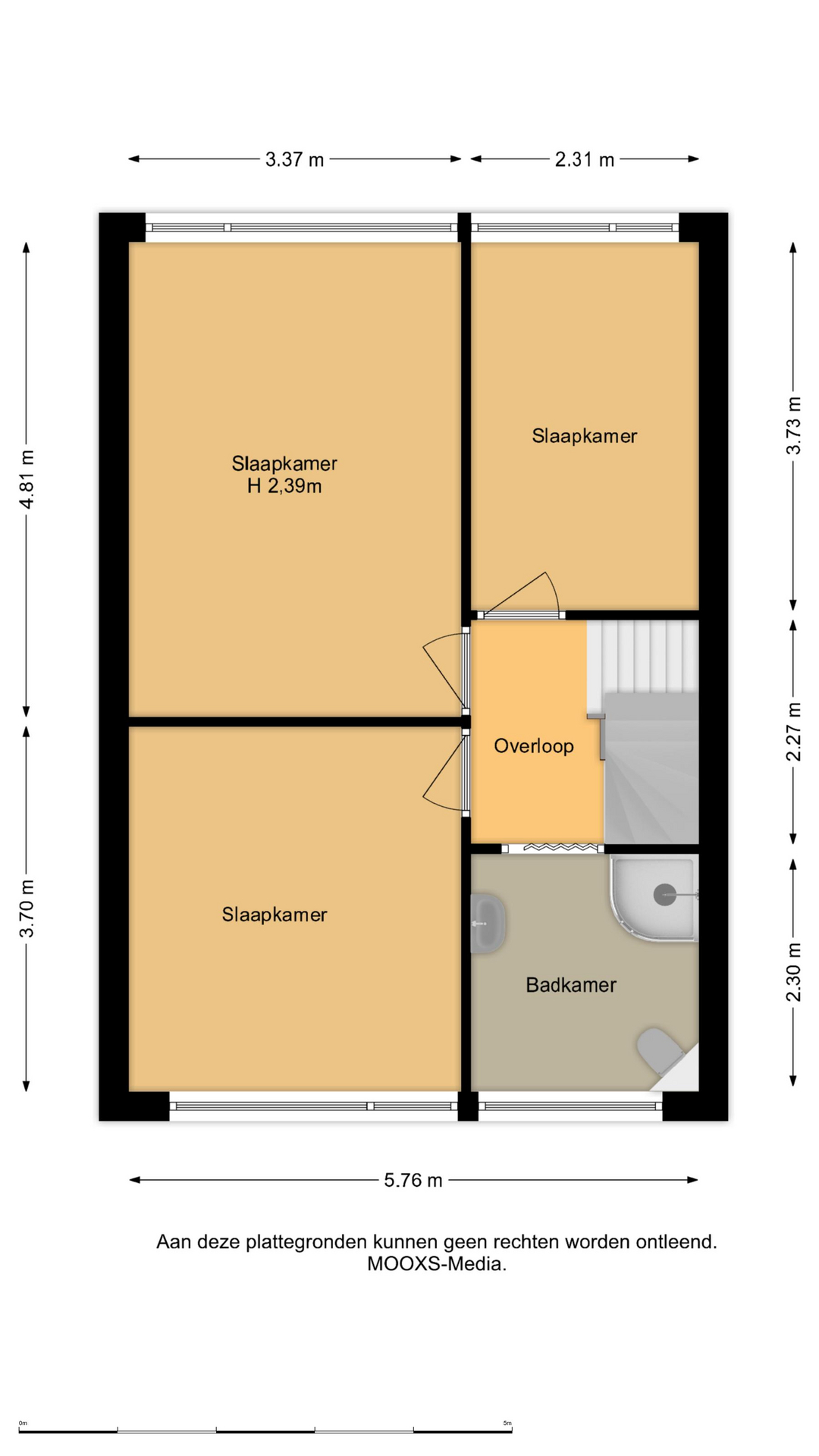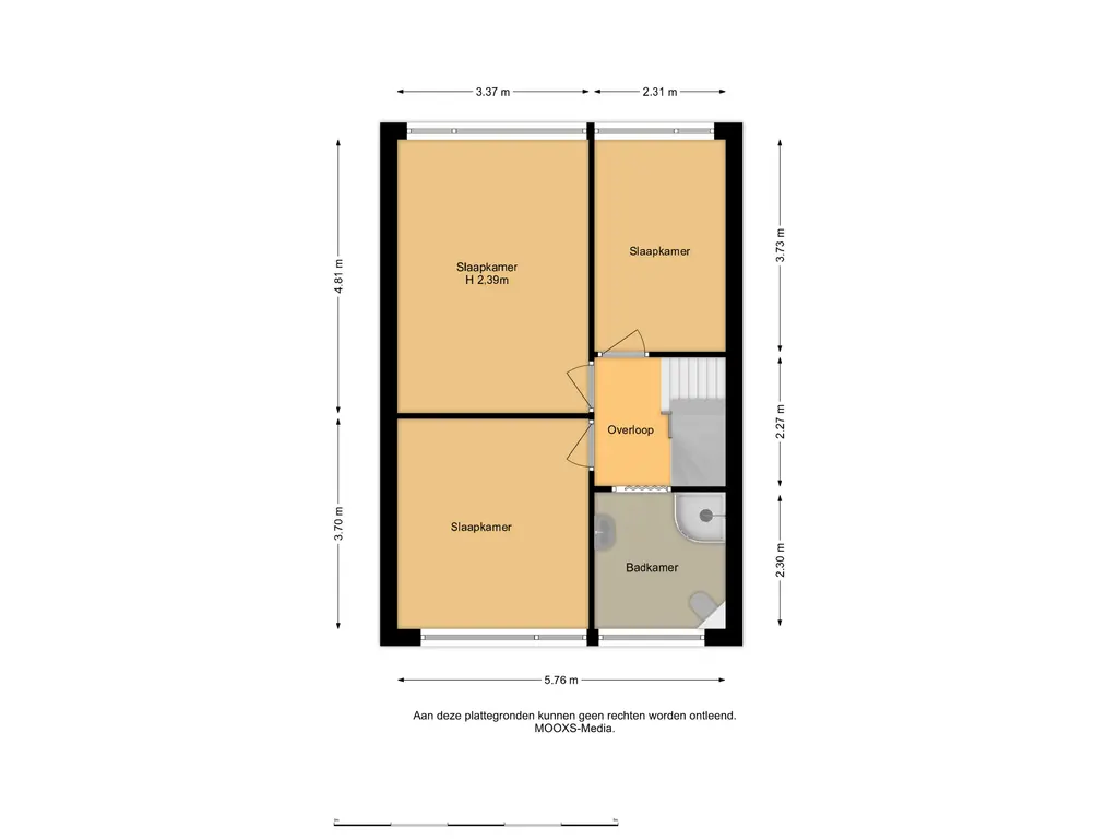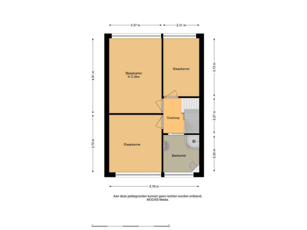Vanaf de overloop zijn de badkamer en 3 ruime slaapkamers bereikbaar.