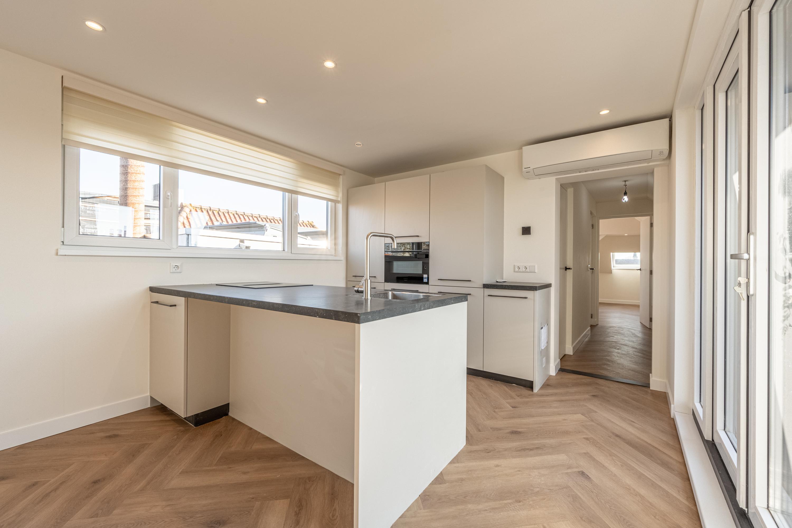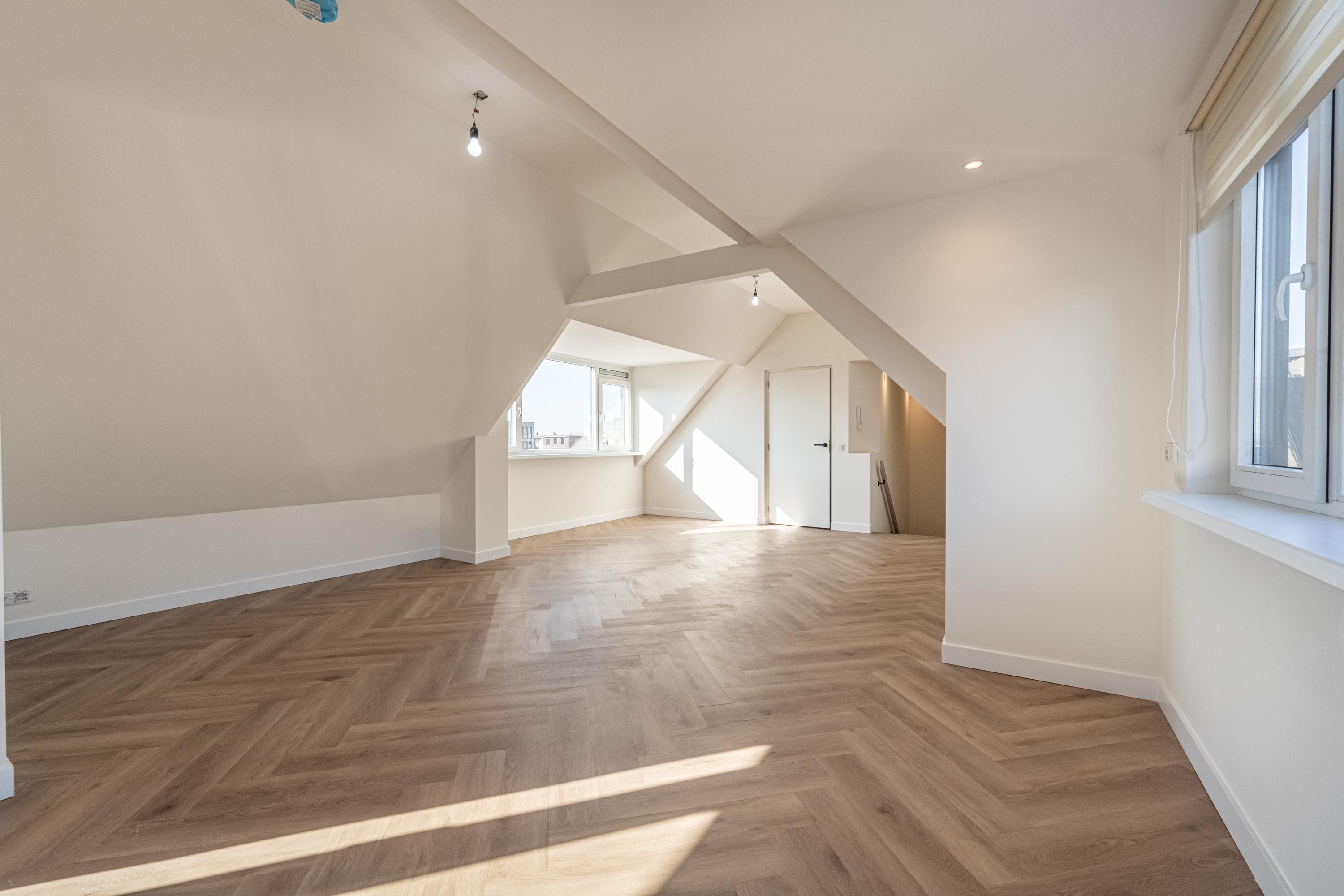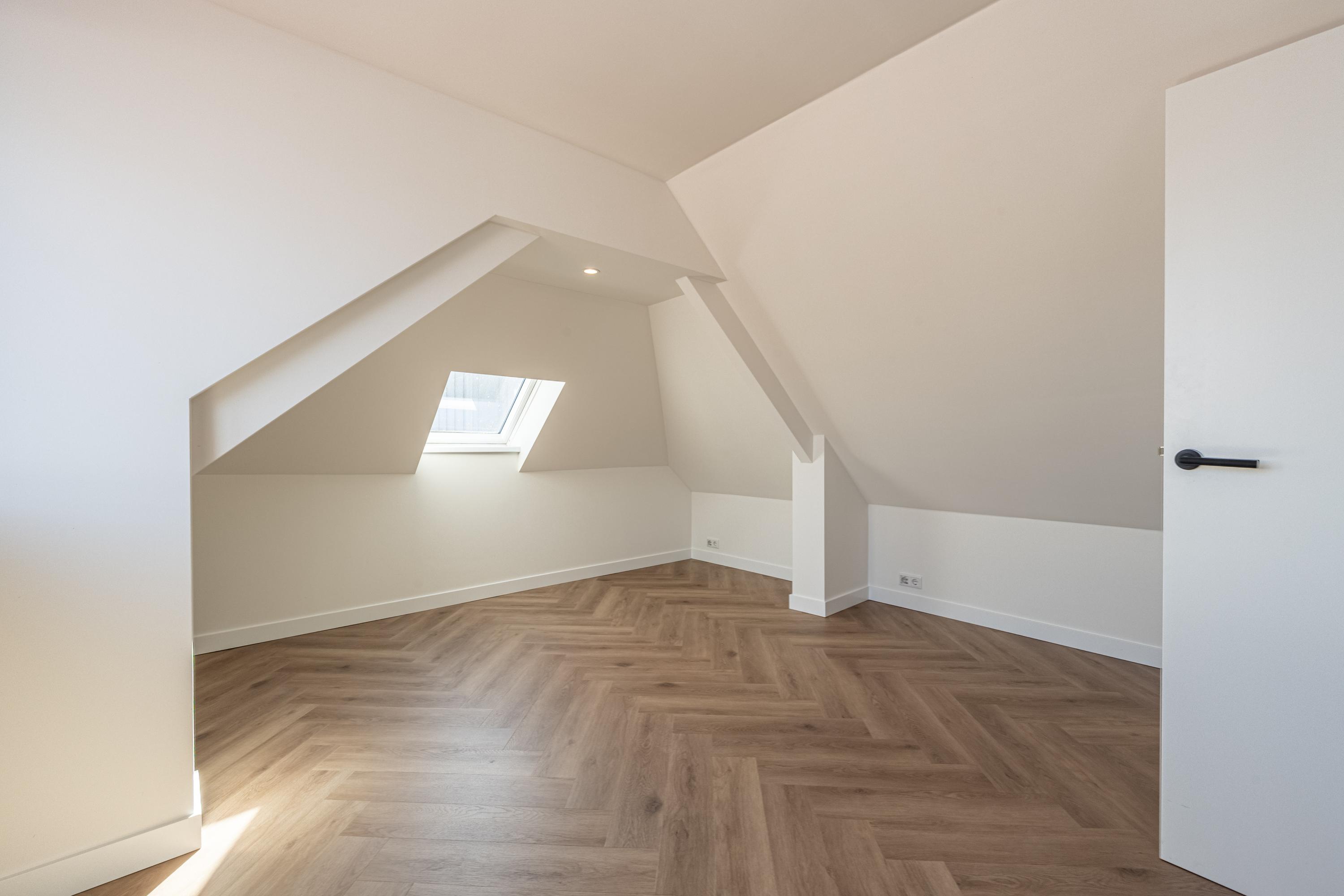 De woonkamer en keuken vormen samen een open en samenhangende ruimte. De afwerking kenmerkt zich door strak gestucte wanden en plafonds, inbouwspots en een in visgraat gelegde PVC-vloer met hoge plinten die in vrijwel de gehele woning is doorgelegd. Meerdere dakkapellen zorgen voor extra ruimte en daglicht.