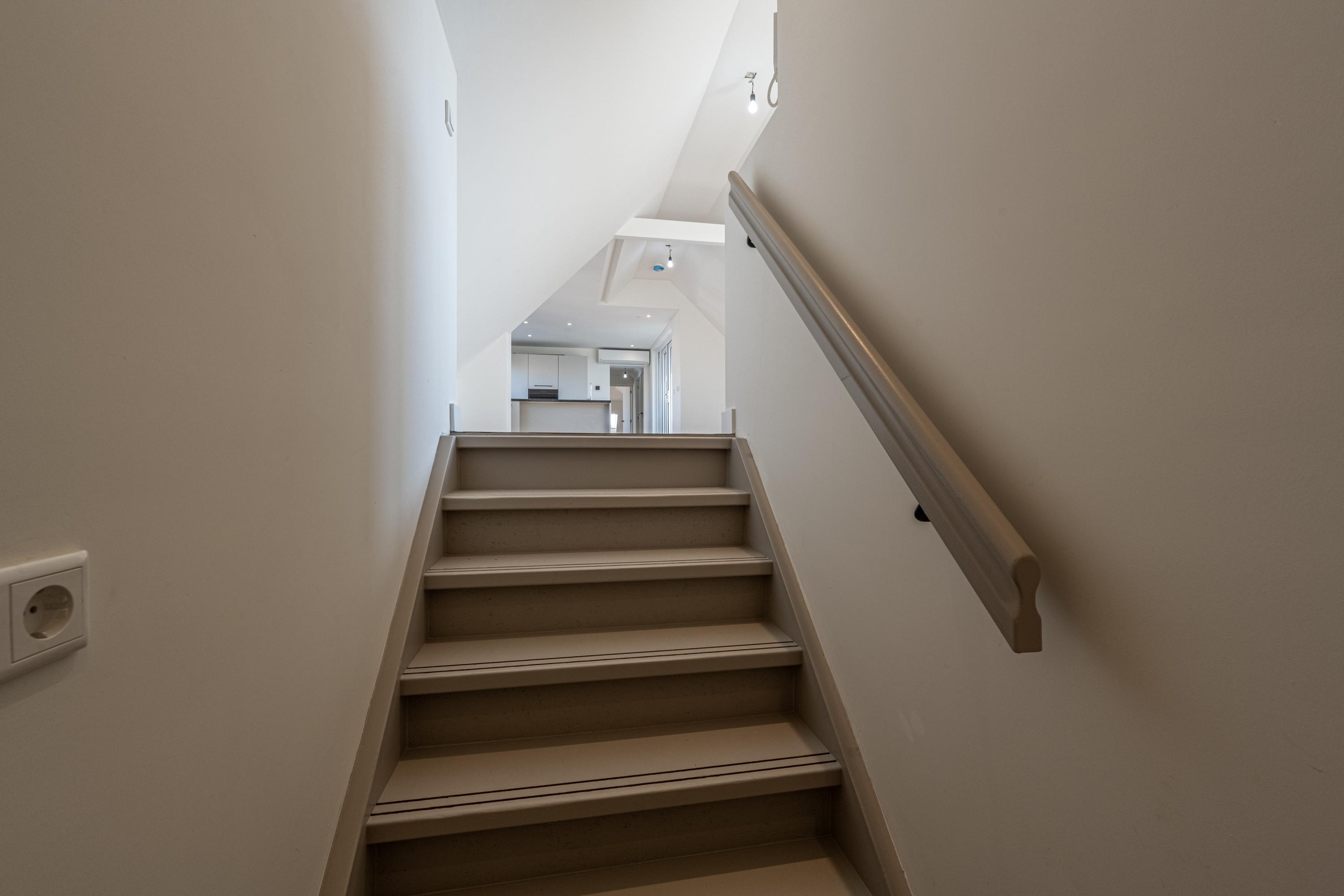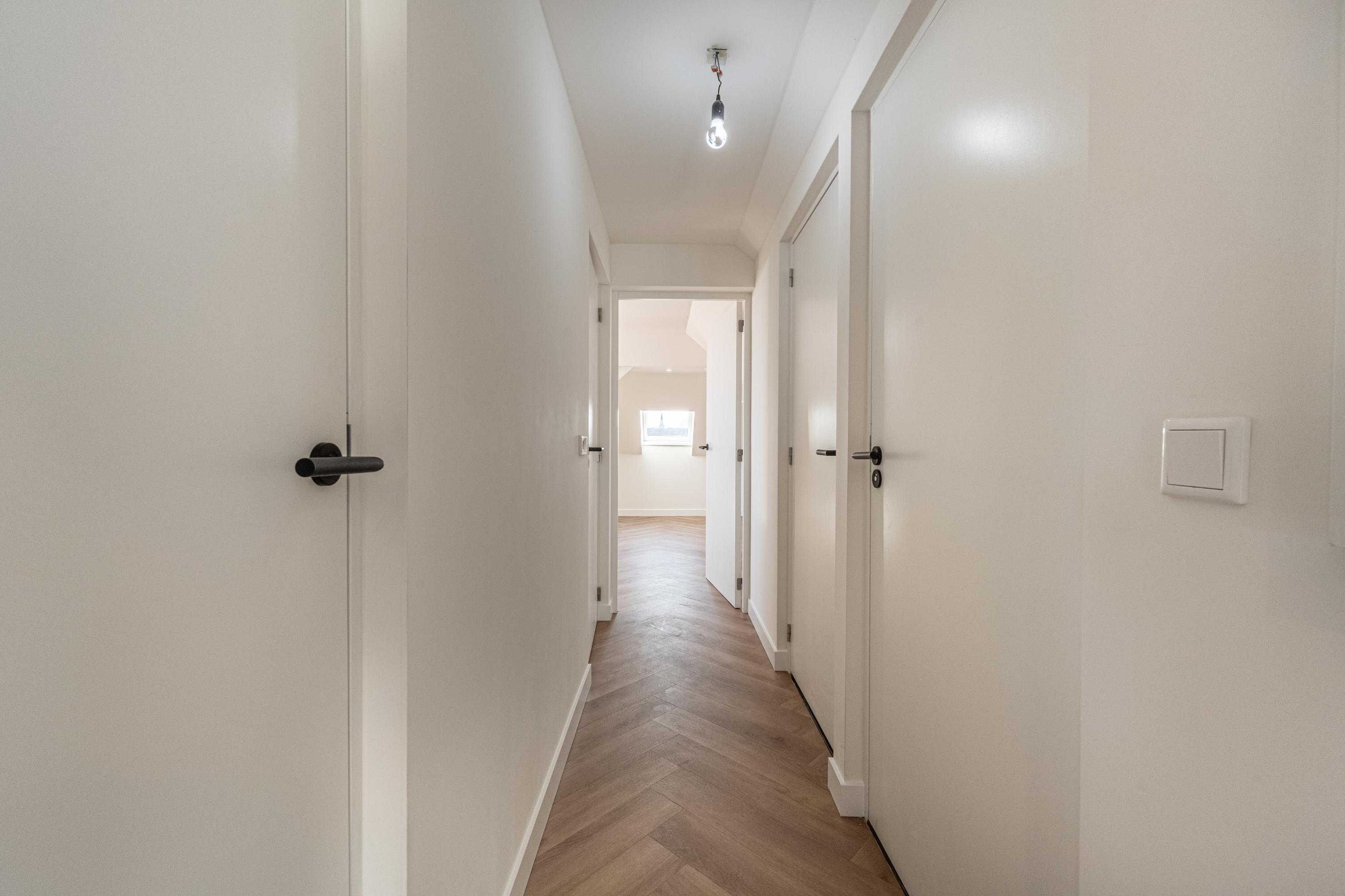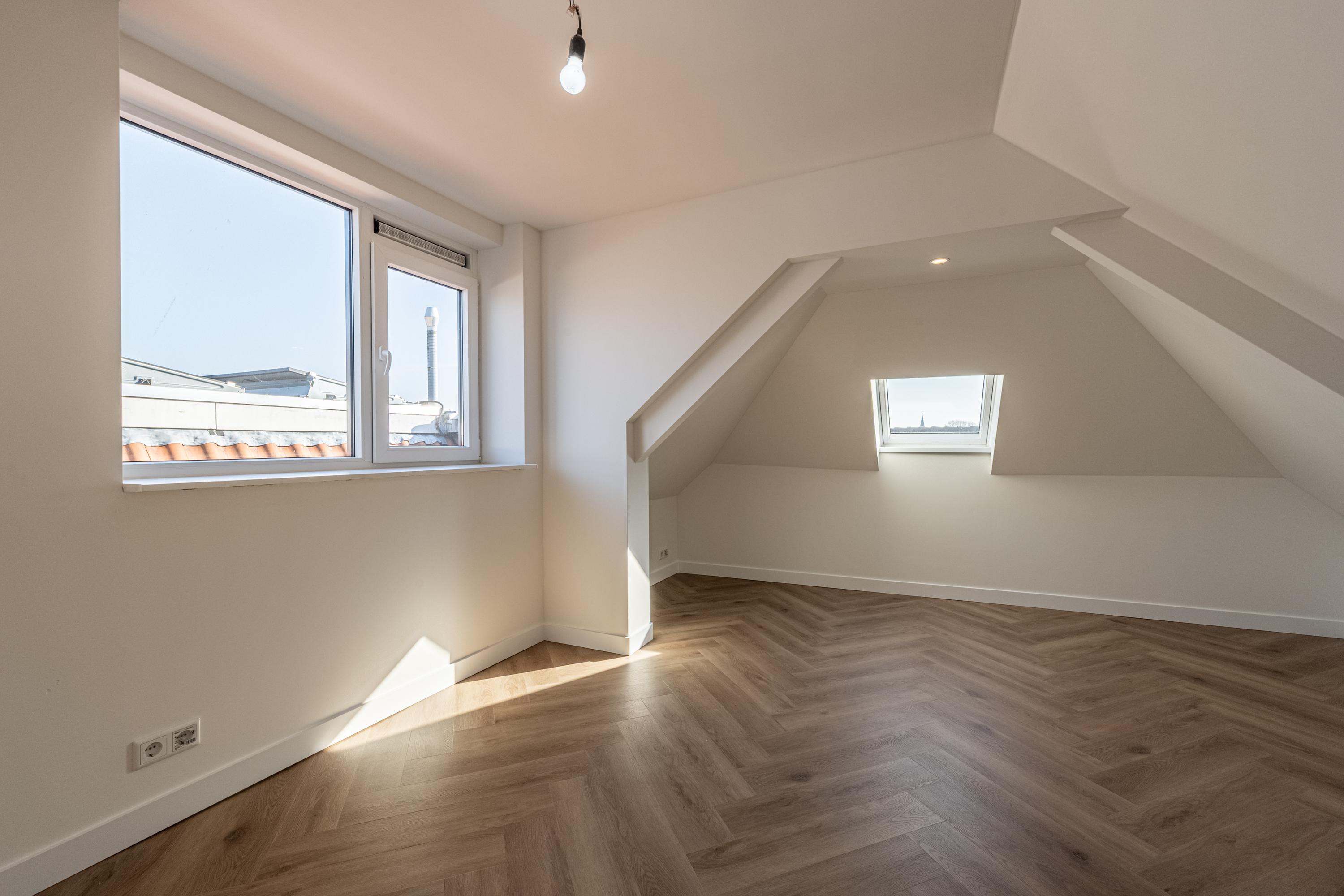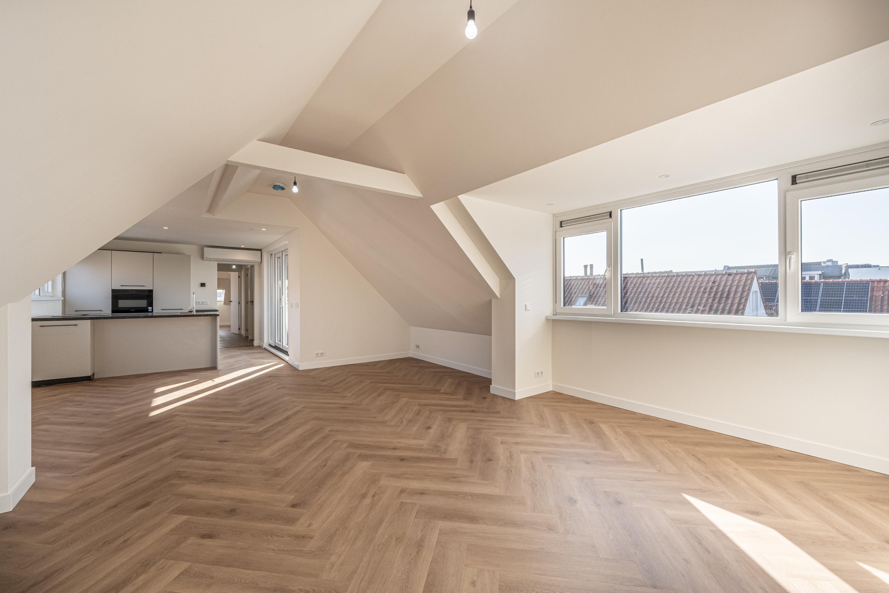 De woonkamer en keuken vormen samen een open en samenhangende ruimte. De afwerking kenmerkt zich door strak gestucte wanden en plafonds, inbouwspots en een in visgraat gelegde PVC-vloer met hoge plinten die in vrijwel de gehele woning is doorgelegd. Meerdere dakkapellen zorgen voor extra ruimte en daglicht.
