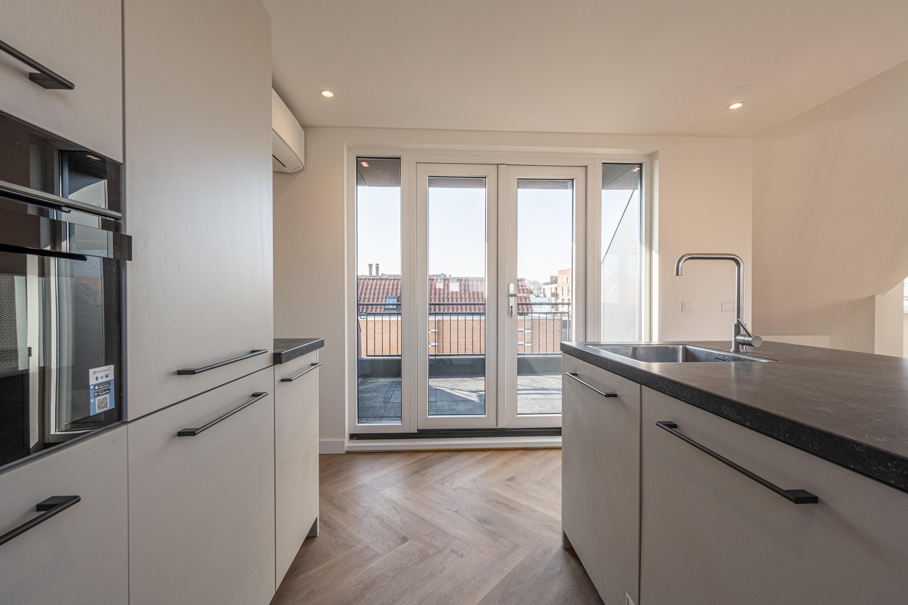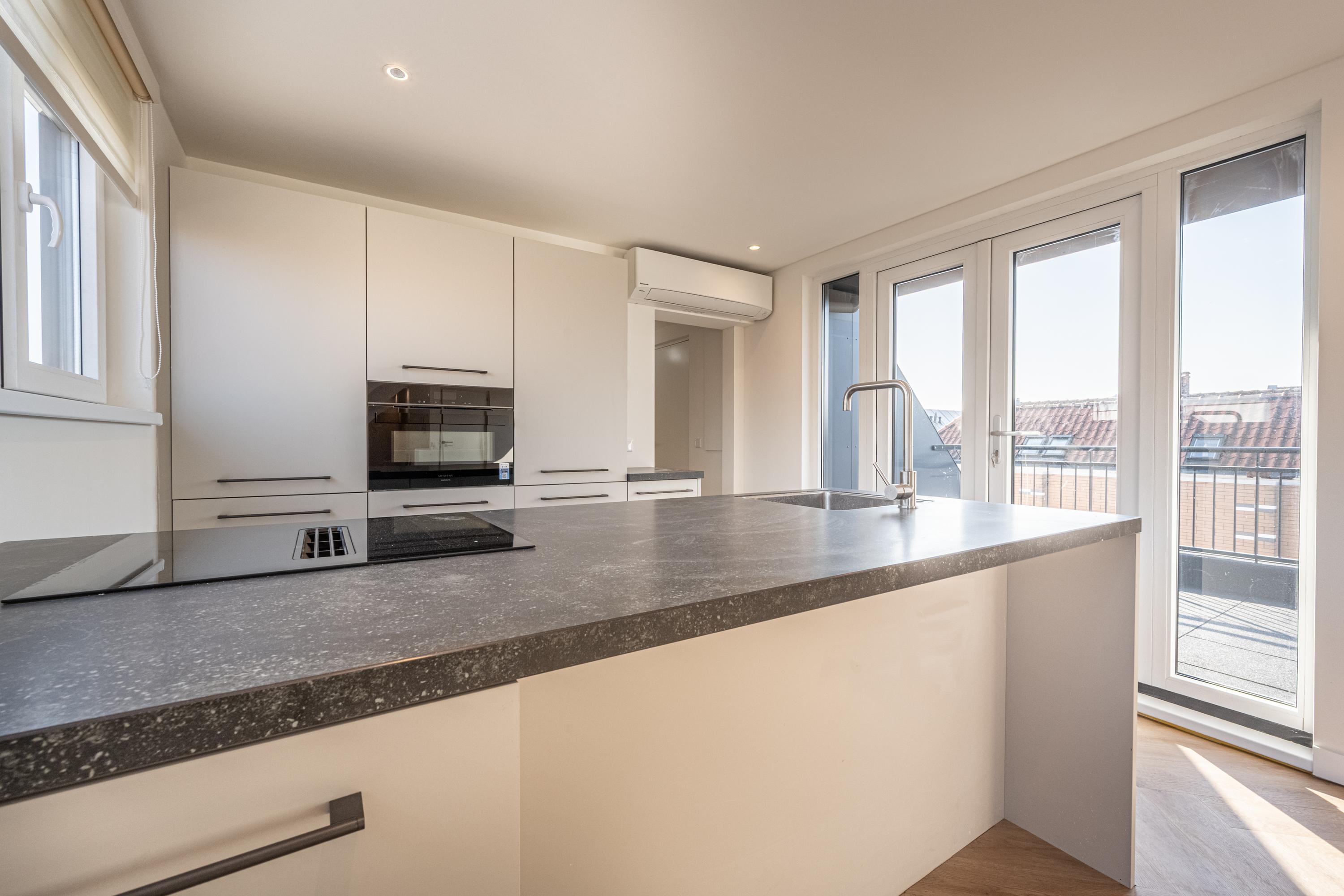 De keuken is uitgevoerd met een kookeiland met granieten werkblad en voorzien van een spoelbak en Siemens inbouwapparatuur, waaronder een vaatwasser, koel-/vriescombinatie en combioven. De inductiekookplaat met geïntegreerd afzuigsysteem maakt het geheel compleet.