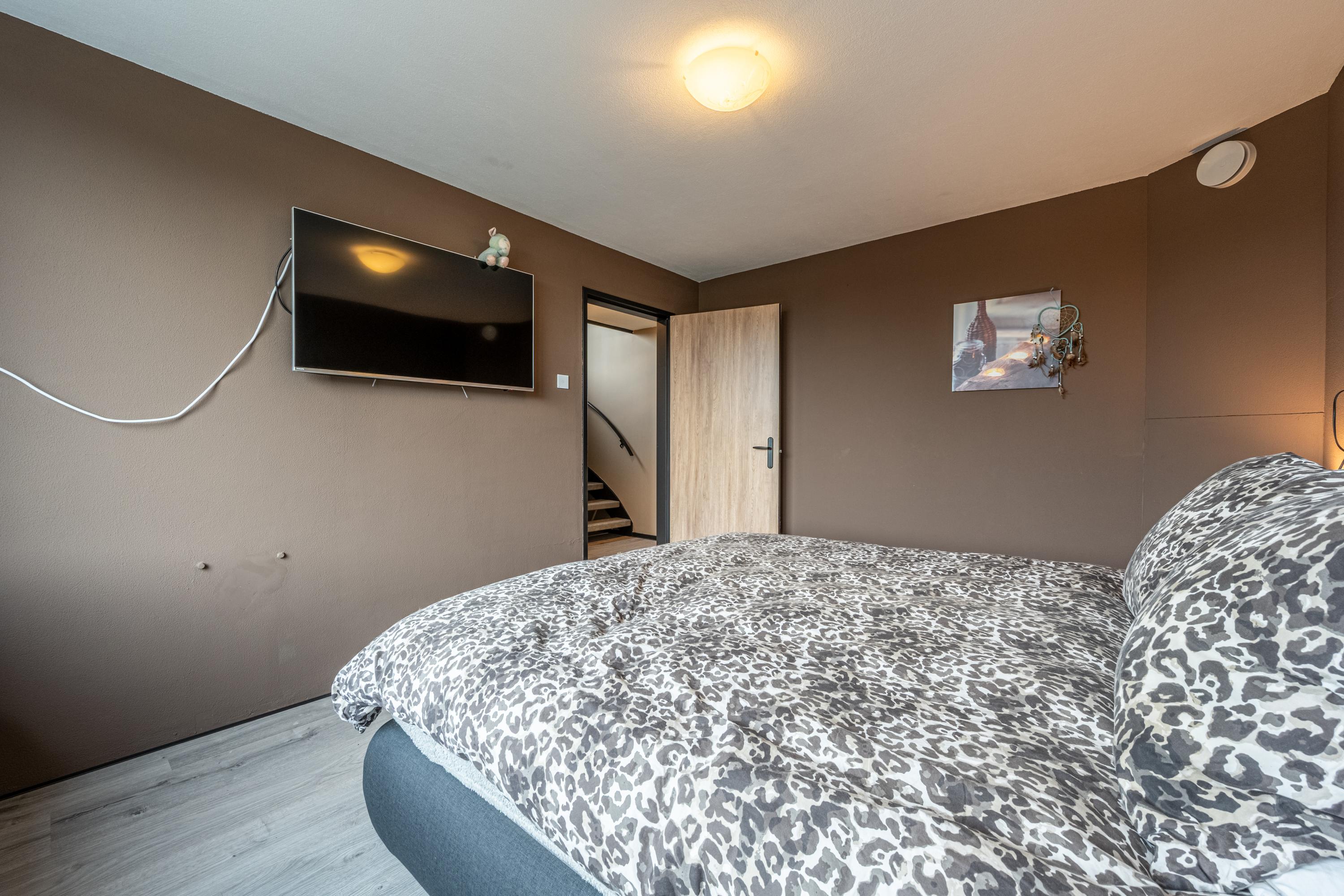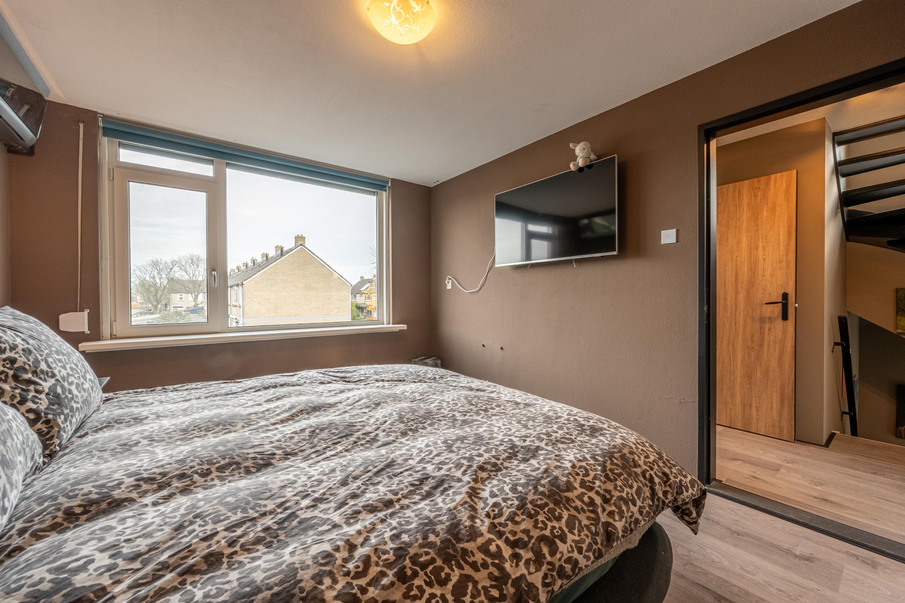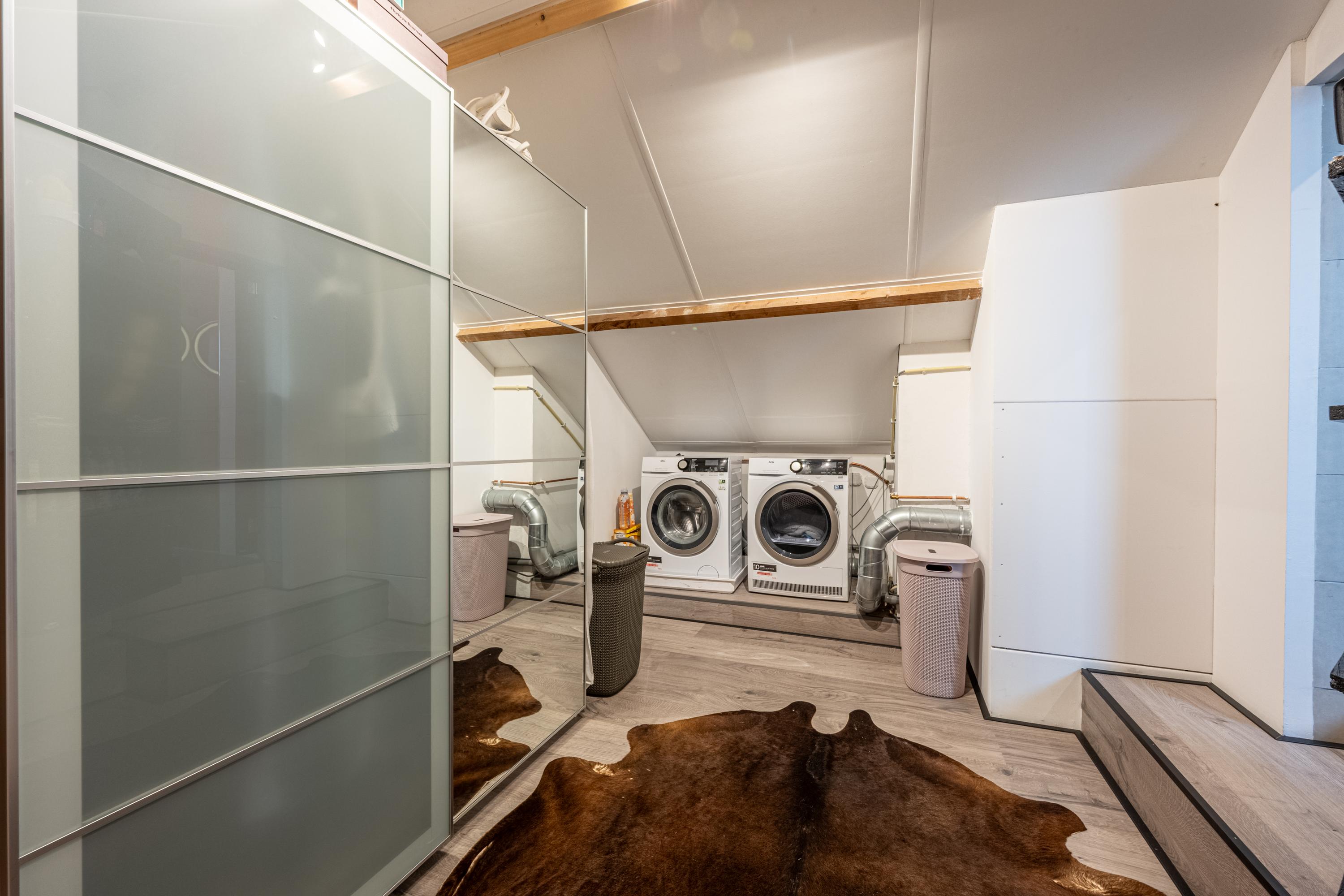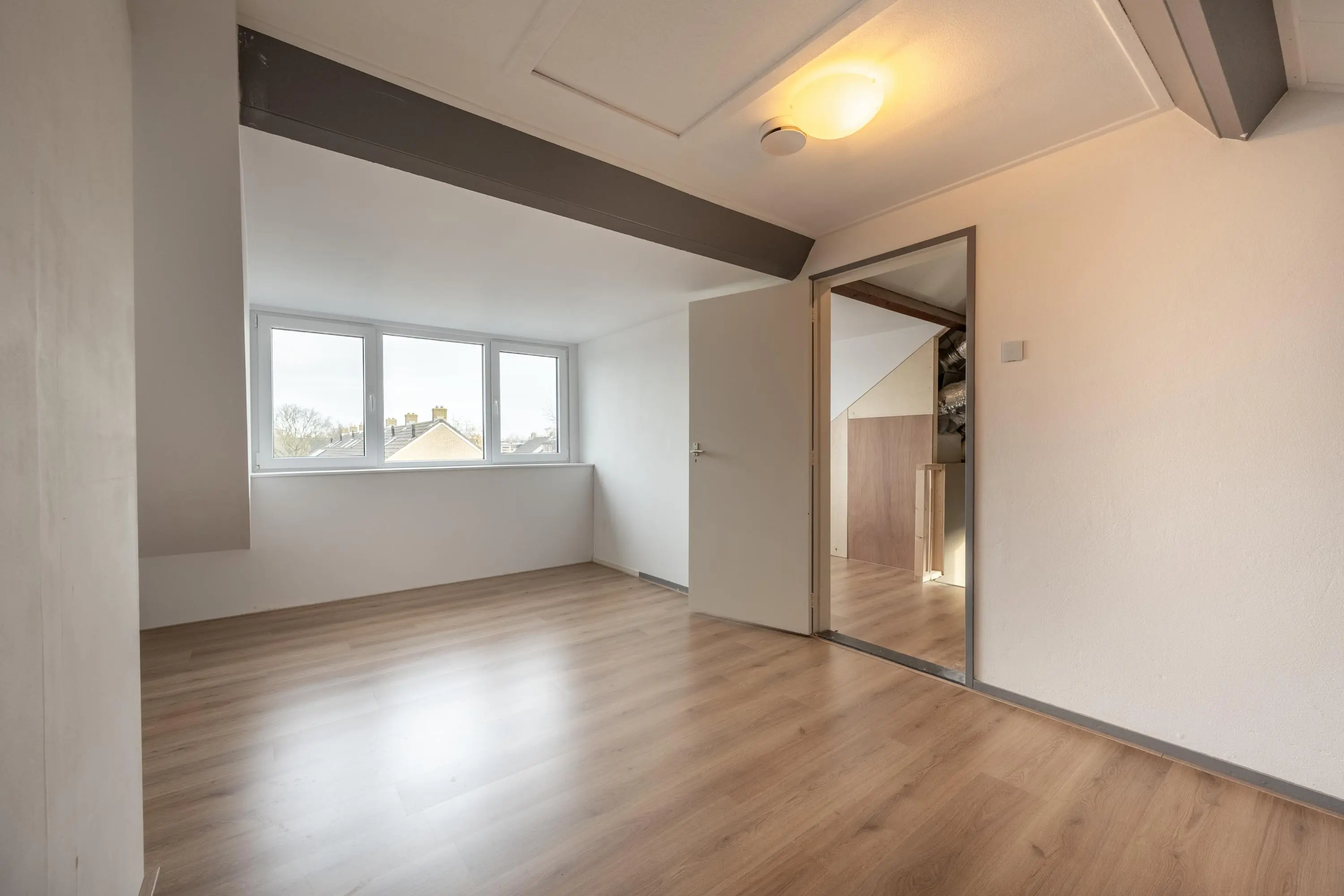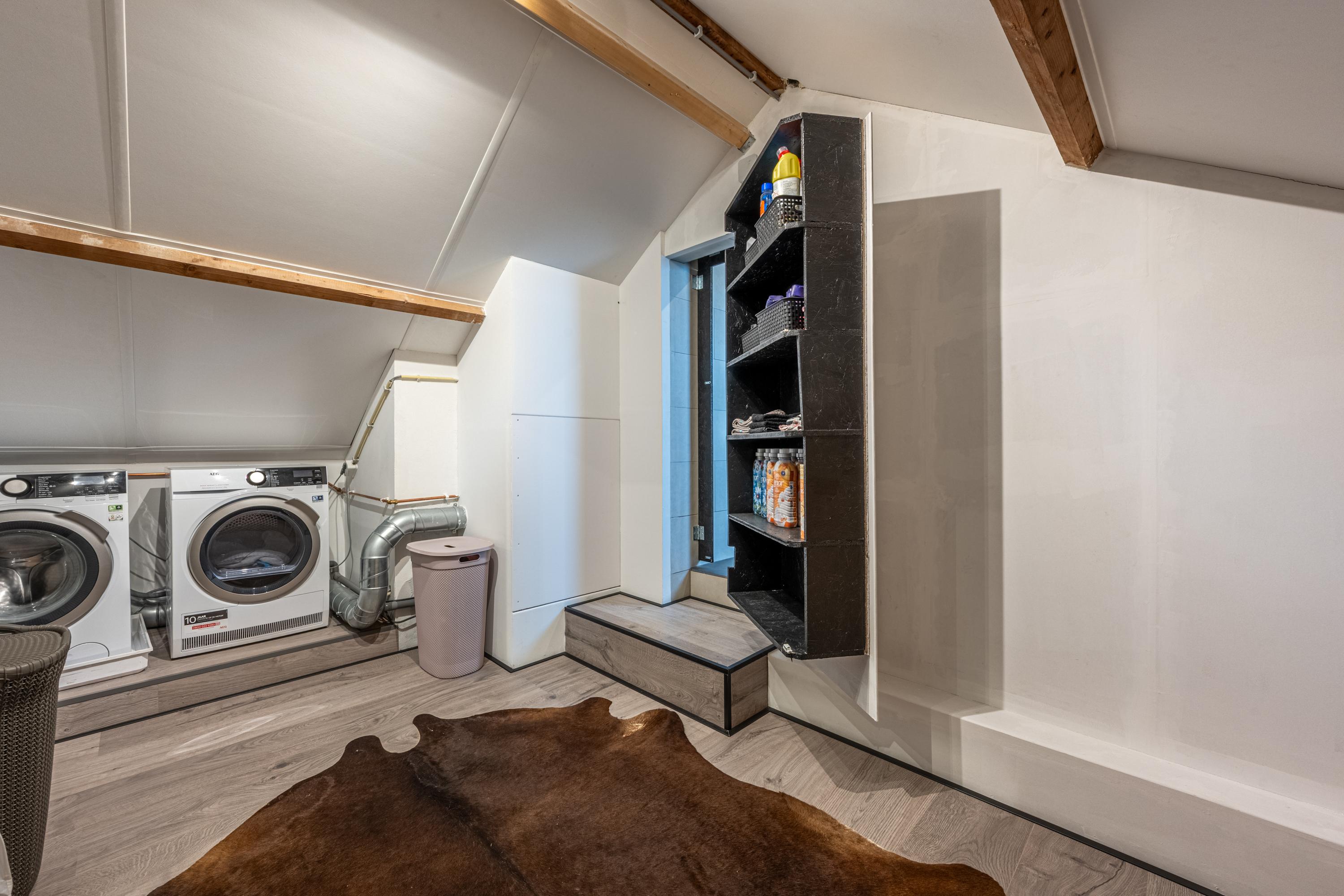 Dankzij de brede kunststof dakkapel is deze verdieping ruim en licht. Hier vind je een voorzolder met WTW-unit en bergruimte achter knieschotten, en een royale (slaap)kamer met toegang tot de bergzolder en extra bergruimte achter schuifdeuren.