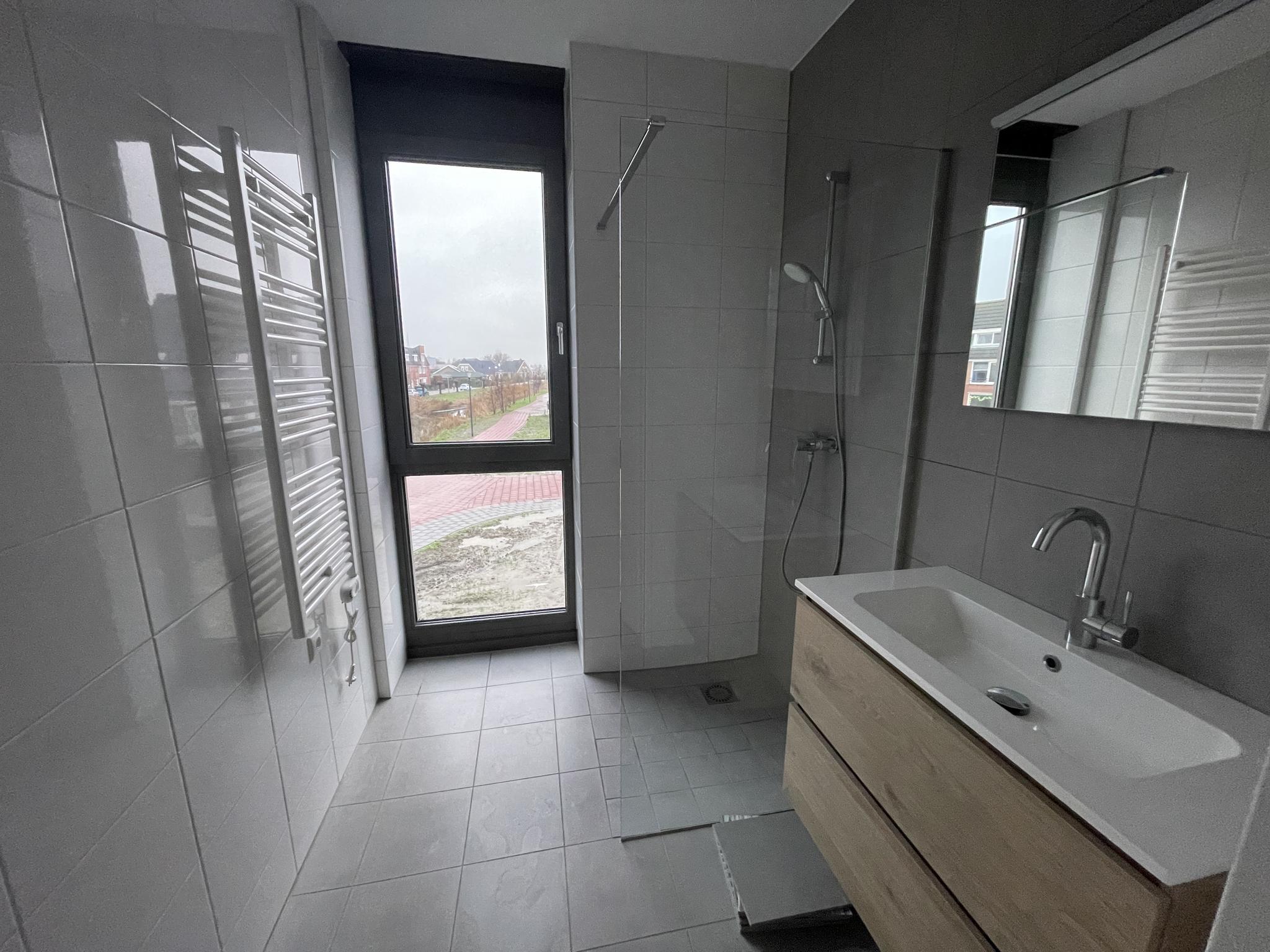 De badkamer is volledig betegeld en voorzien van een inloopdouche, een wastafelmeubel, een designradiator en mechanische ventilatie.