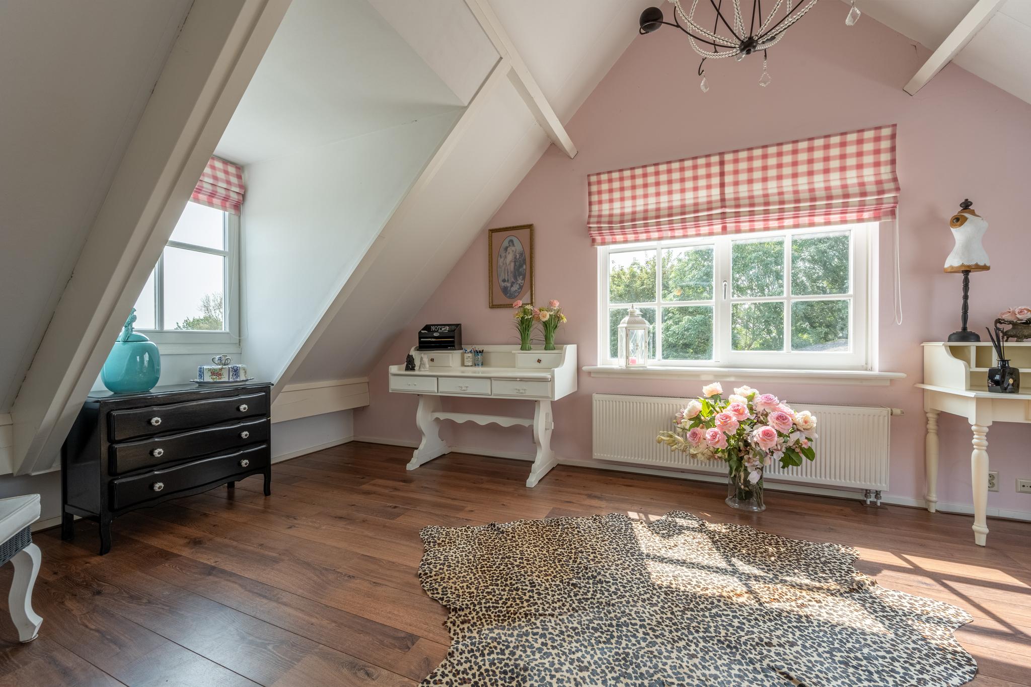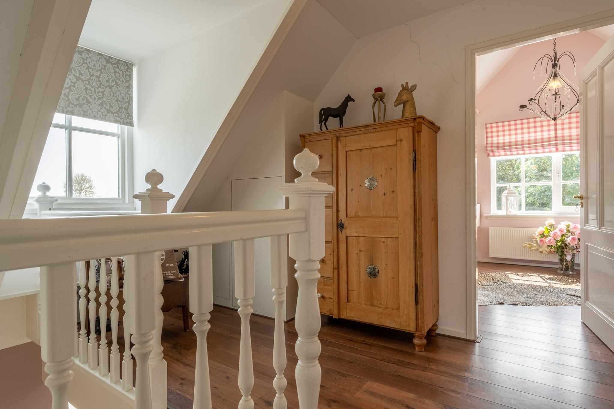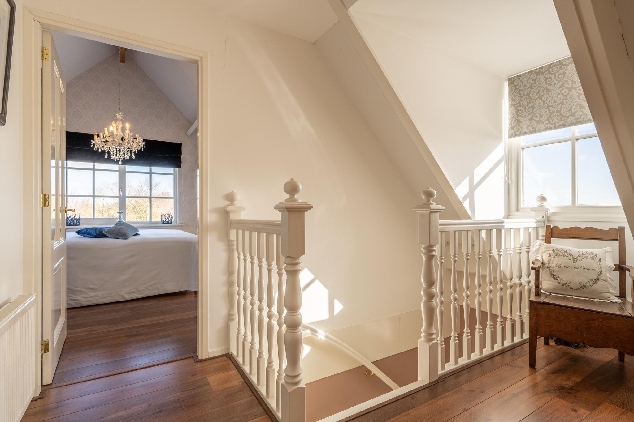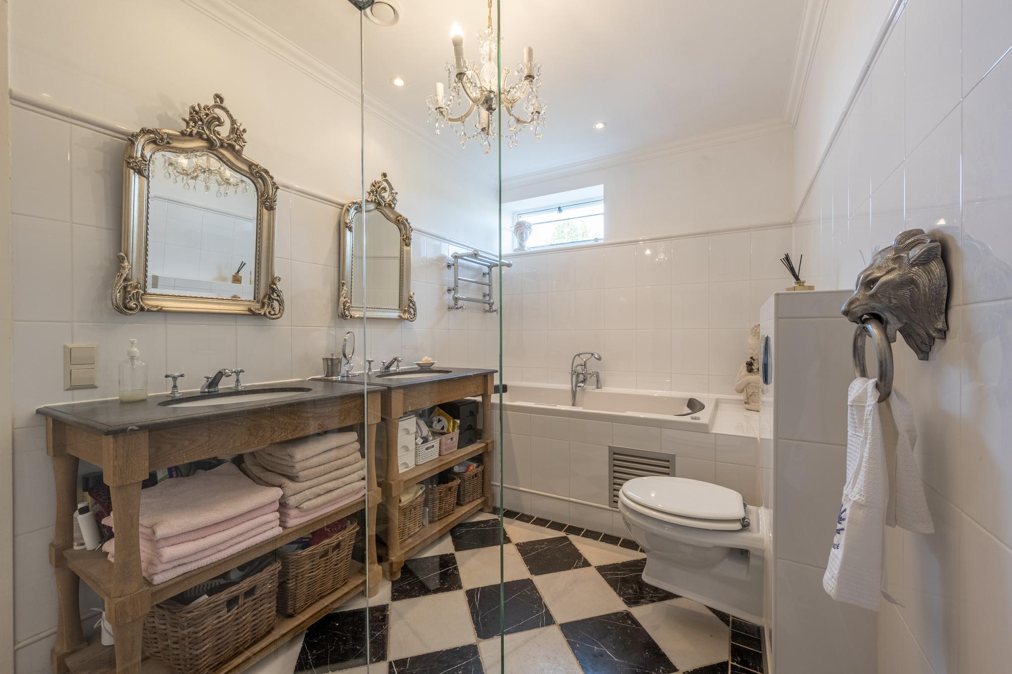 De overloop geeft toegang tot twee ruime slaapkamers, beide gekenmerkt door hoge plafonds en charmante dakkapellen. De royale badkamer is voorzien van twee wastafels, een ruime douchecabine en een tweede toilet, waardoor comfort en functionaliteit perfect samenkomen.