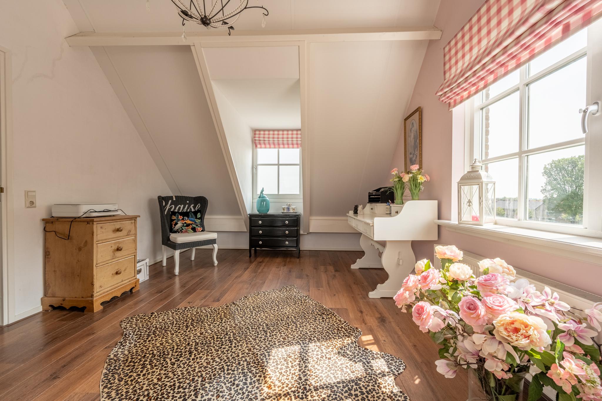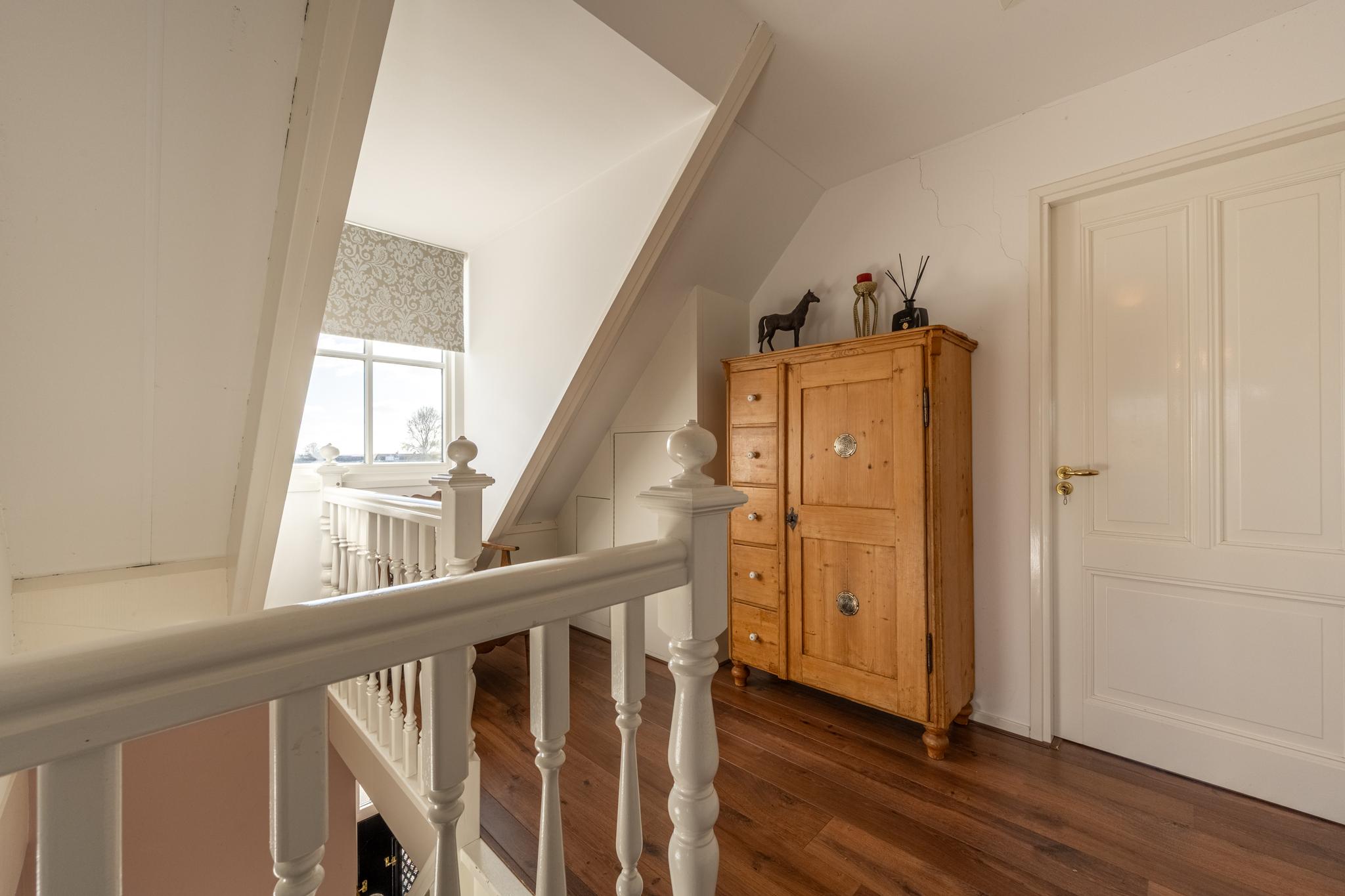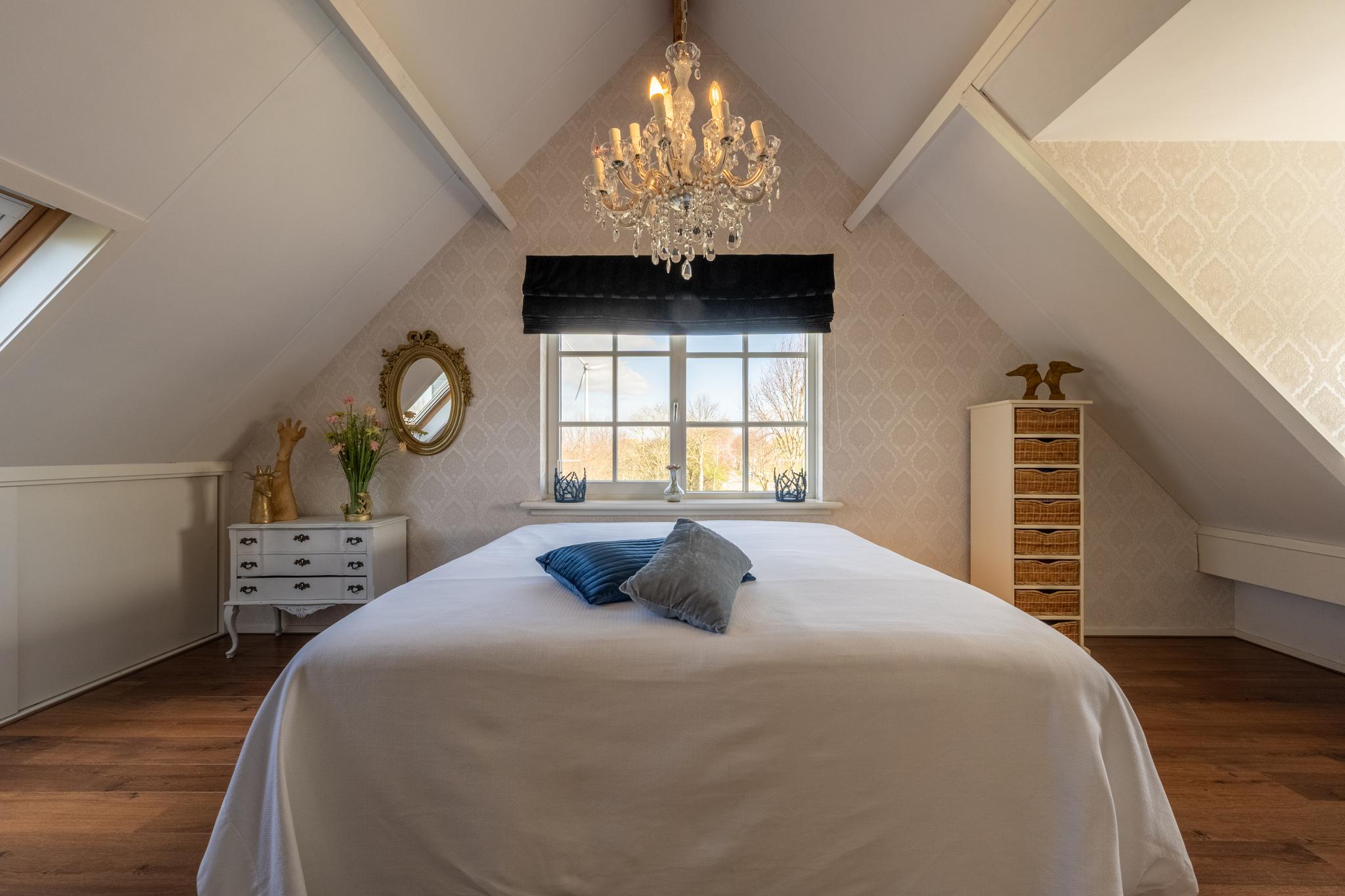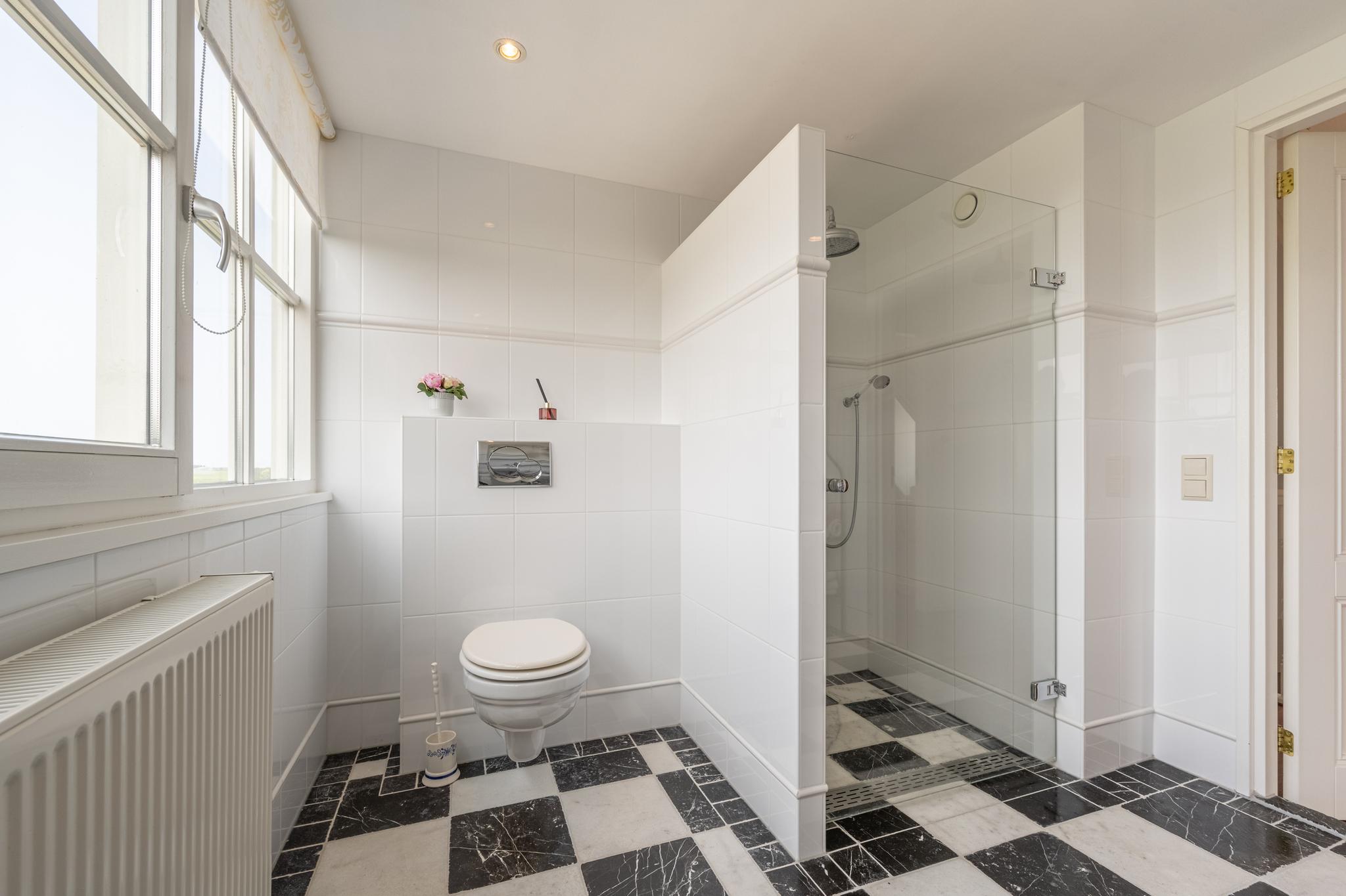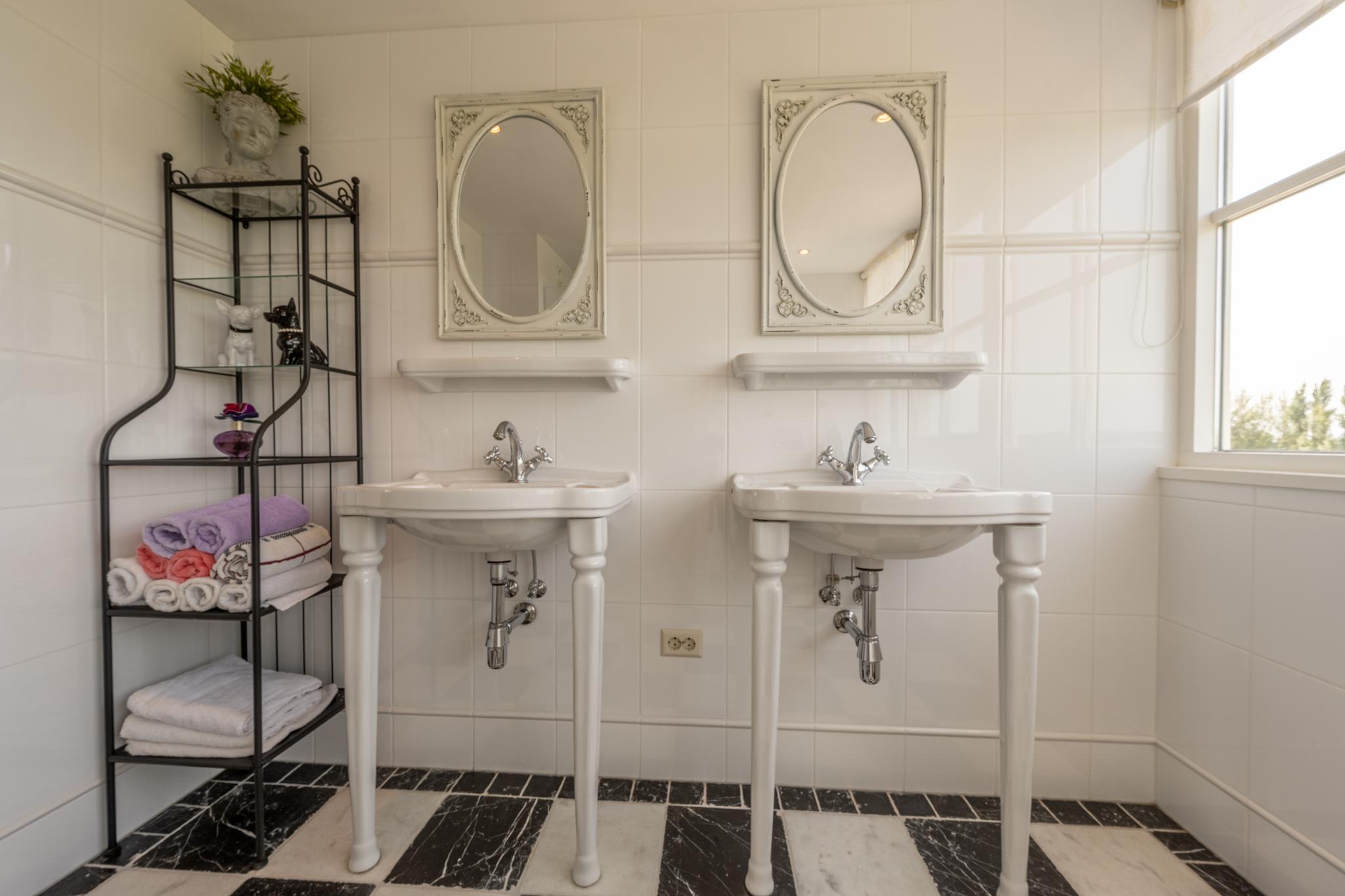 De overloop geeft toegang tot twee ruime slaapkamers, beide gekenmerkt door hoge plafonds en charmante dakkapellen. De royale badkamer is voorzien van twee wastafels, een ruime douchecabine en een tweede toilet, waardoor comfort en functionaliteit perfect samenkomen.