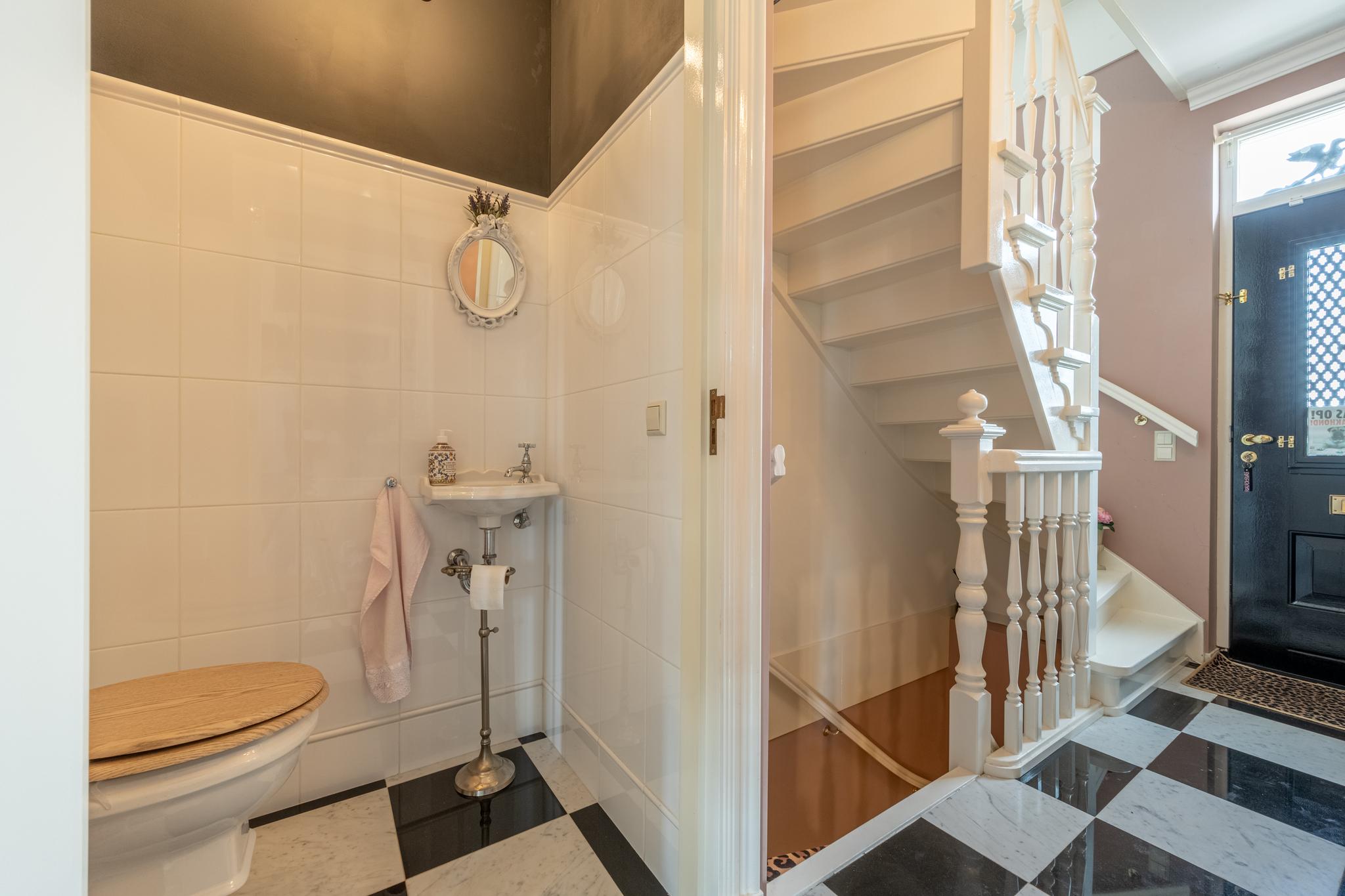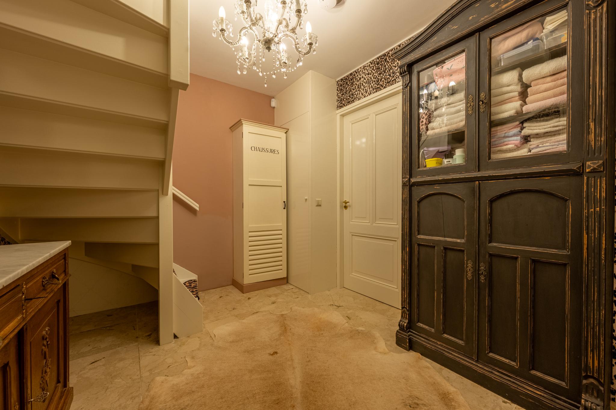 Bij binnenkomst wordt u verwelkomd in een royale hal, voorzien van een meterkast, een trapopgang naar de eerste verdieping, een trap naar het onderhuis en een moderne toiletruimte met een zwevend toilet en fonteintje.