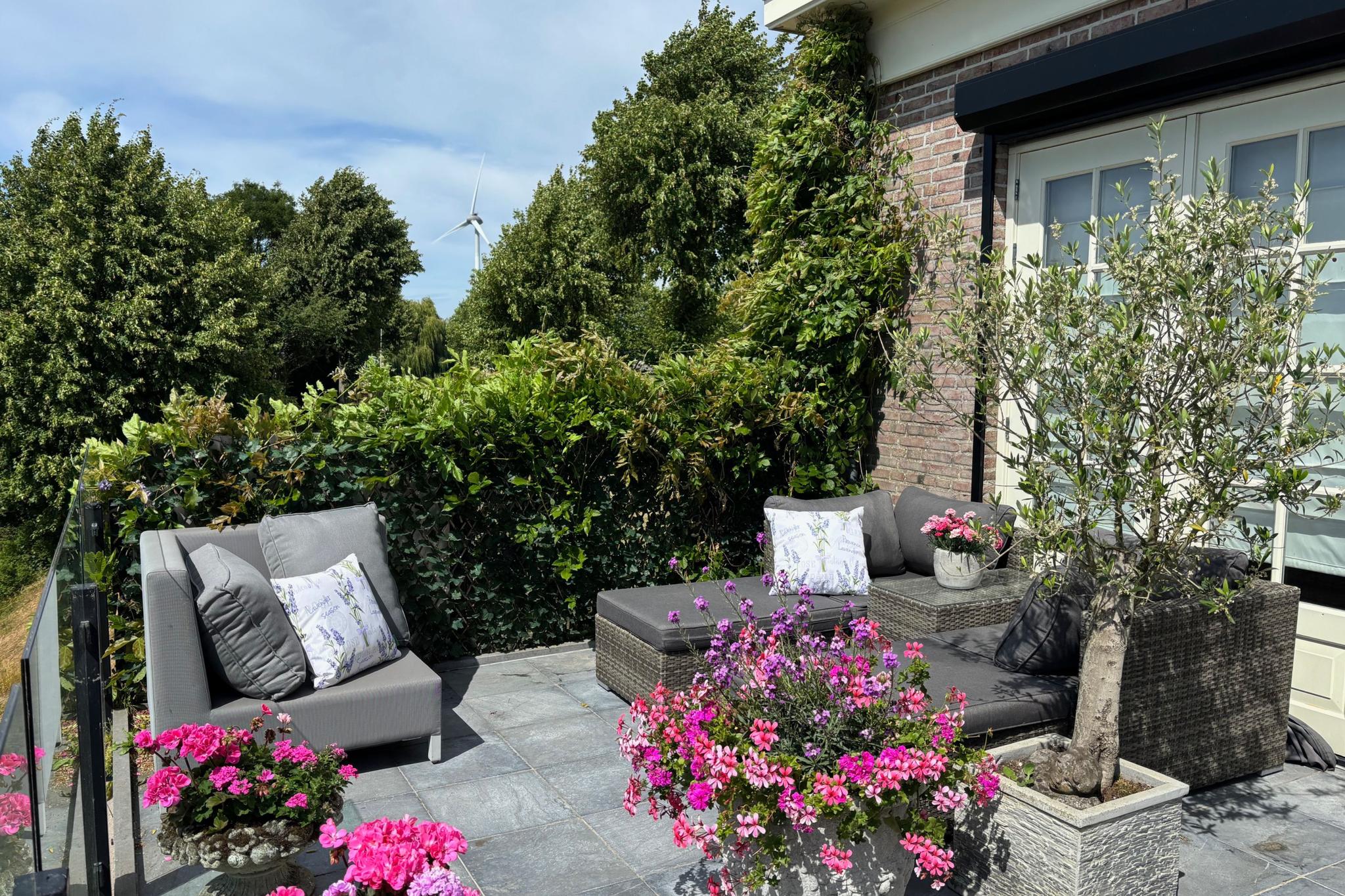 Achter de woning bevindt zich een indrukwekkend gevelbreed terras van maar liefst 41 m². Hier geniet u dagelijks van een adembenemend uitzicht. Of het nu gaat om een ontspannen ontbijt, een sfeervolle borrel bij zonsondergang of een zomeravond met vrienden – dit terras biedt een unieke beleving.