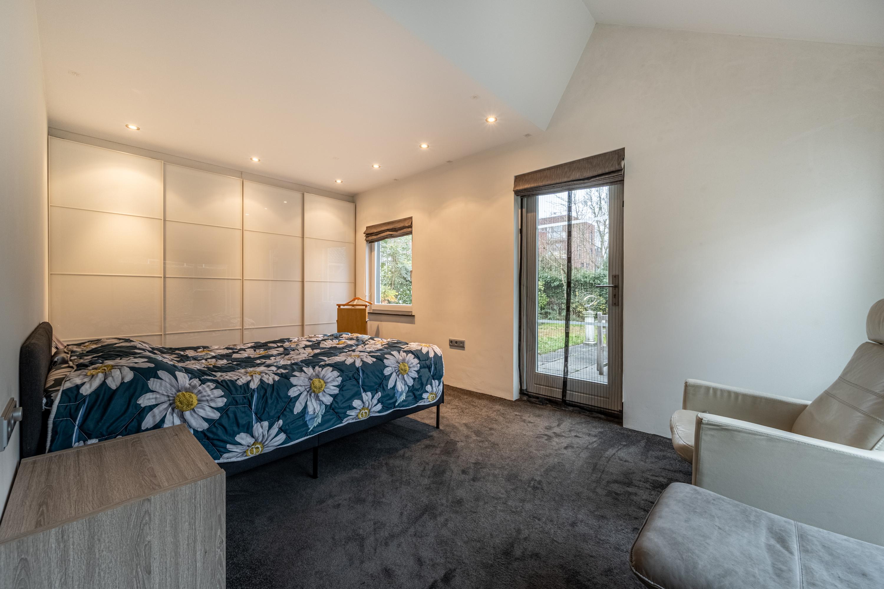 Aan de achterzijde van de woning bevindt zich de ruime en lichte slaapkamer met inbouwkast en vloerbedekking. Via deze kamer heeft u direct toegang tot de tuin.