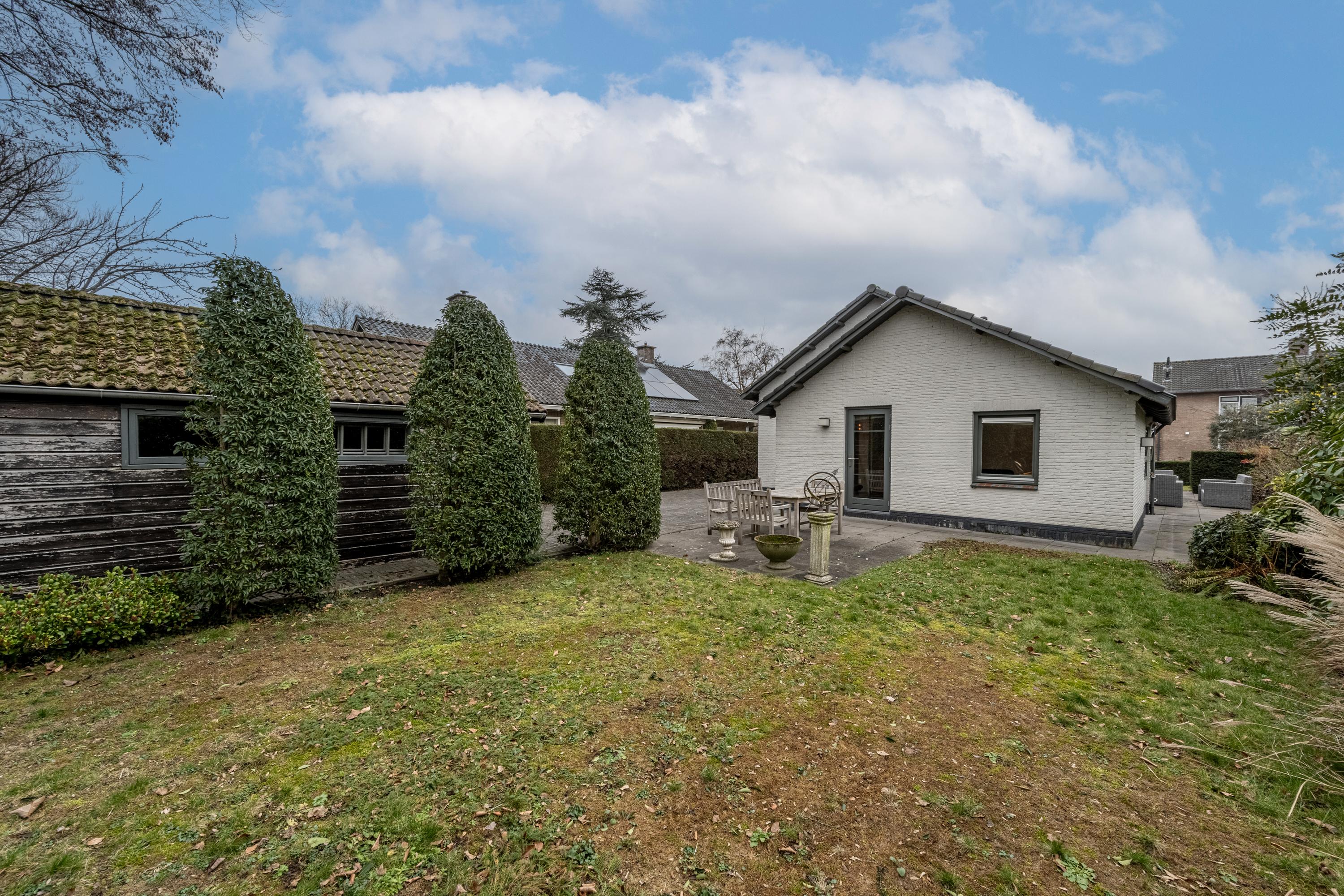 De achtertuin is verzorgd en groen aangelegd met een combinatie van sierbestrating en gazon. Direct grenzend aan de keuken is een comfortabel zitgedeelte gecreëerd, voorzien van een elektrisch zonnescherm. Daarnaast is er een tweede terras, ideaal voor het plaatsen van een eettafel en het genieten van lange zomeravonden. Dankzij de indeling en beplanting biedt de tuin veel privacy en diverse plekken om zowel van zon als schaduw te genieten.