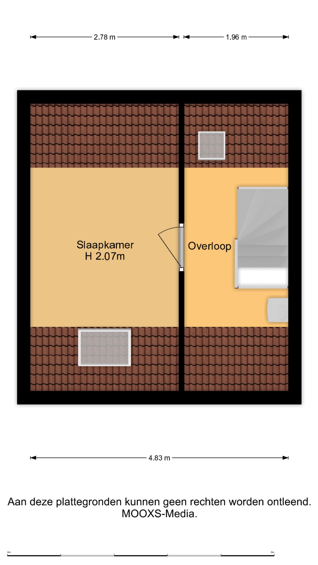 De slaapkamer is voorzien van 2 Velux dakramen en een vaste kastenwand.