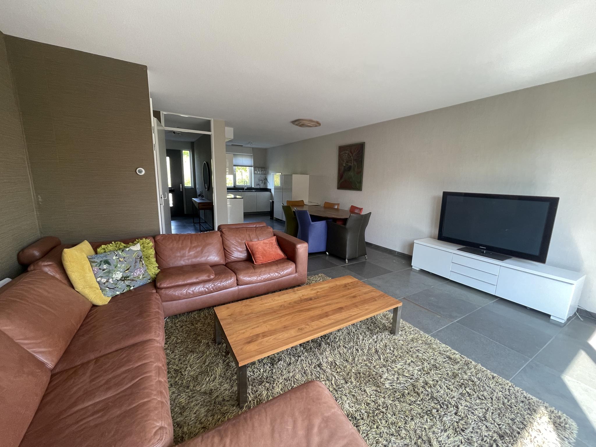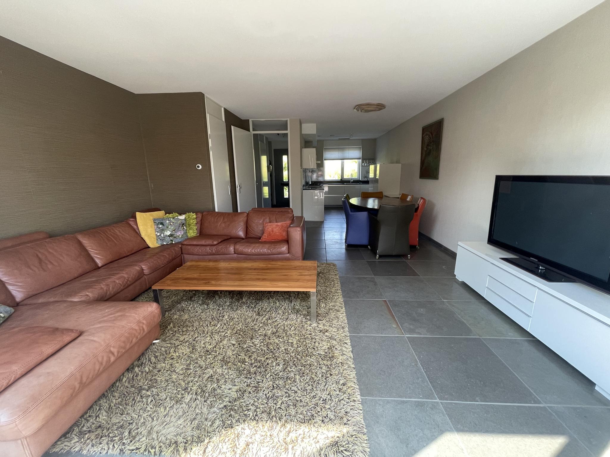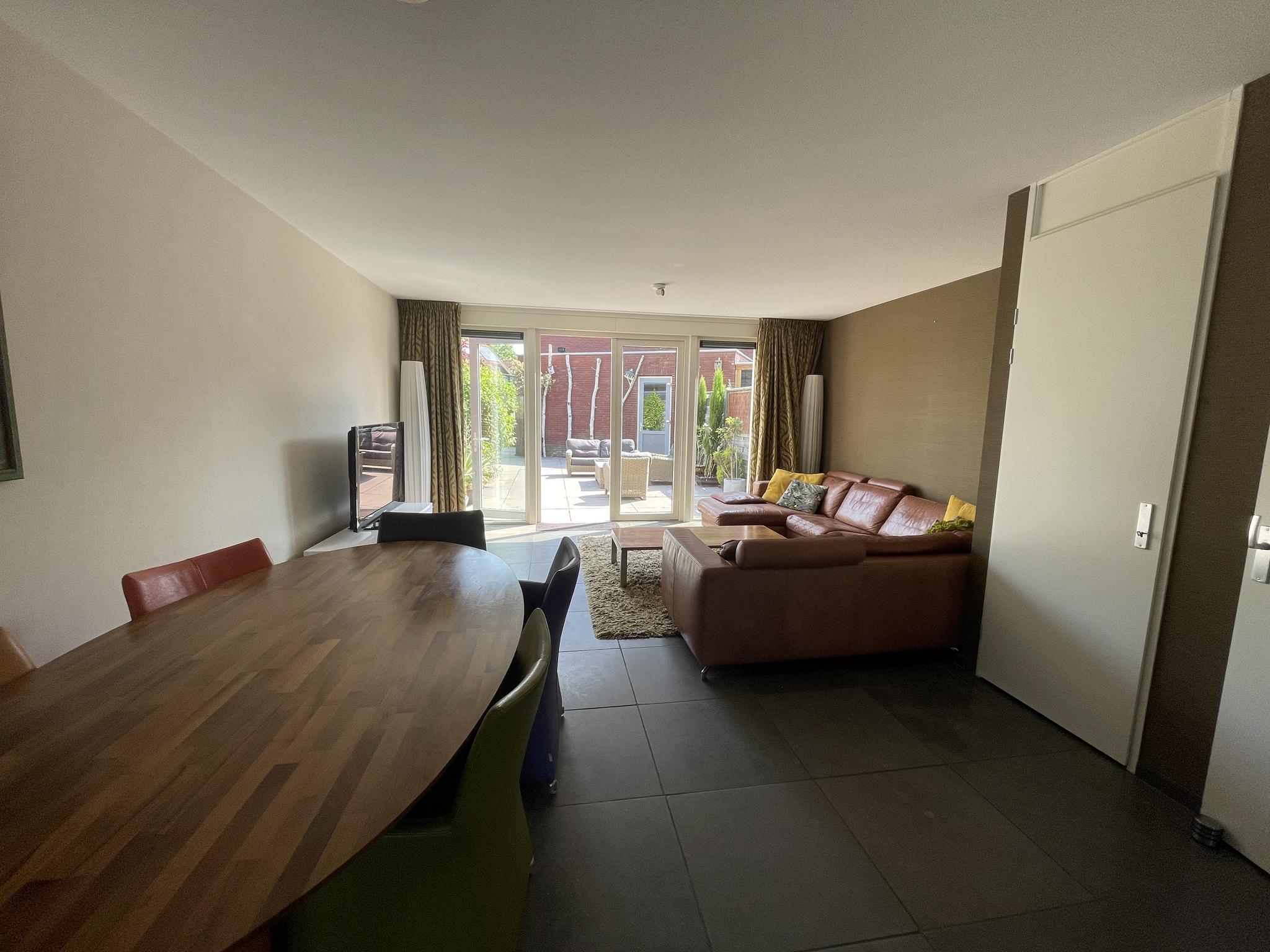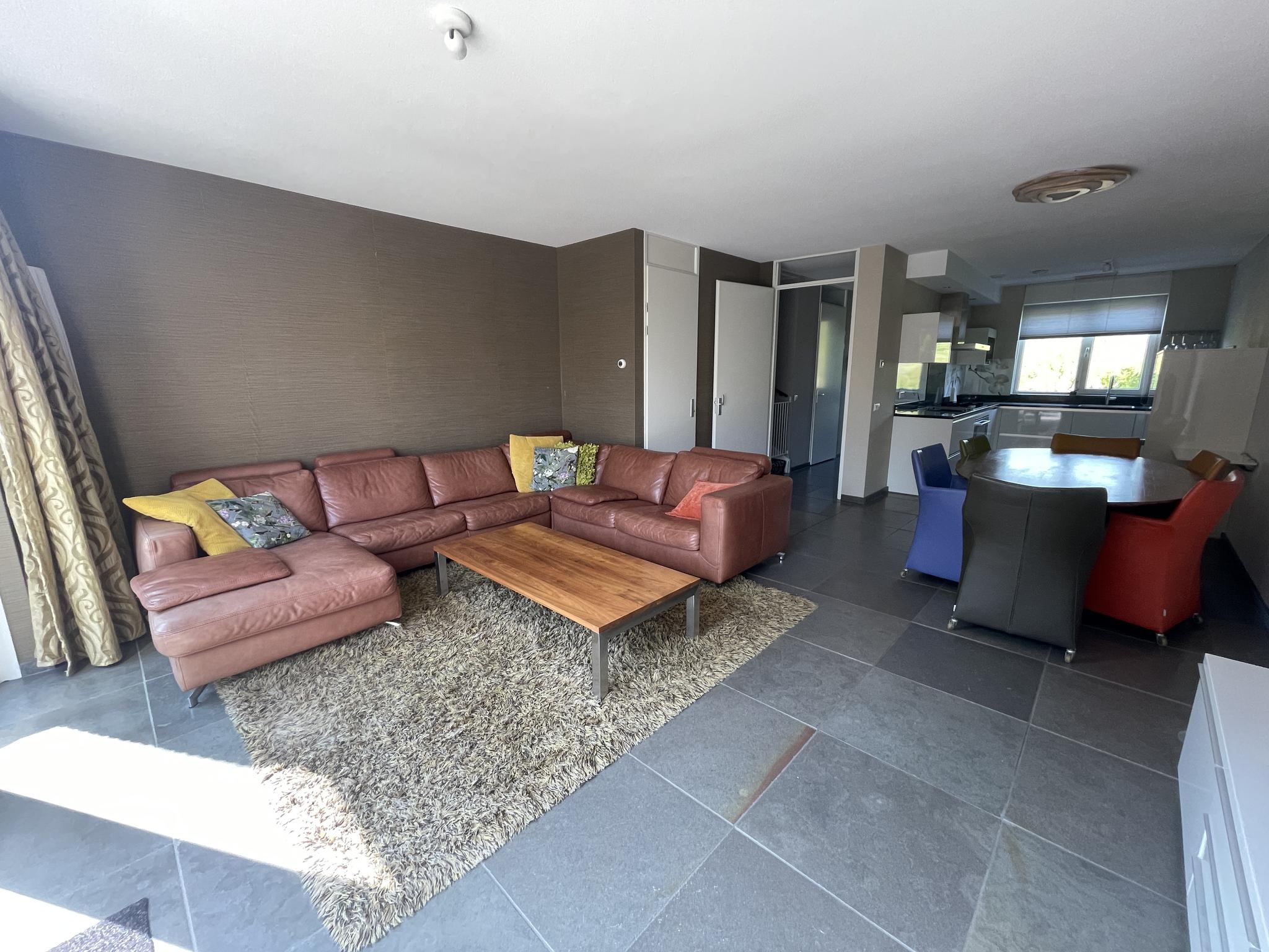 Vanuit de hal is de woonkamer met open keuken bereikbaar. De woonkamer beschikt over een handige trapkast en middels openslaande deuren is er toegang tot de prachtige achtertuin.