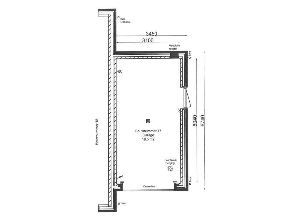 • Stenen garage met elektra en water