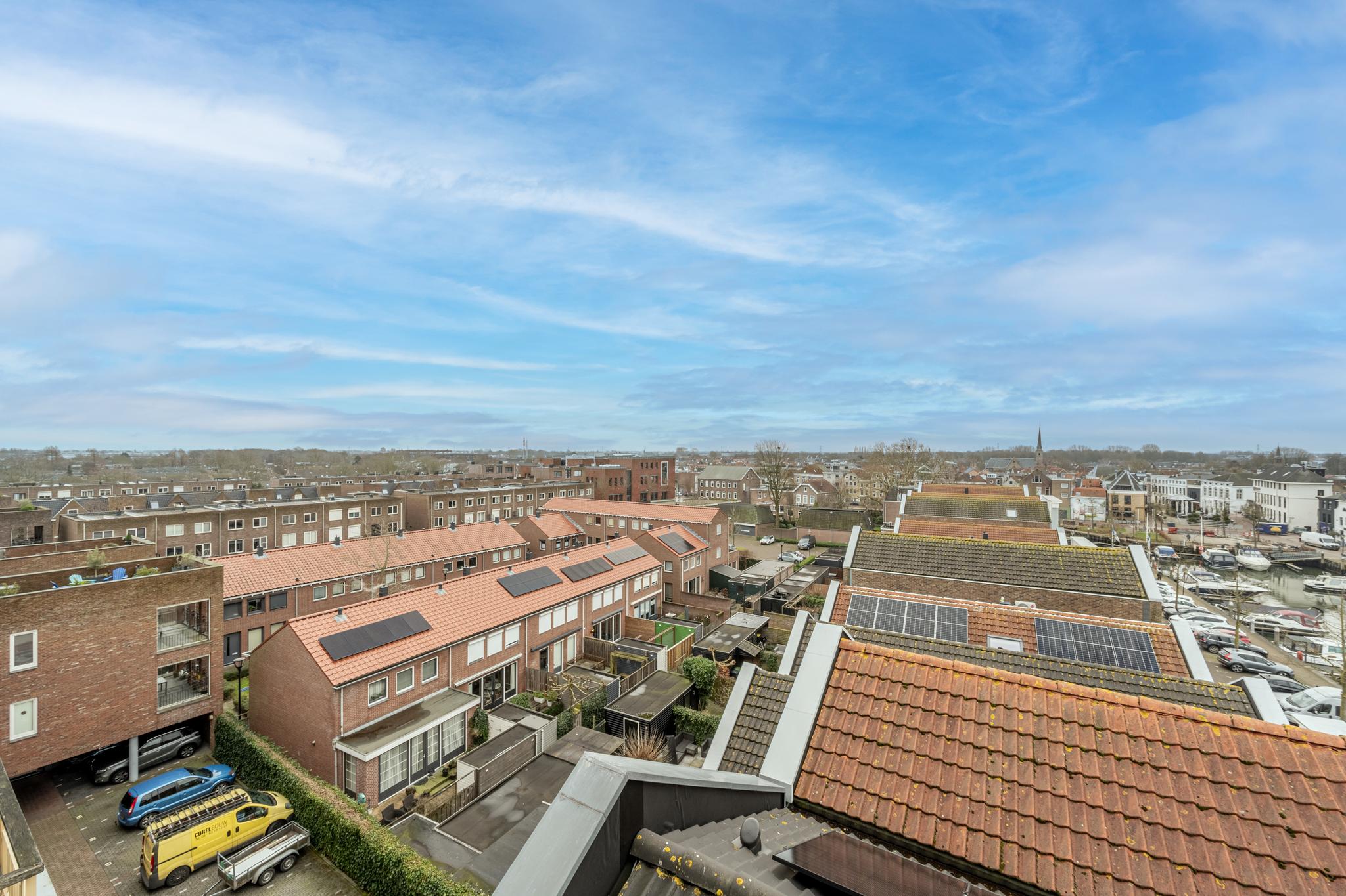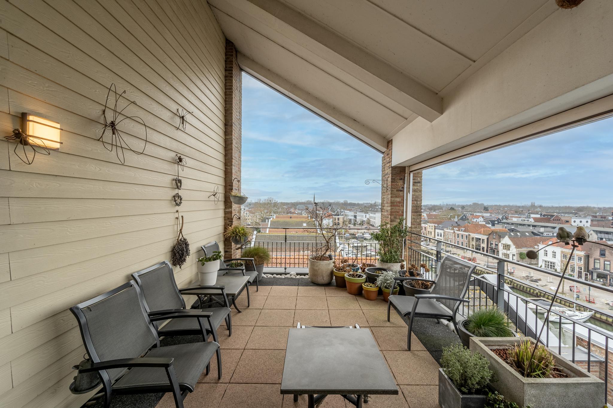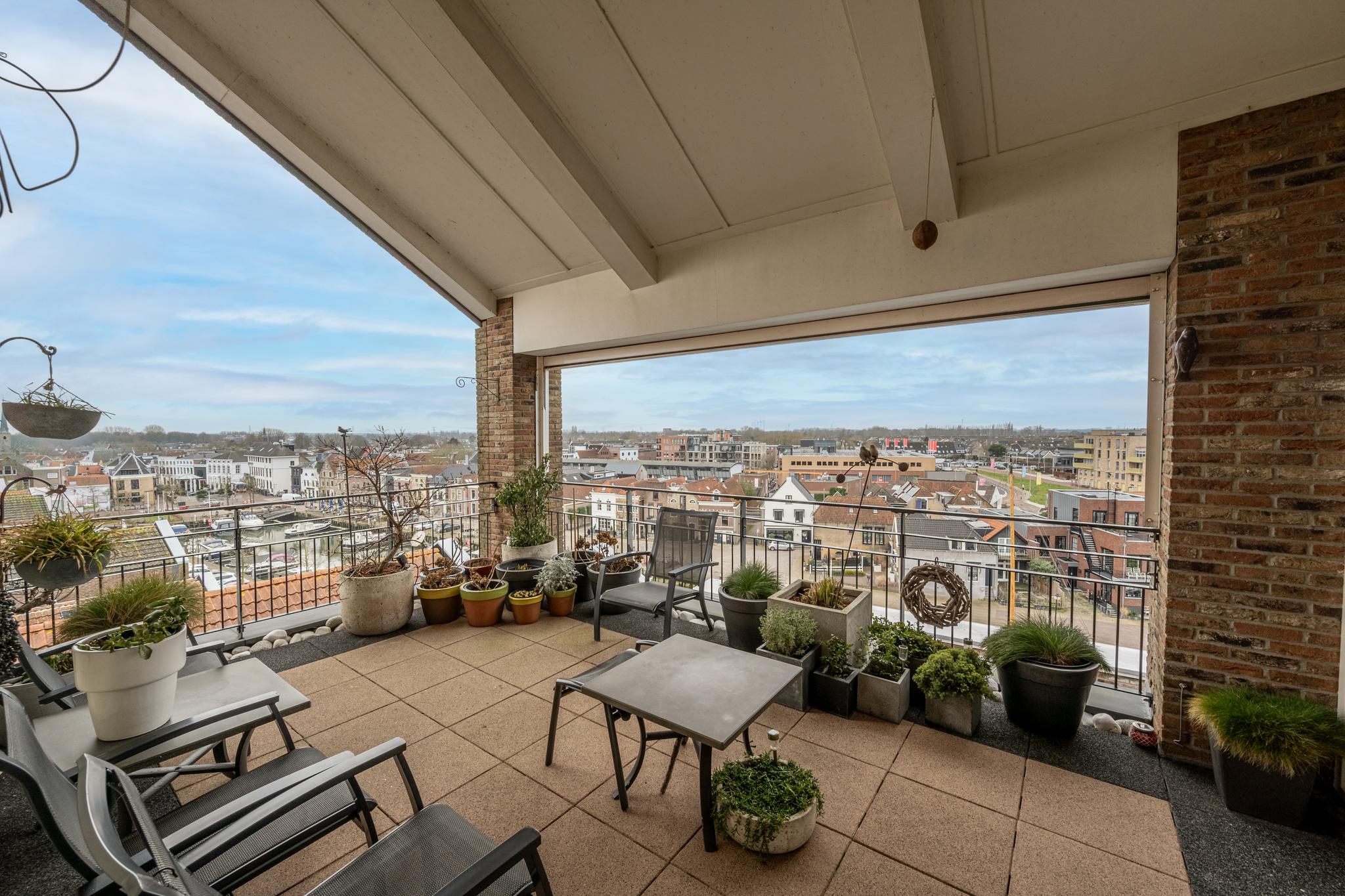 Op een mooie zomerdag loopt u zo door de dubbel openslaande deuren dit heerlijke dakterras op en geniet u van een panoramisch uitzicht over het dorpscentrum, hetzij in de zon of juist in de schaduw dankzij het handige zonnescherm. De zuidelijke georiënteerde ligging zorgt voor volop zon, comfort en ontspanning op ieder moment van de dag. De handige sunscreens en rolluiken rondom het appartement maken het geheel compleet.