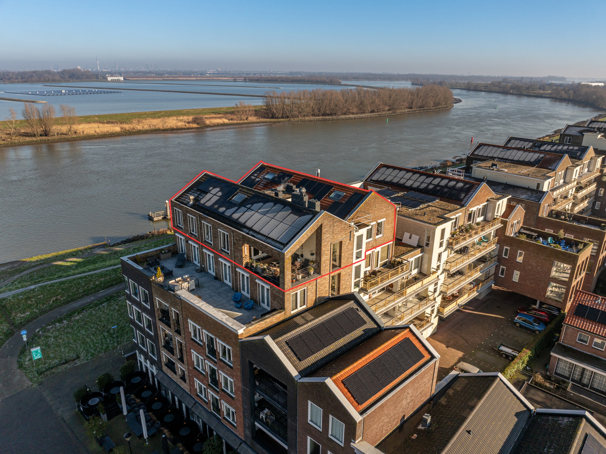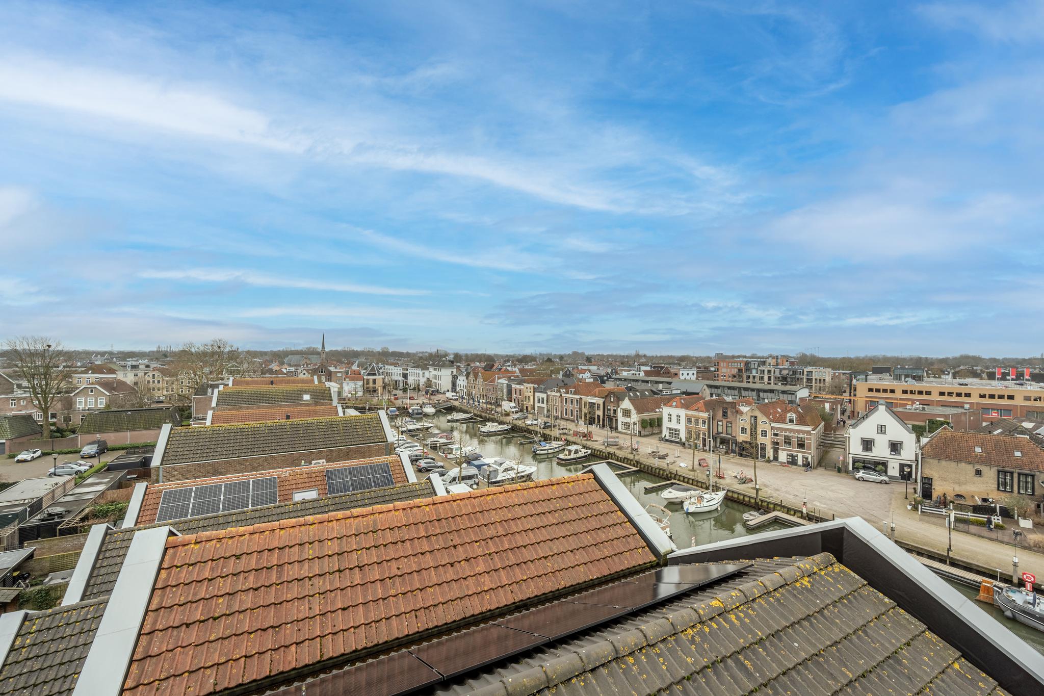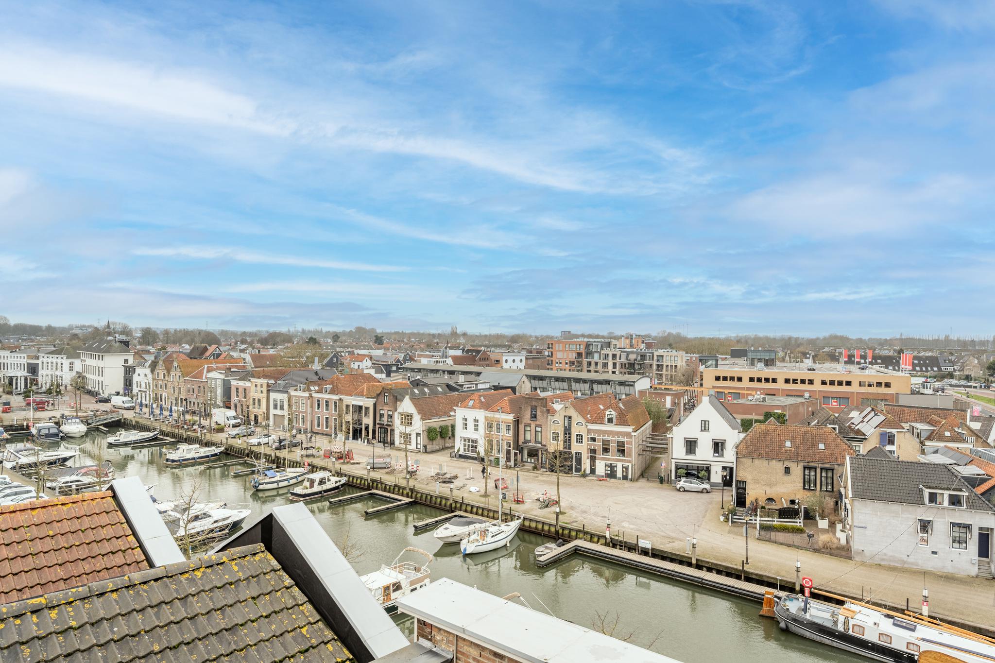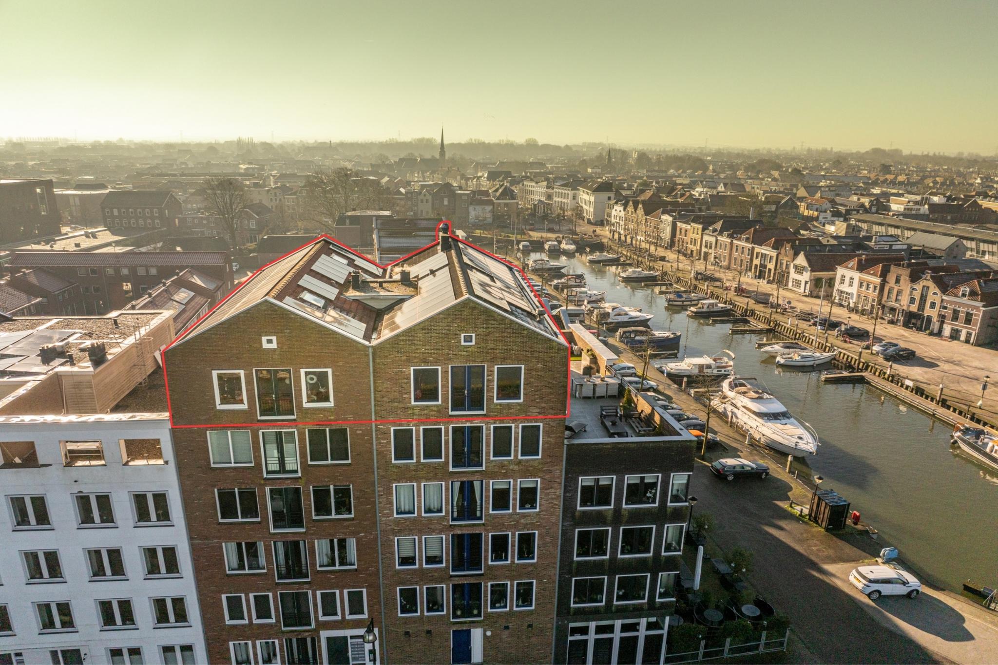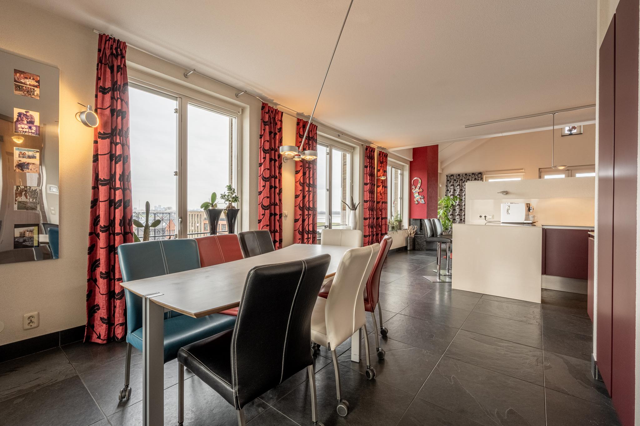 Luxueus wonen op hoog niveau: stap binnen bij dit exclusieve en unieke penthouse (ca. 198 m²) gelegen op de 5e verdieping met een moderne afwerking, een zeer royaal woongedeelte en een adembenemend weids uitzicht over de haven, rivier het Spui, de dorpskern van Oud-Beijerland en de skyline van Rotterdam!