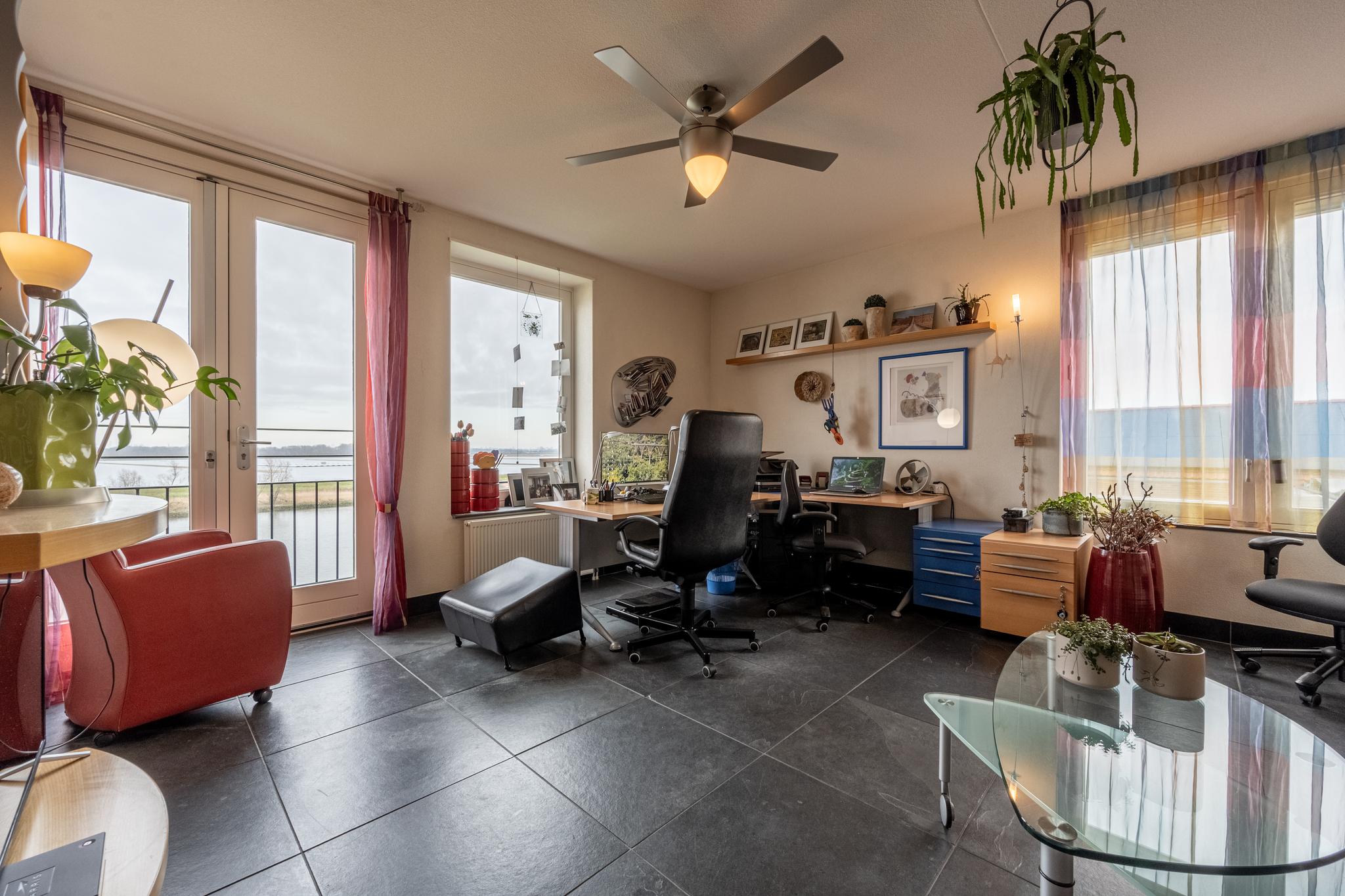 Via de woonkamer is er toegang tot de hal en de kantoorruimte, die ook uitstekend kan dienen als slaapkamer. Vanuit de hal is er toegang tot diverse vertrekken, waaronder 2 slaapkamers, een CV-ruimte, een wasruimte, een moderne 2e toiletruimte en de badkamer.