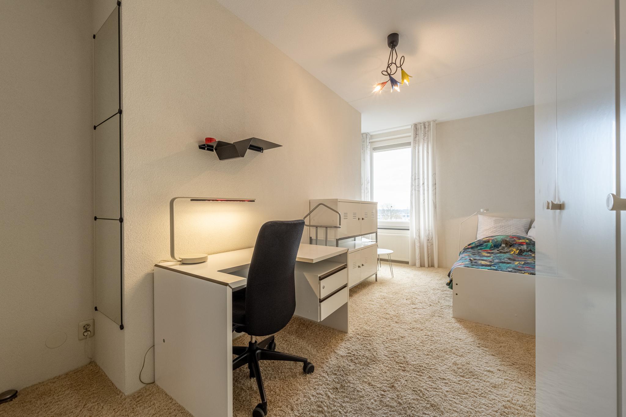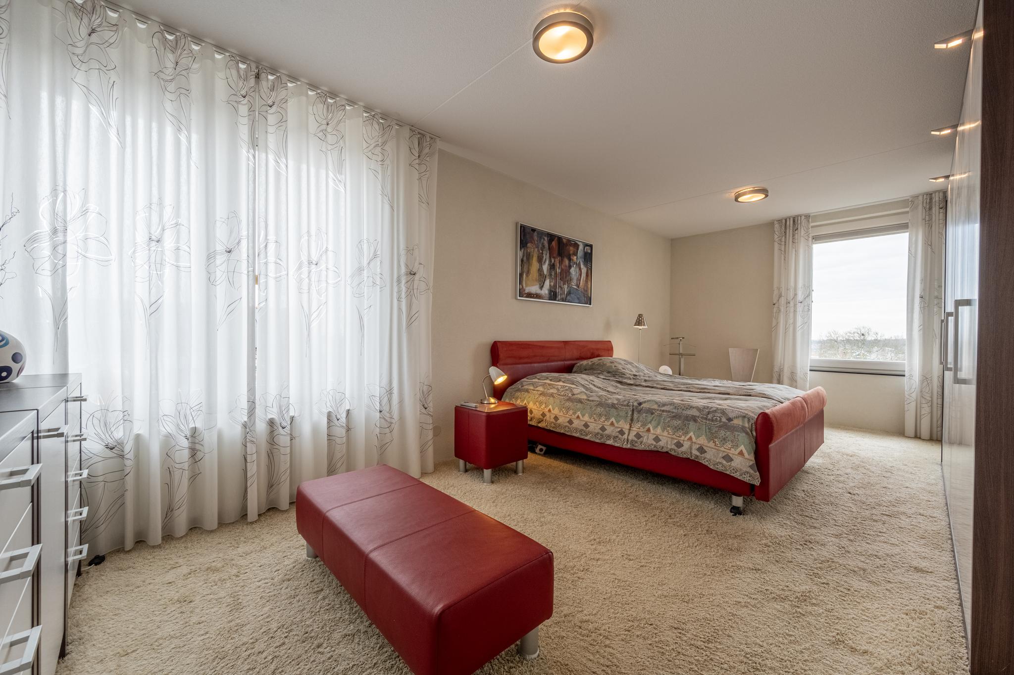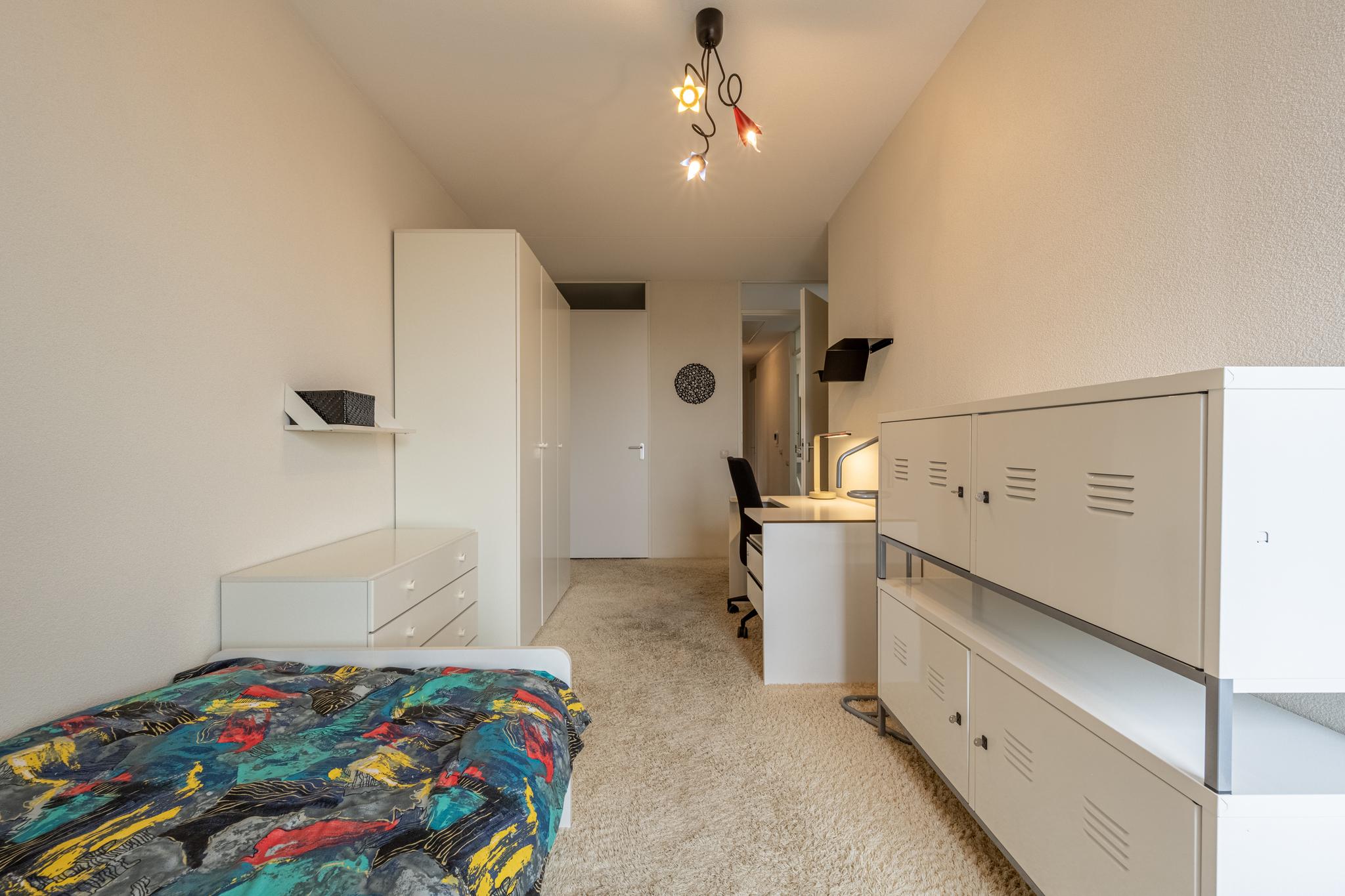 De master bedroom is aan de oostkant van het appartement gelegen. De 2e slaapkamer beschikt over een handige inbouwkast.