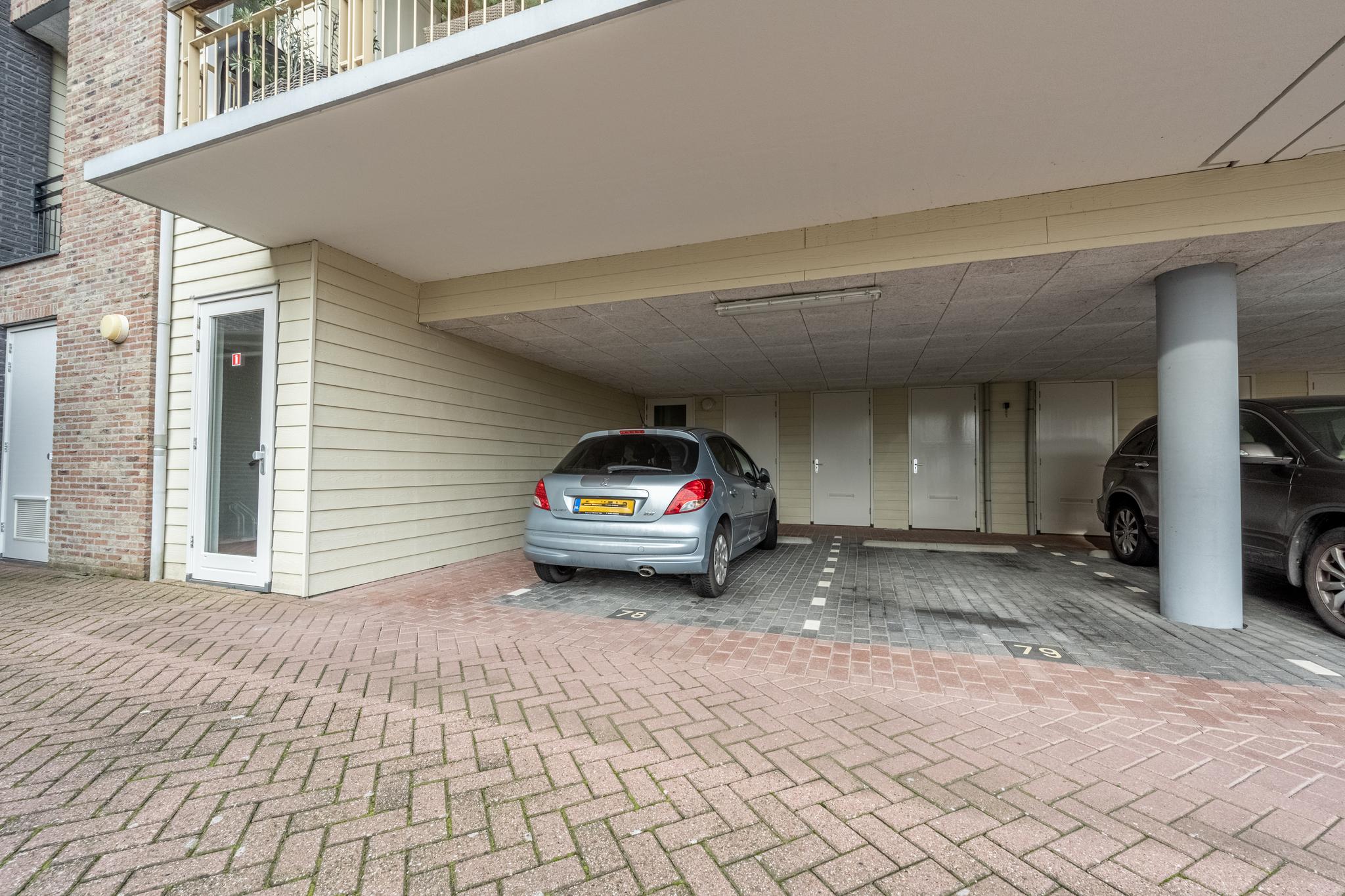 Eigen parkeerplaats op het afgesloten terrein van het complex.
