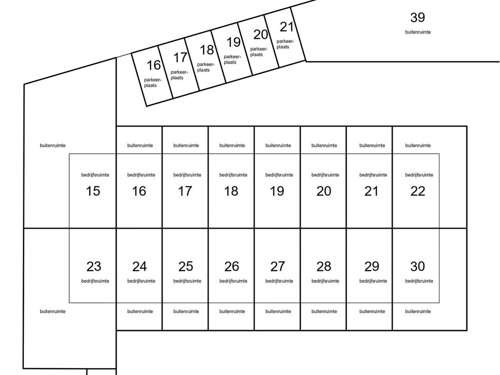 De bedrijfsunit 24 (bouwnummer 10) is circa 76 m². De bedrijfsunit bestaat uit 2 bouwlagen met een begane grond van 39 m² en een verdieping van 37 m².