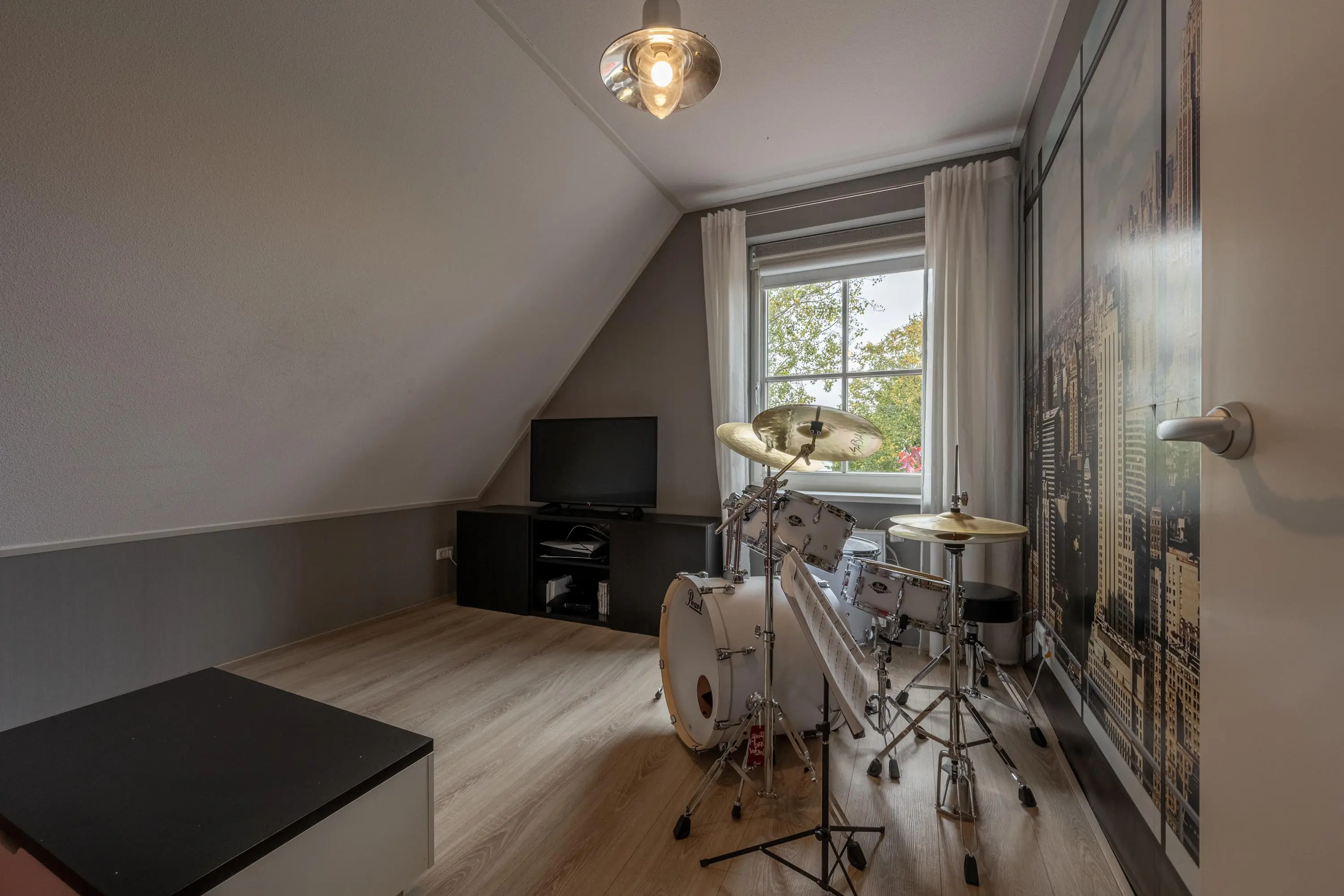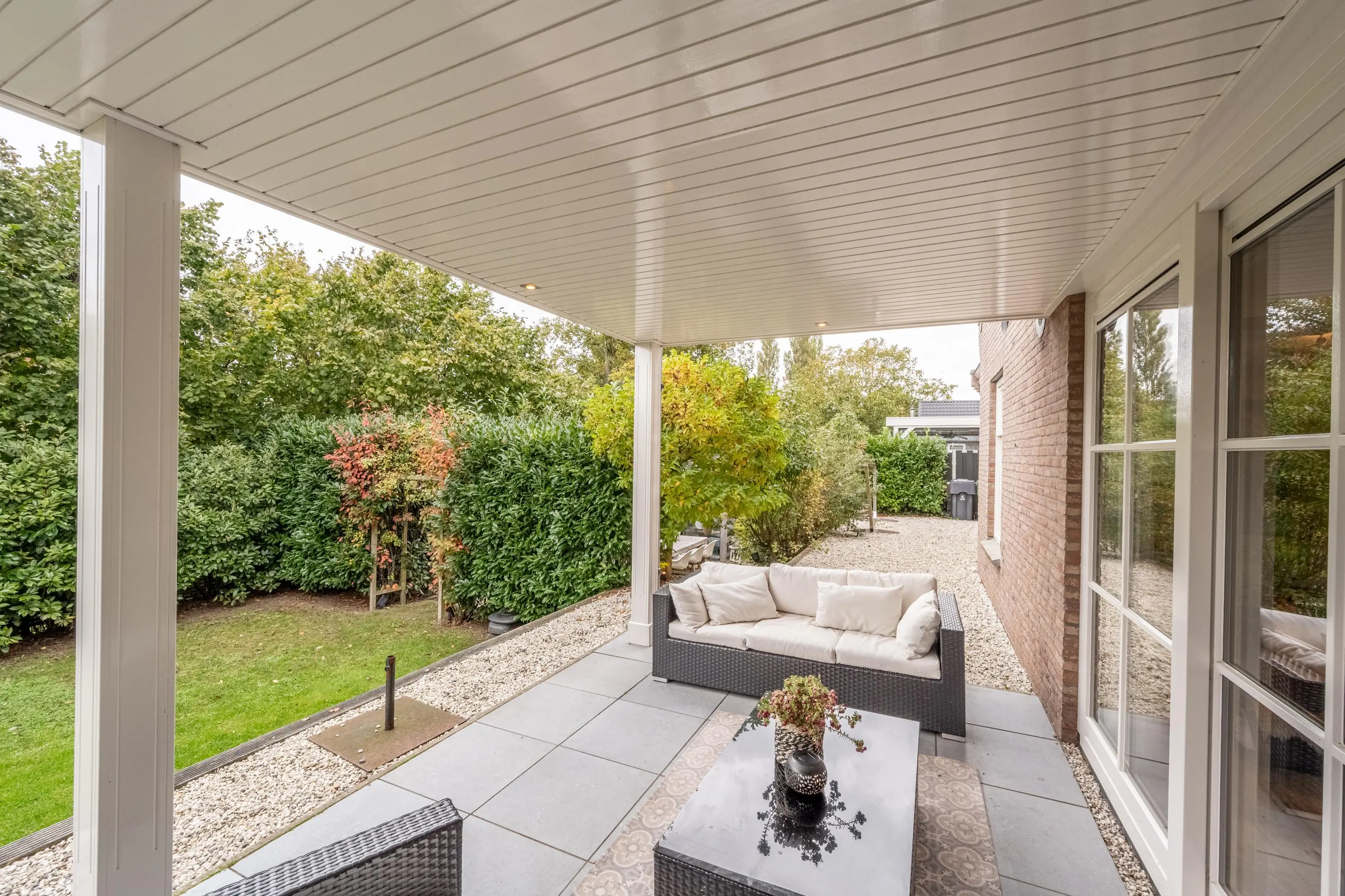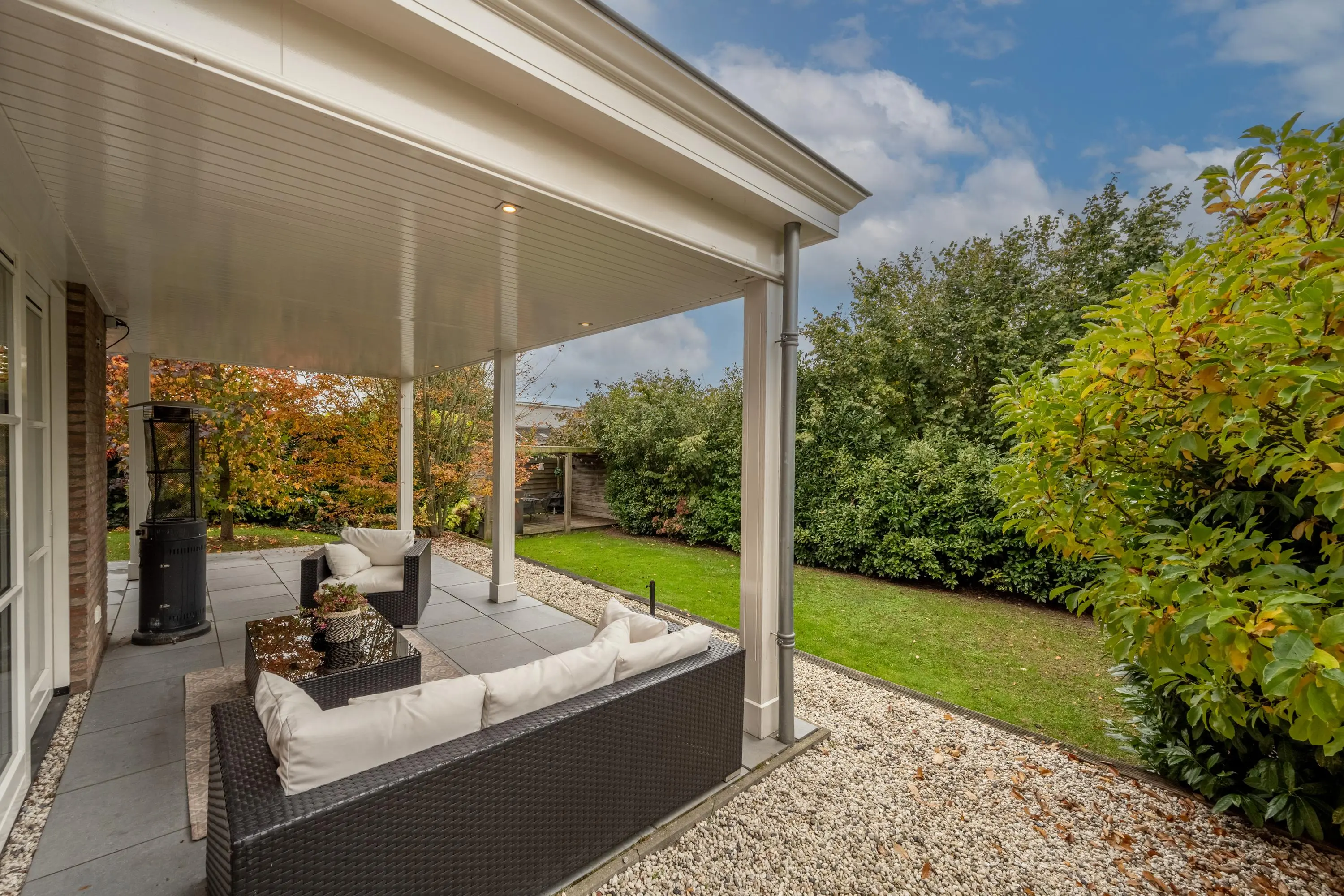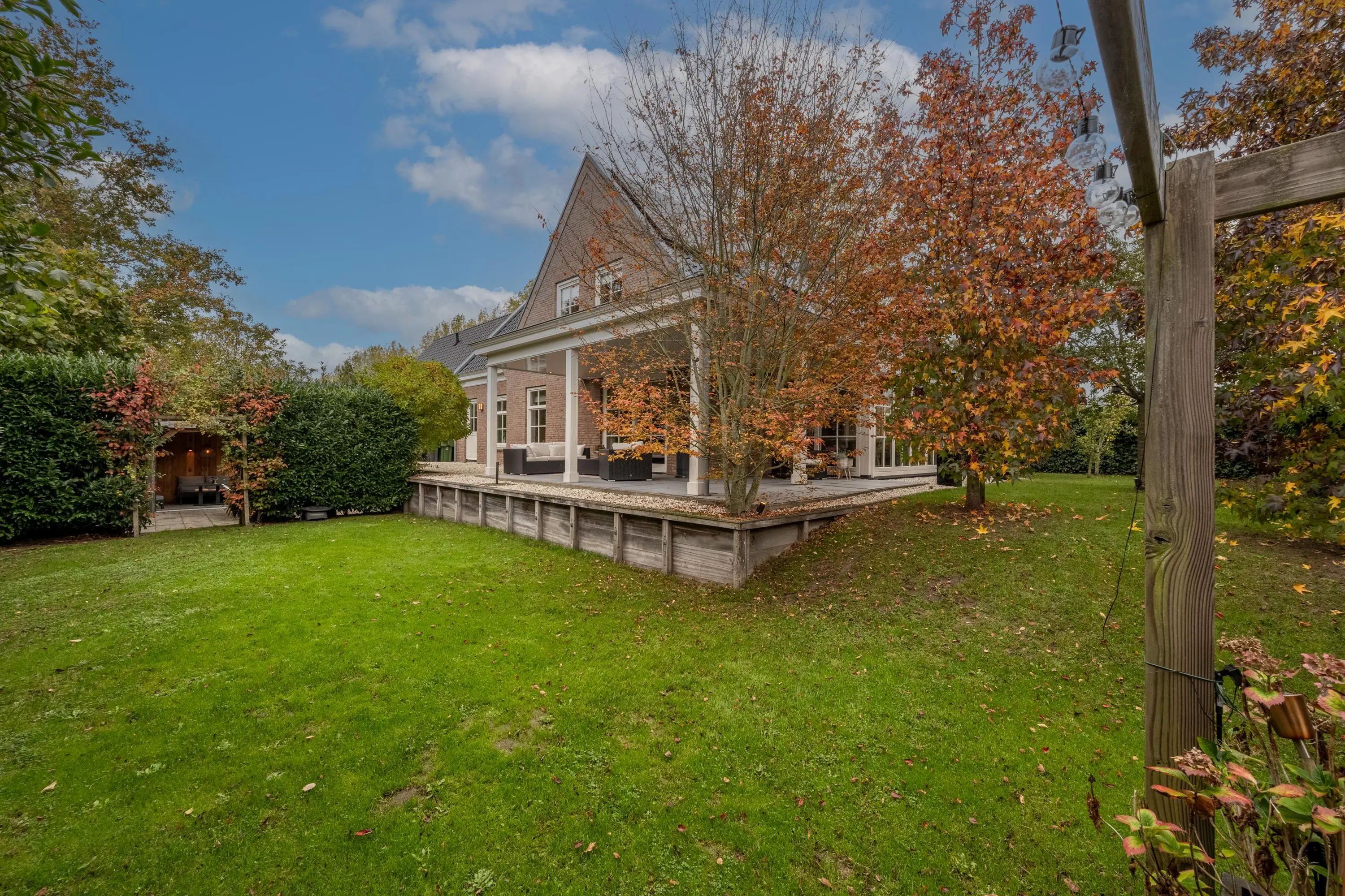 De royale living is een oase van licht en comfort. Het zitgedeelte aan de achterzijde is voorzien van een sfeervolle haard en biedt via grote raampartijen een prachtig uitzicht op de tuin. Het eetgedeelte is ruim genoeg voor een grote eettafel en vormt samen met de woonkamer één sfeervol geheel.