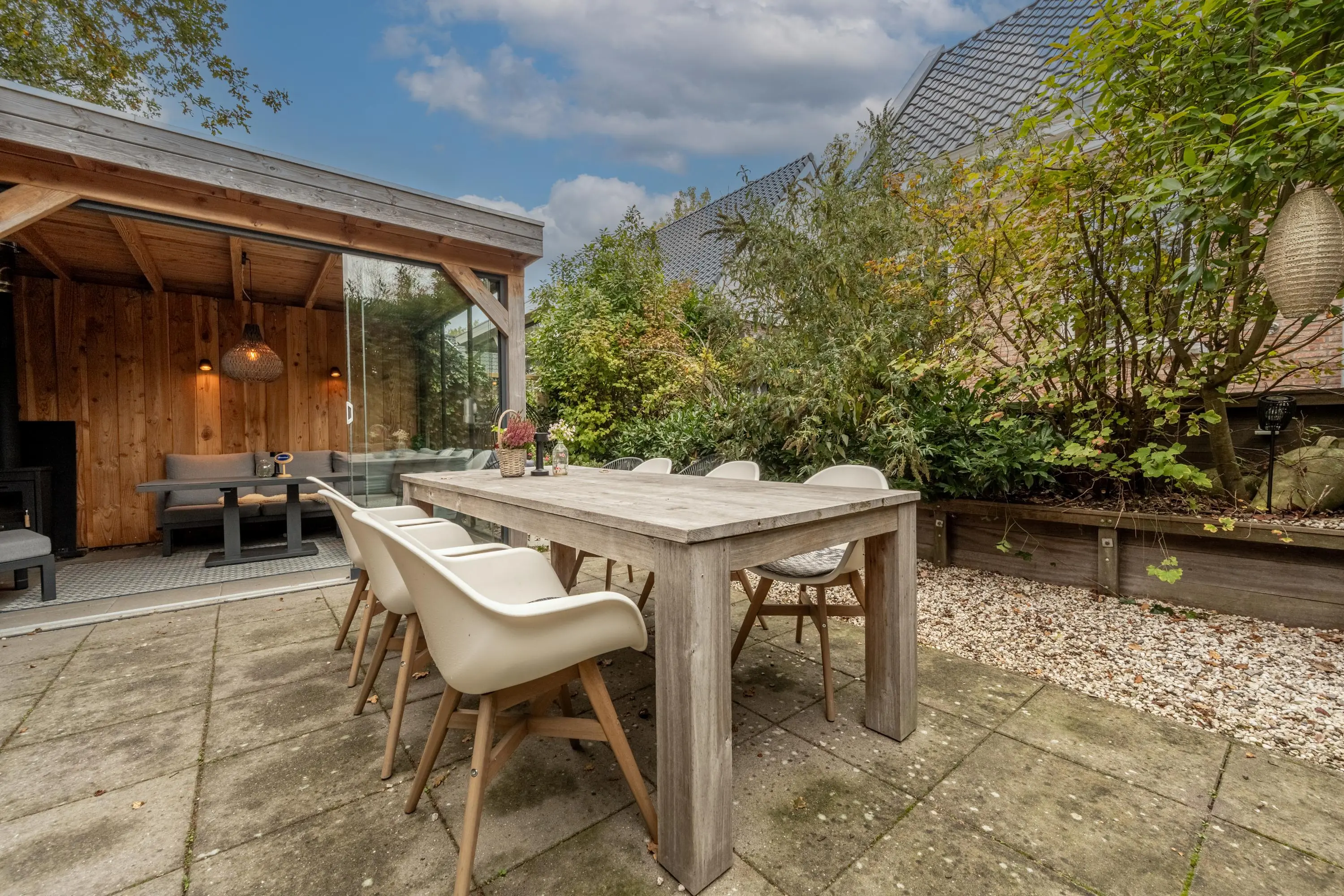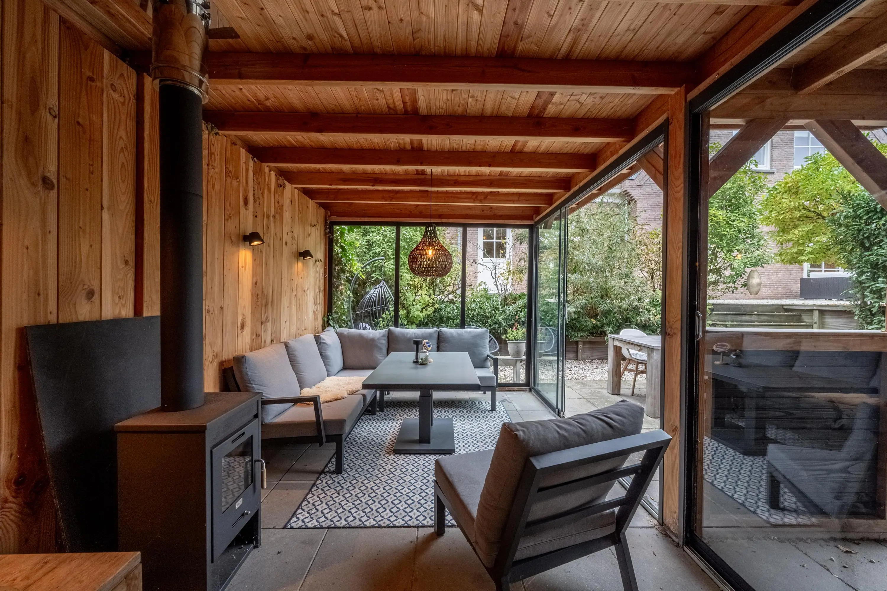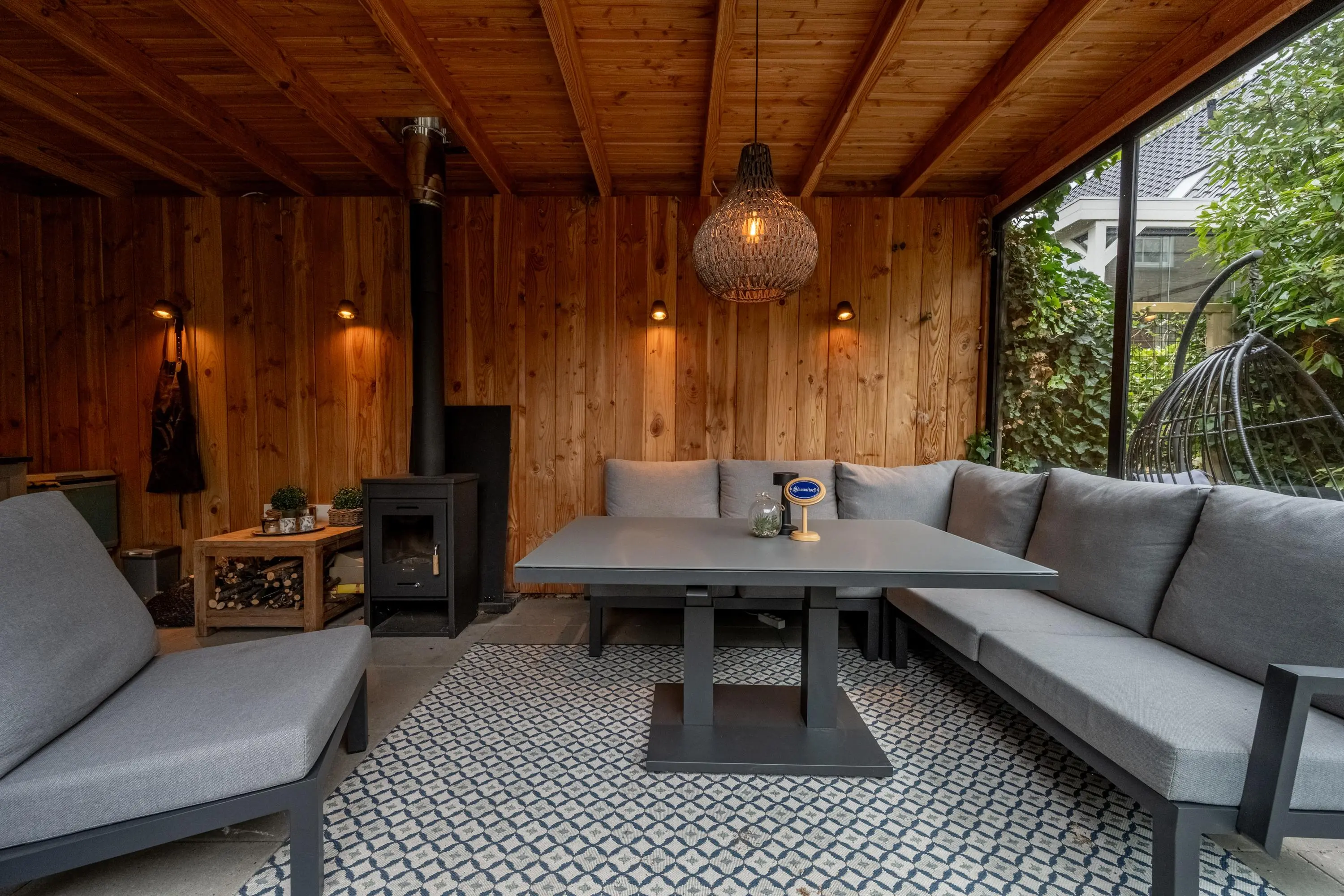De verzorgde achtertuin biedt volop privacy en diverse zitgelegenheden waar u in alle rust kunt genieten van het buitenleven. Tevens is er een mooie royale overkapping met houtkachel voor gezelligheid en warmte in elk seizoen. Graag benoemen wij de hout gestookte hottub welke in de overkapping aanwezig is.