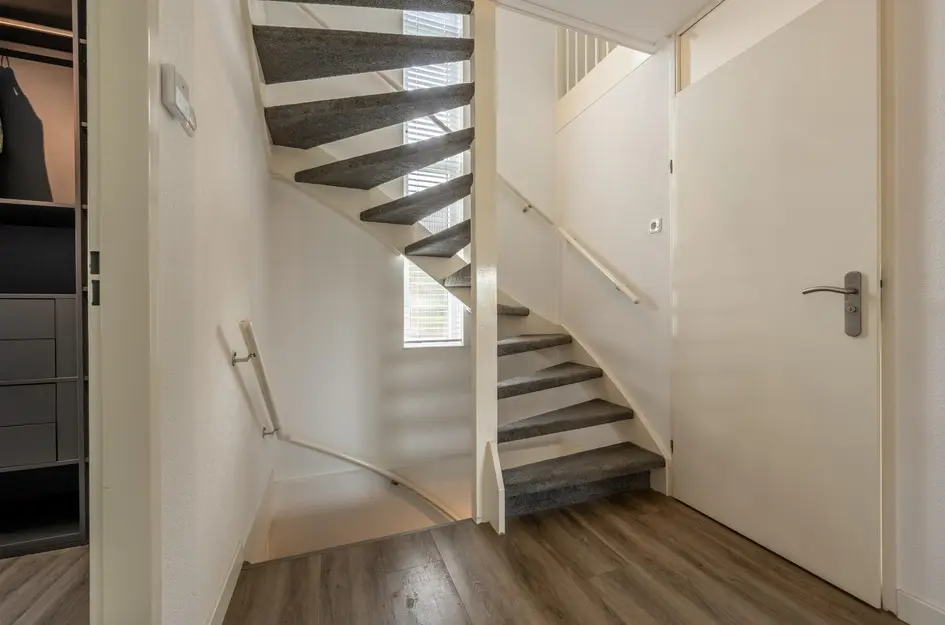 Via een vaste trap bereikt men de tweede verdieping, waar een lichte voorzolder met werkruimte en een praktische bergkast zorgen voor comfort en functionaliteit.