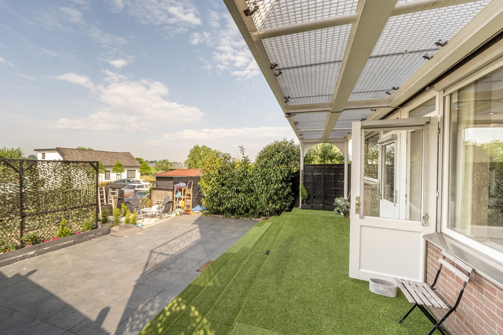 De op het zuidwesten gelegen achtertuin is ideaal voor lange zomerdagen en voorzien van beplanting, bestrating en houten erfafscheidingen. Het realiseren van meerdere terrassen behoort hier zeker tot de mogelijkheden met een extra aangekocht stuk grond aan de achterzijde.