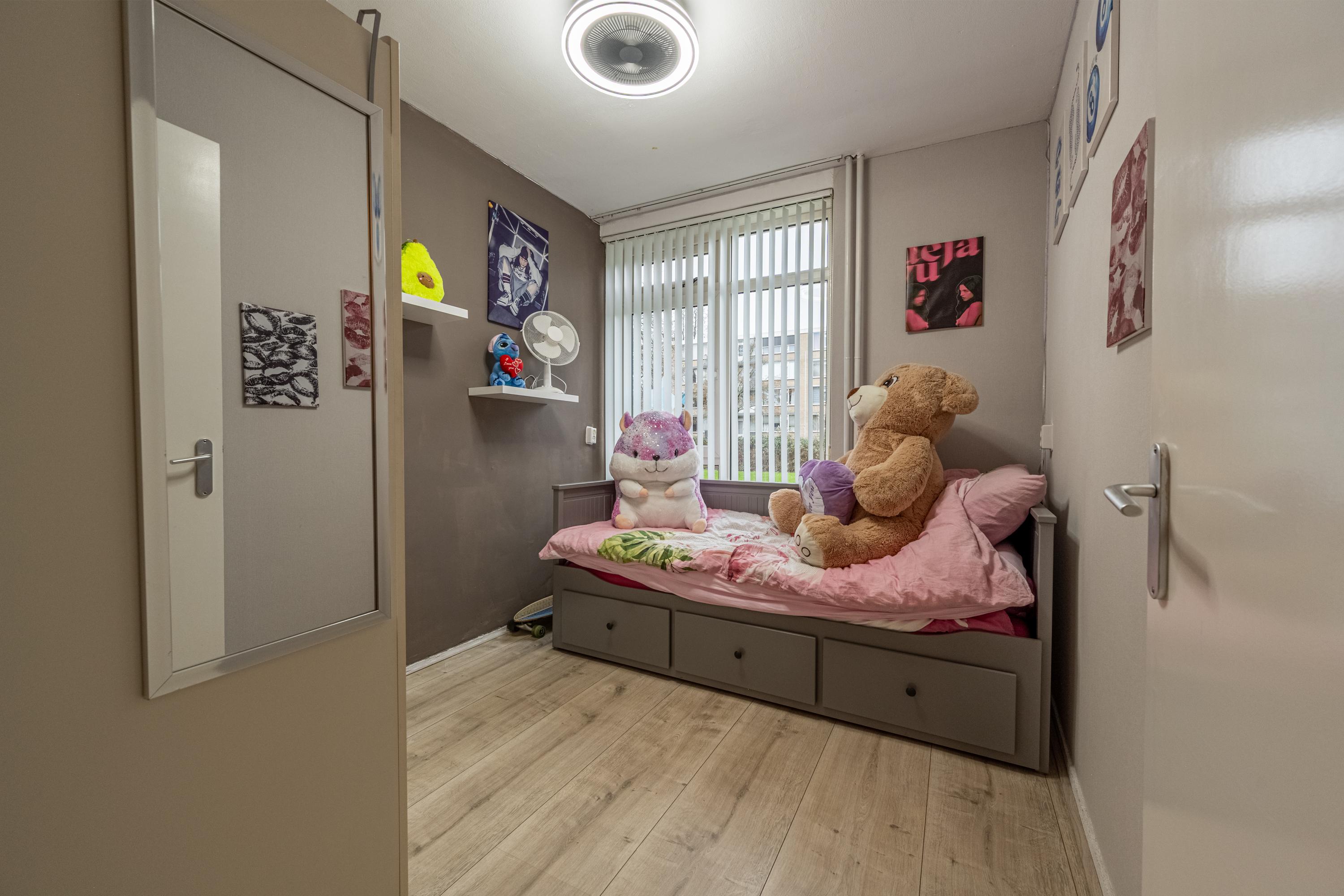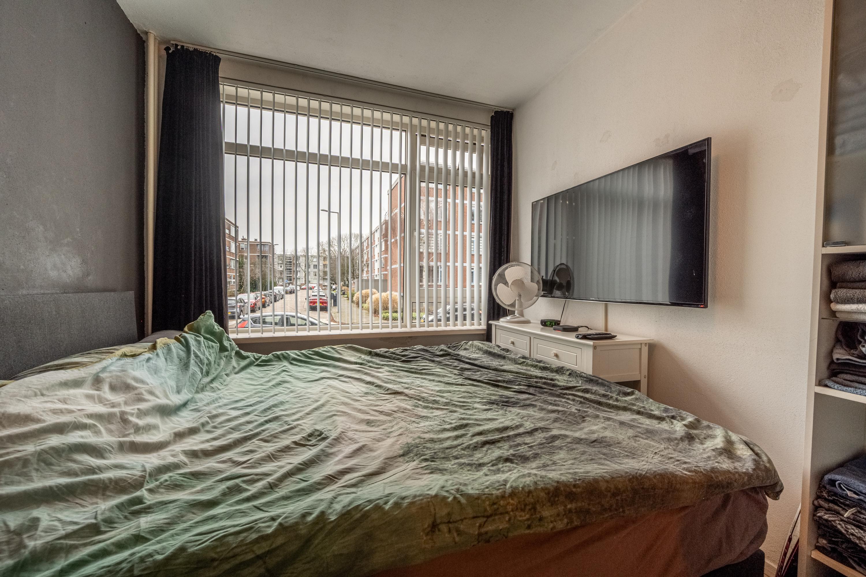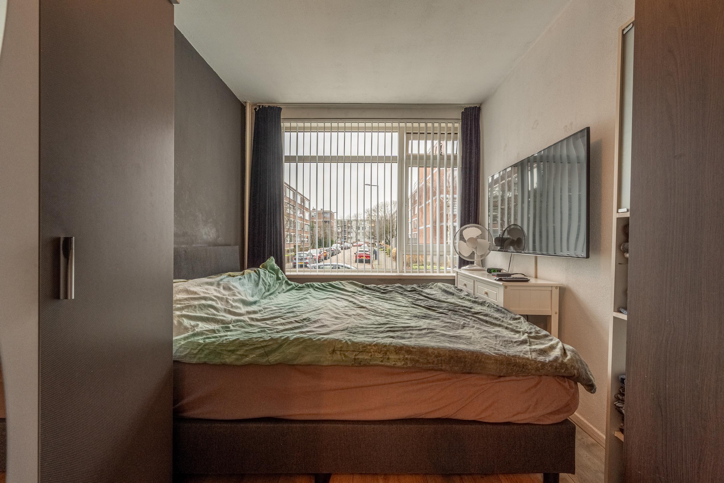 Het appartement beschikt over twee slaapkamers, waarvan één aan de voorzijde en één aan de achterzijde van de woning.