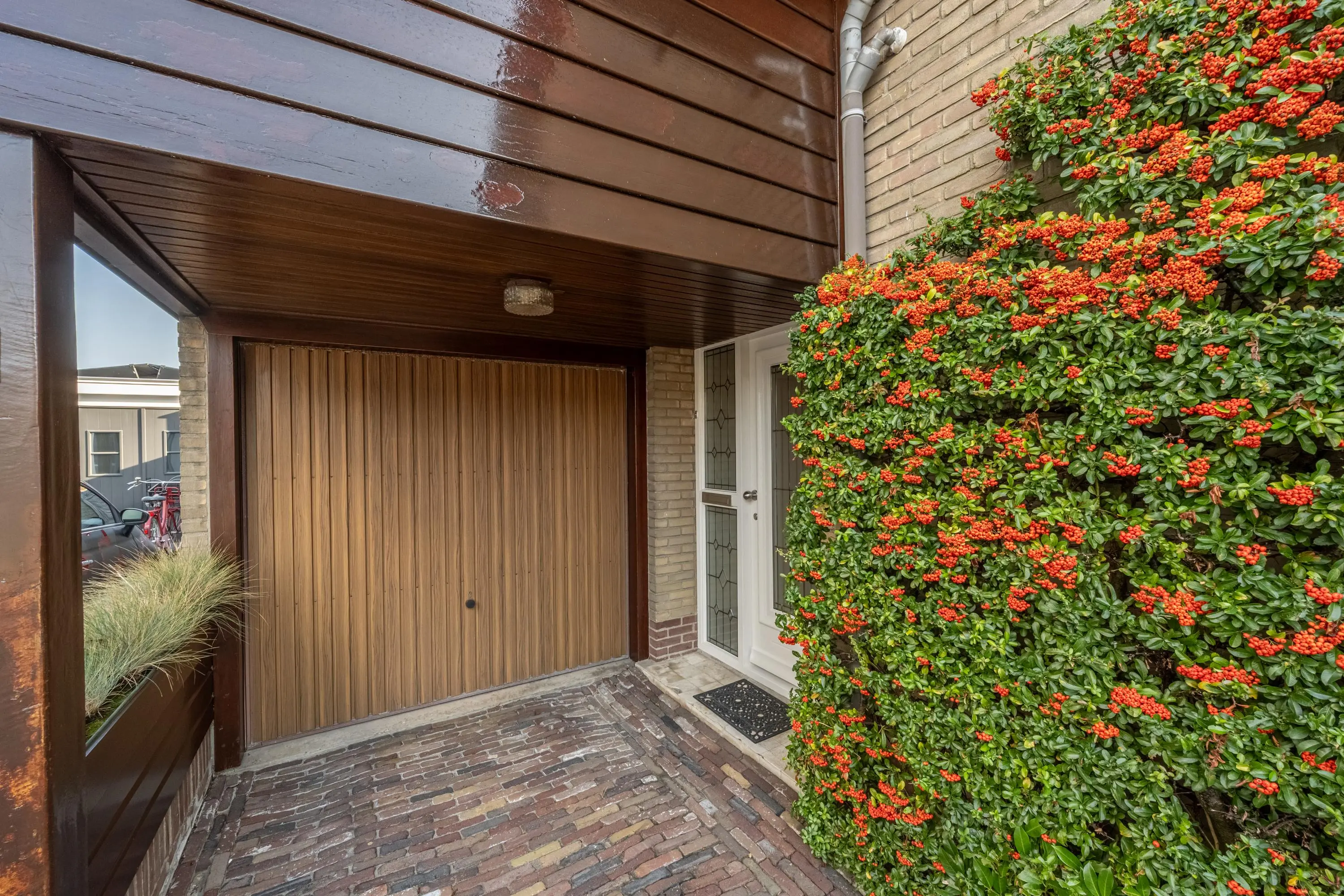 De ruime voortuin is smaakvol aangelegd met sierlijke beplanting en siergrind, wat direct een verzorgde indruk geeft. Via de oprit is de royale, stenen garage eenvoudig te bereiken. Bovendien is er parkeergelegenheid op eigen terrein.
