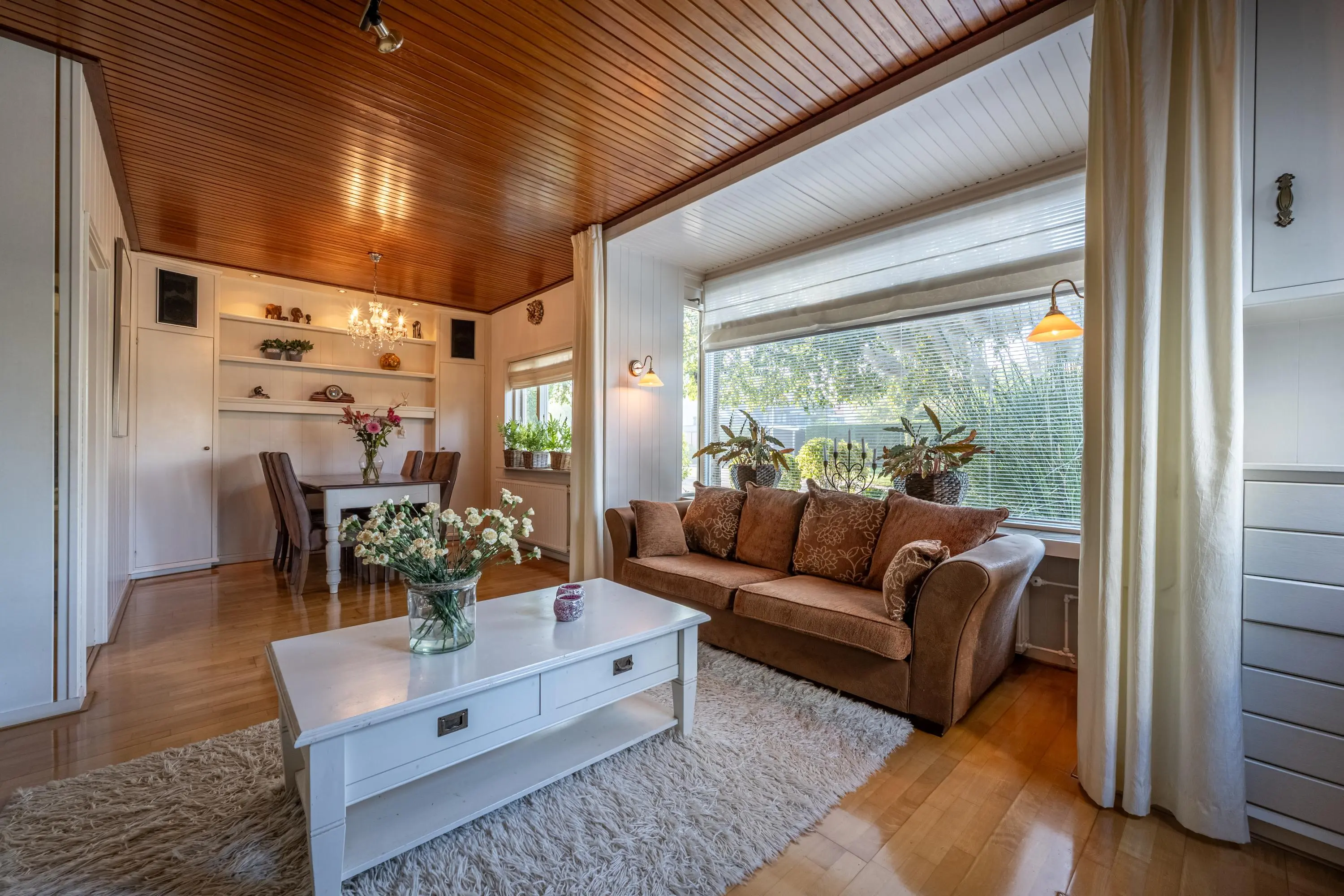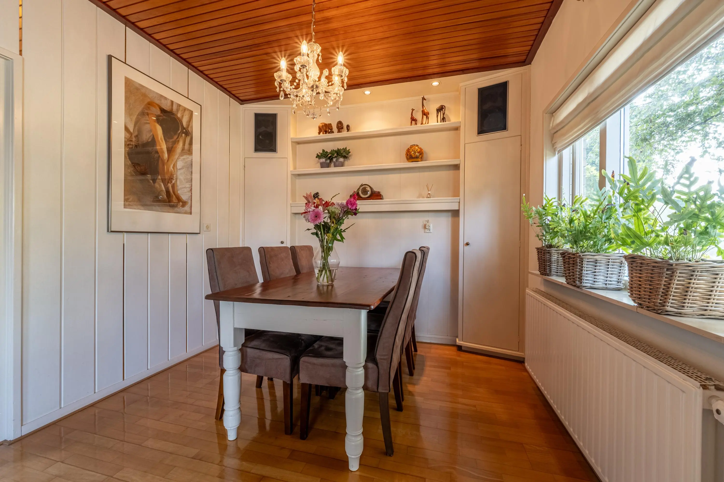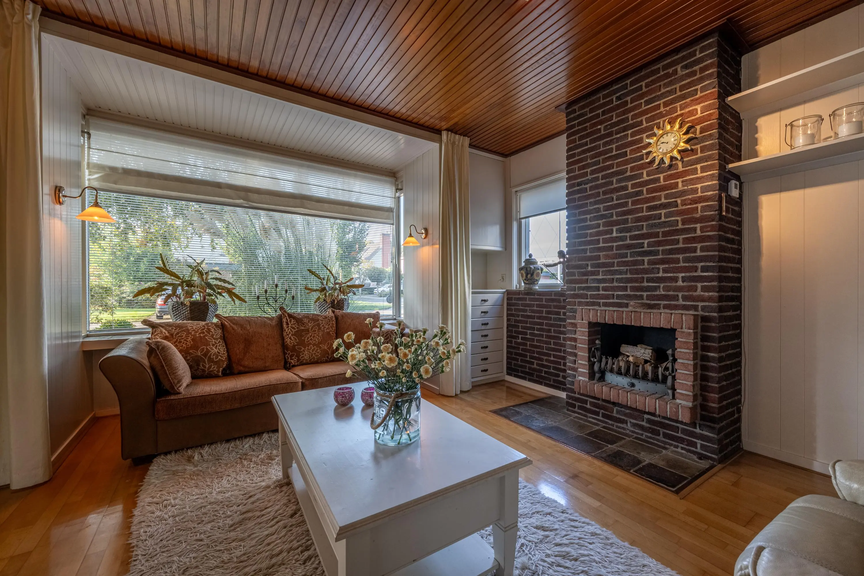 Laat uzelf verrassen door de gezellige woonkamer, waar grote ramen en een fraaie erker zorgen voor een overvloed aan natuurlijk licht. De warme sfeer en speelse lichtinval maken dit een uitnodigende plek waar u zich direct thuis zult voelen.