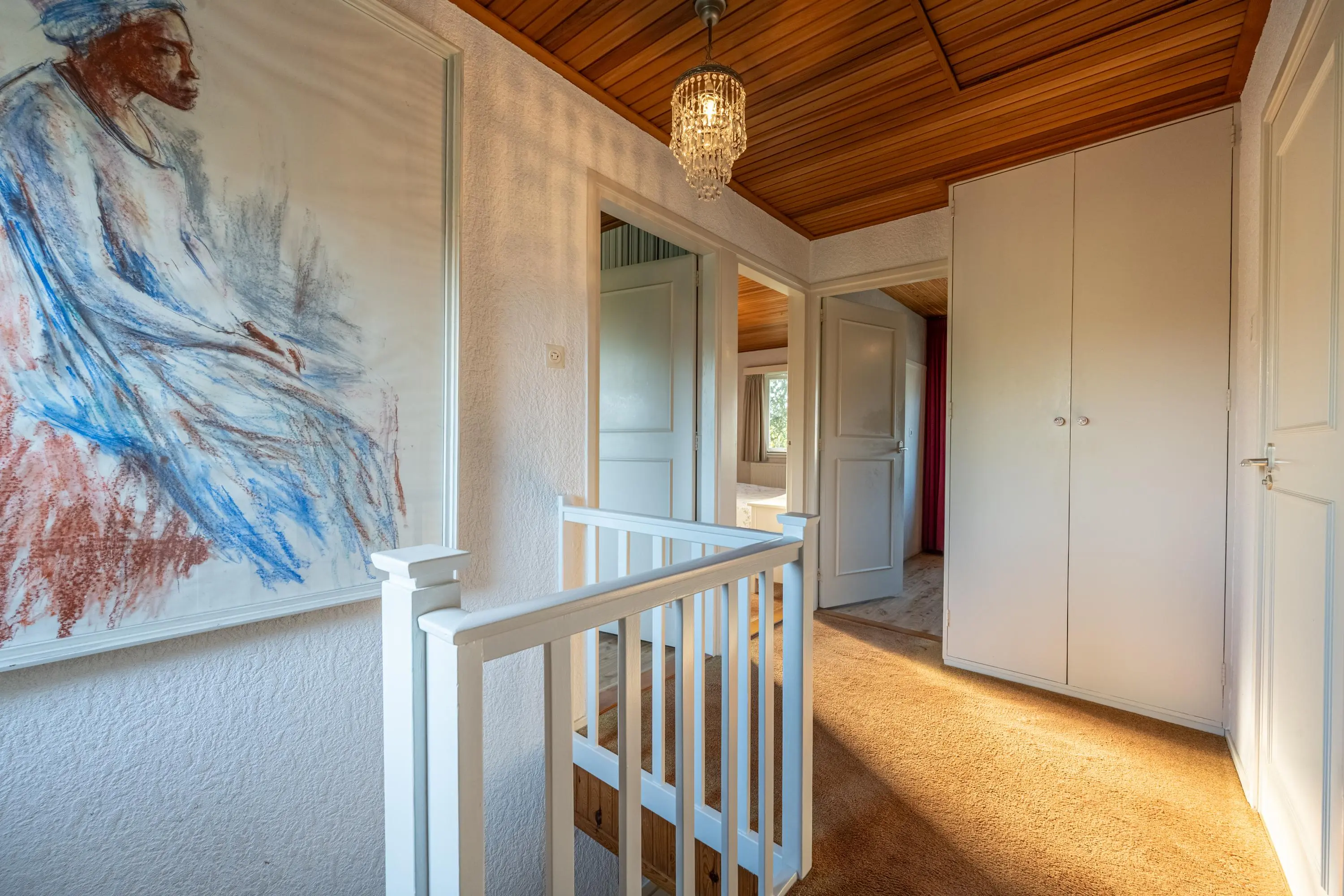 De ruime overloop met praktische inbouwkasten geeft toegang tot maar liefst vier slaapkamers op deze verdieping.